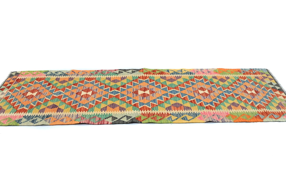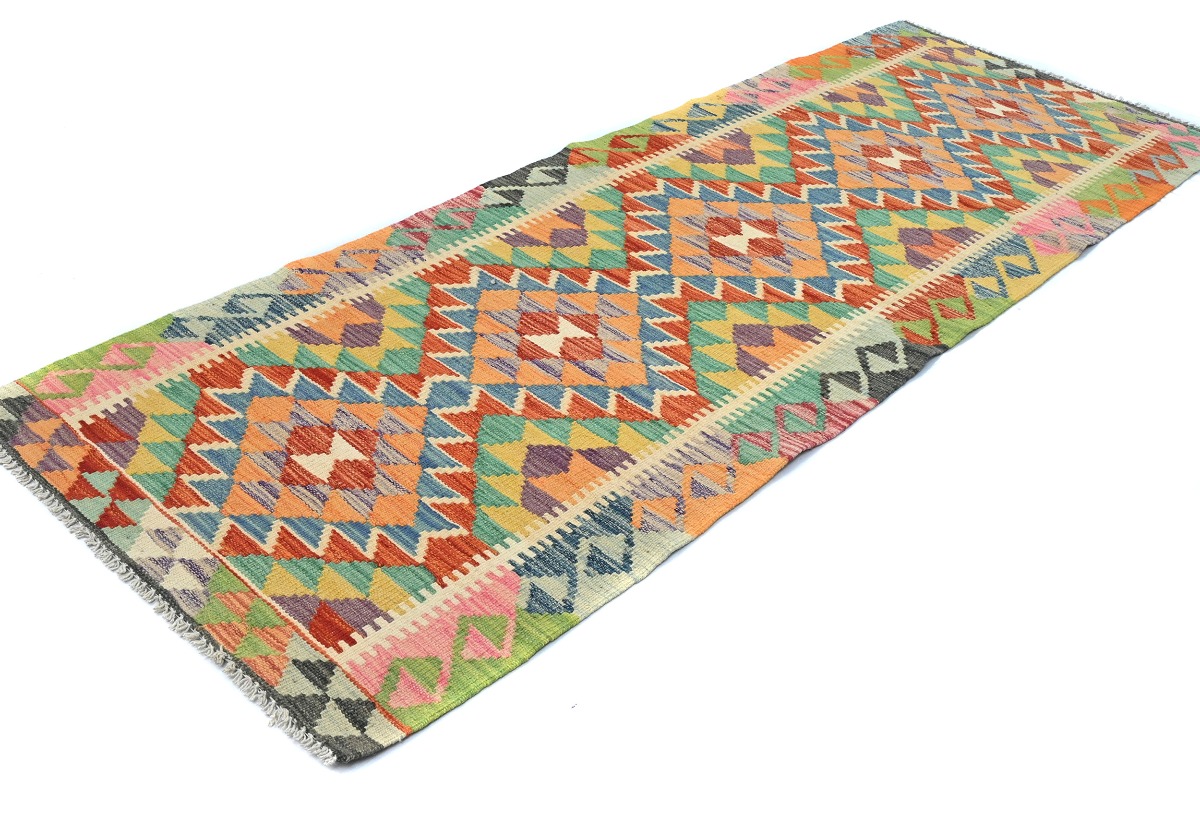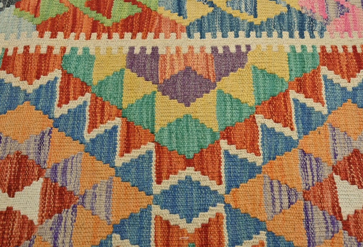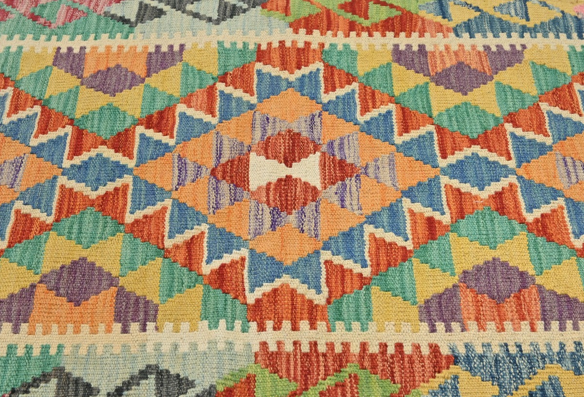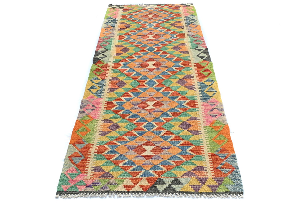 Multicolored Geometric Reversible 2'4X6'5 Kilim Oriental Runner Rug