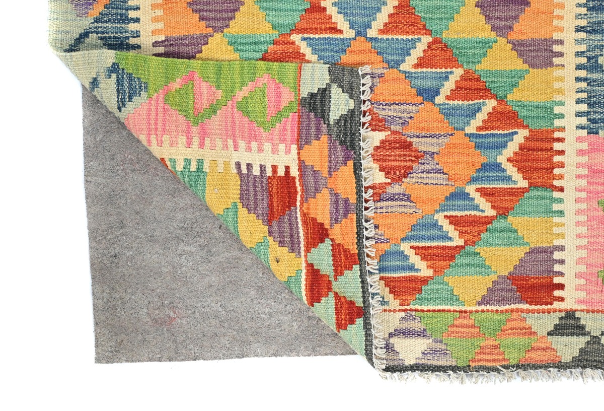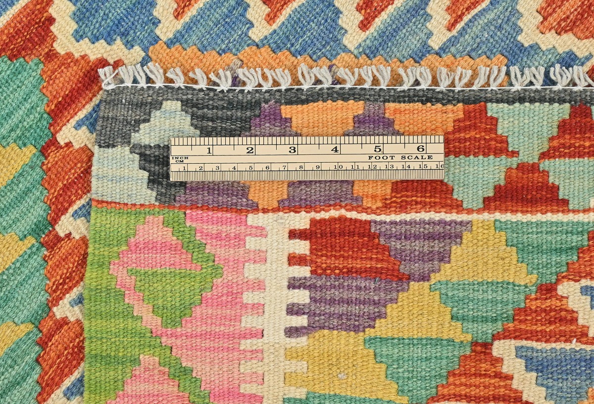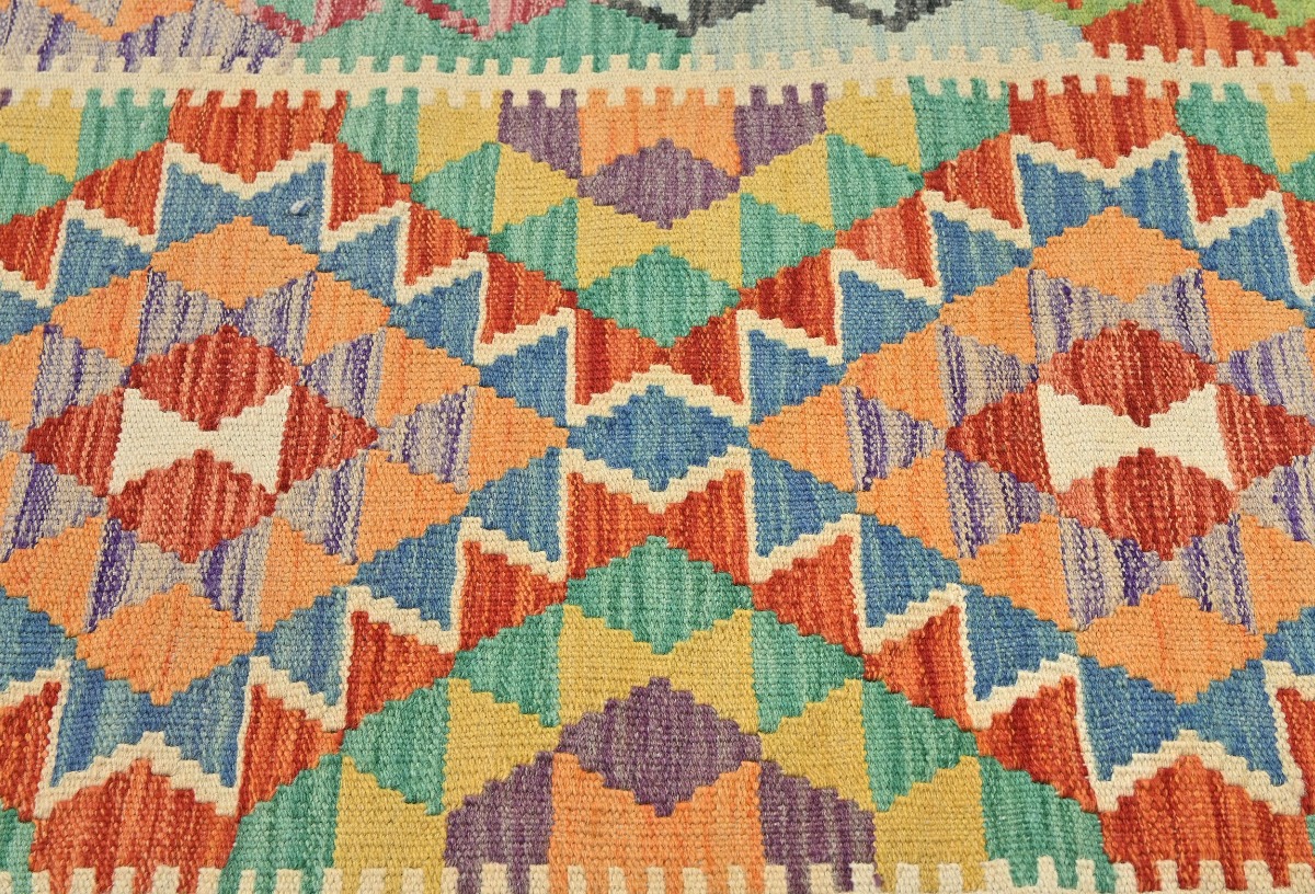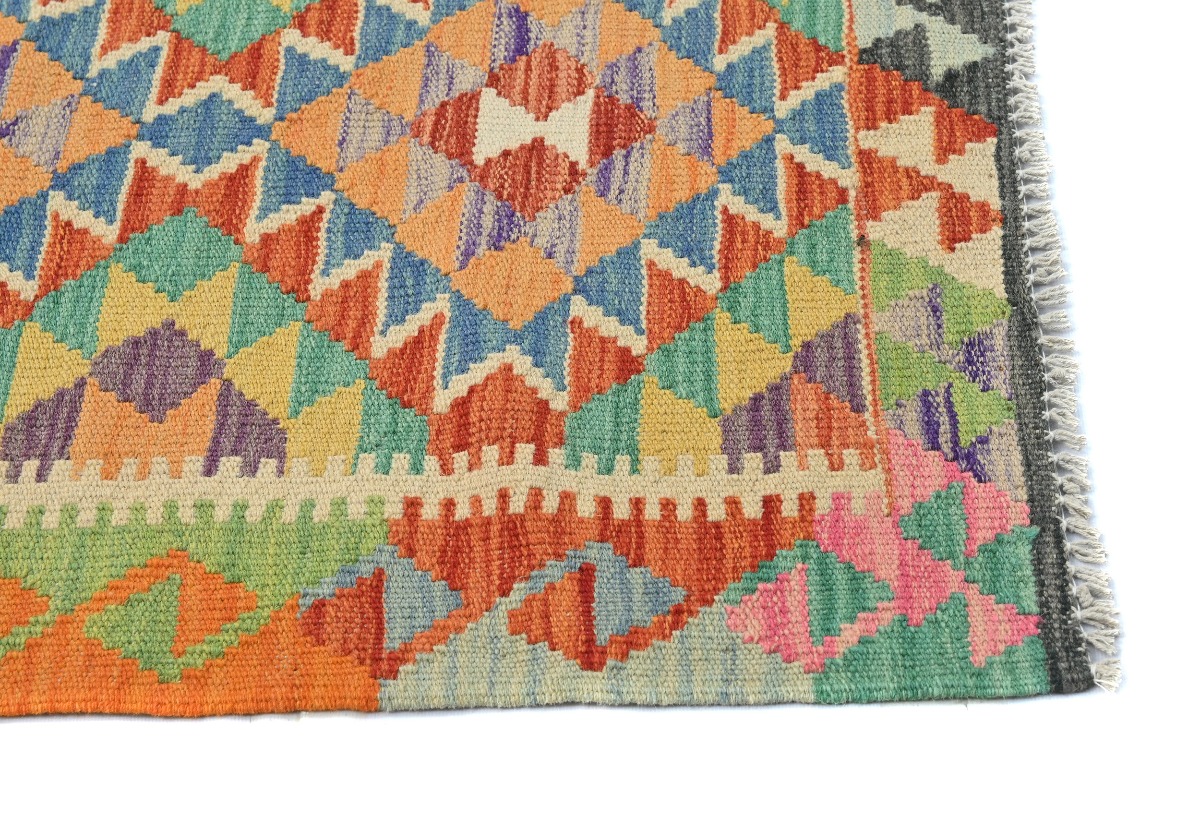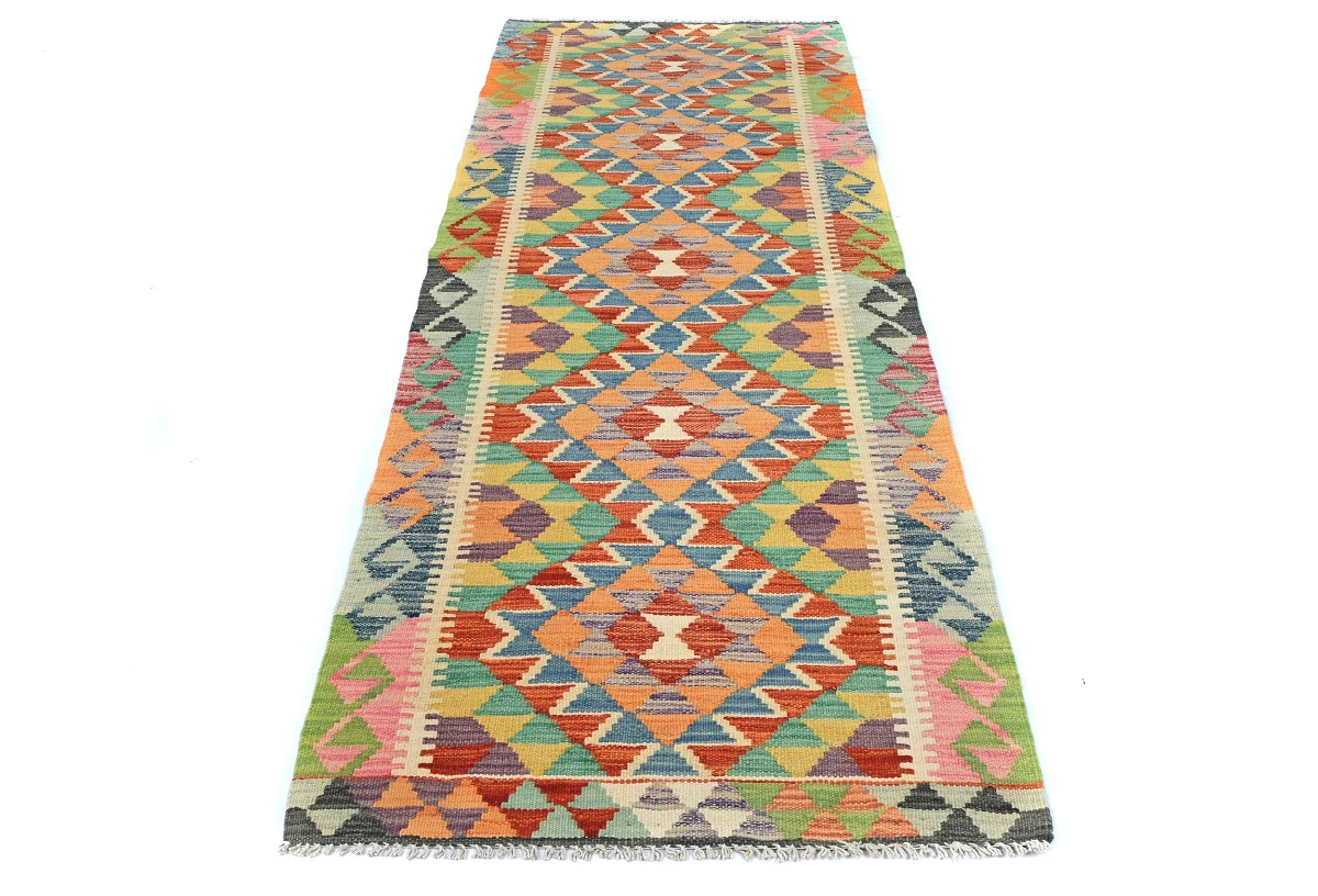 Multicolored Geometric Reversible 2'4X6'5 Kilim Oriental Runner Rug