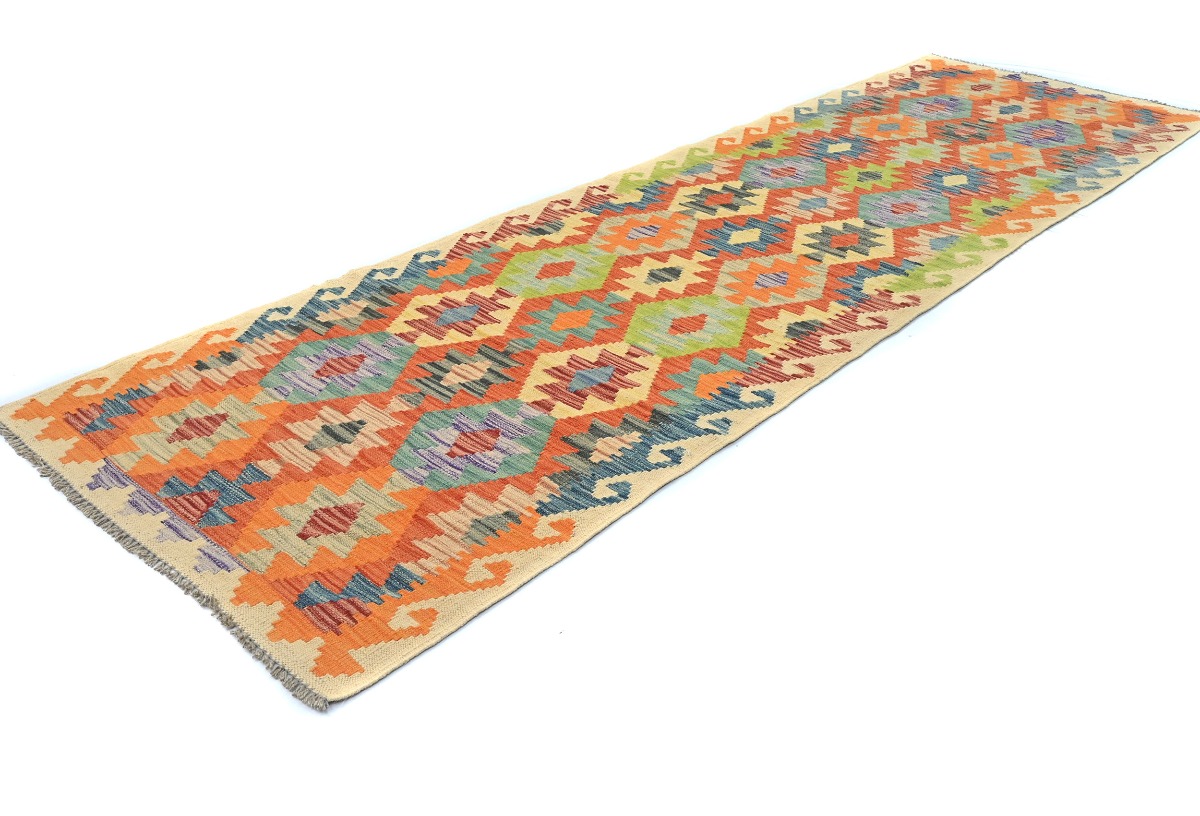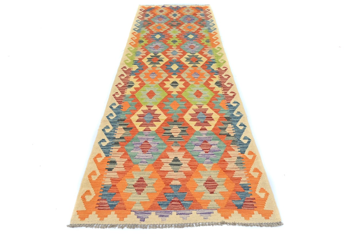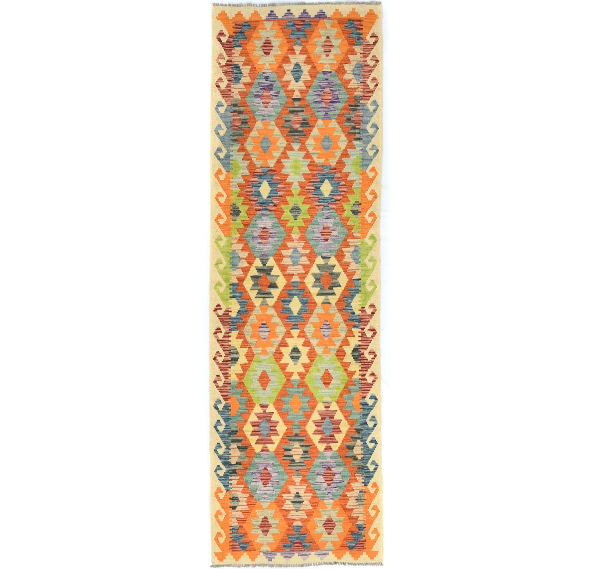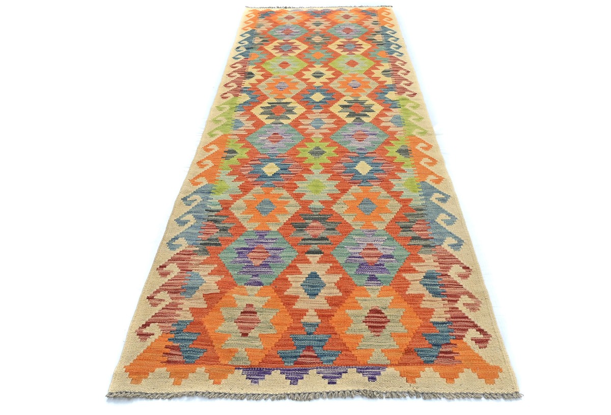 Multicolored Geometric Reversible 3X10 Kilim Oriental Runner Rug