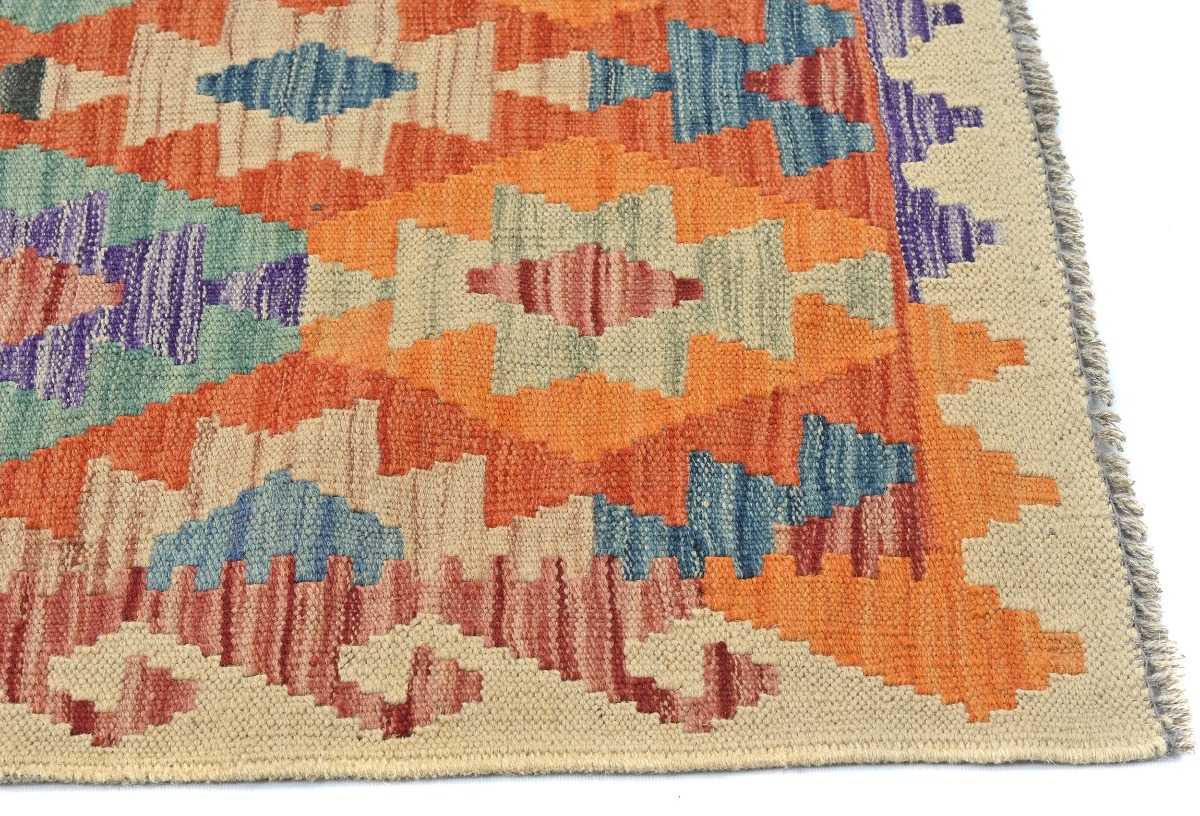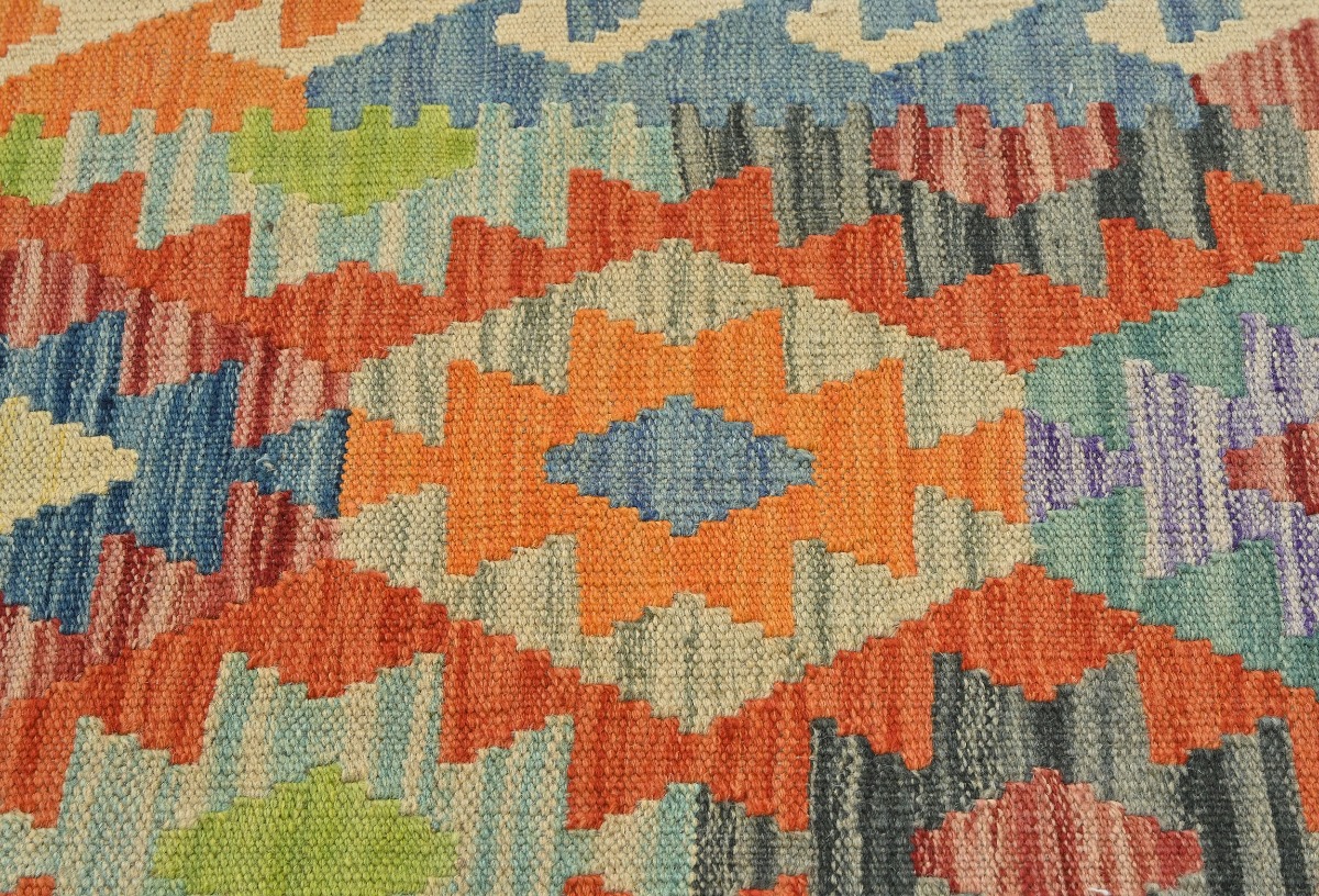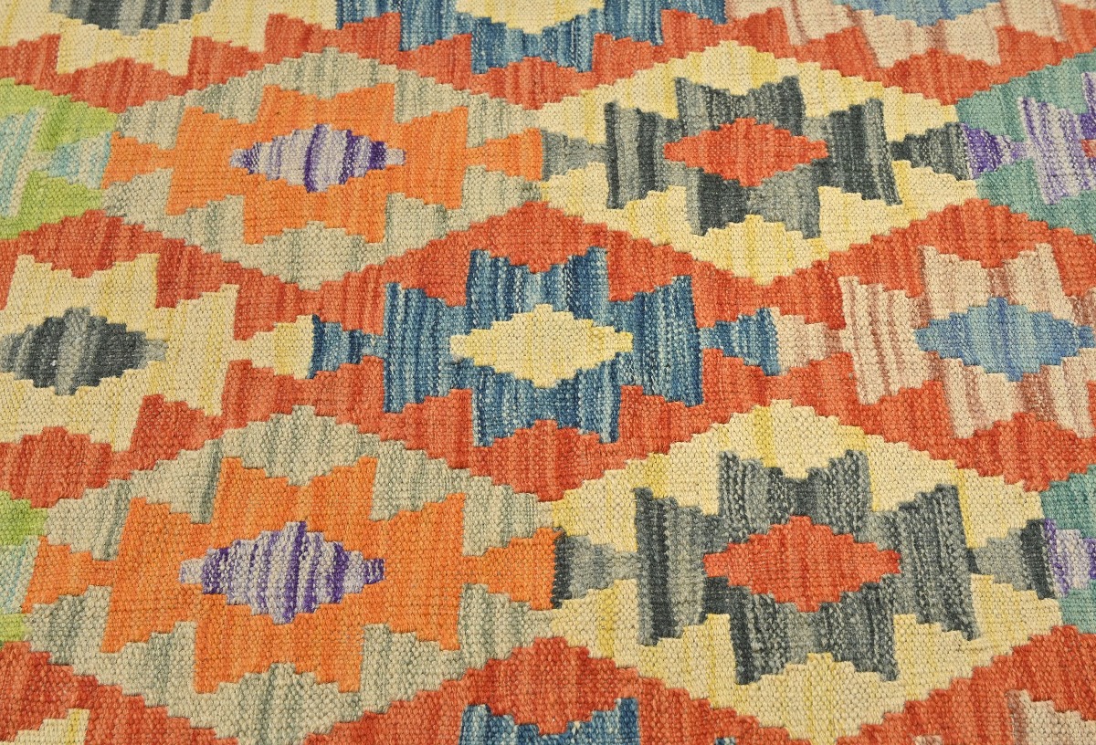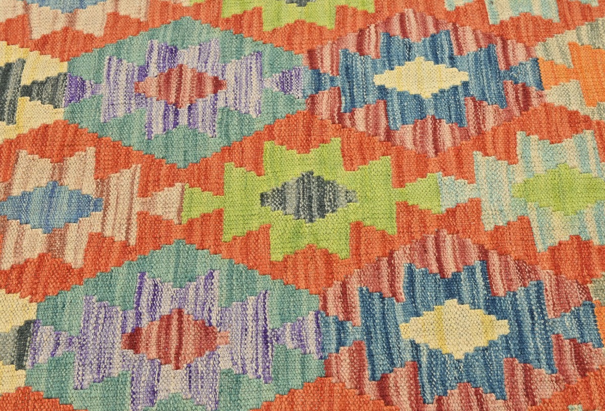 Multicolored Geometric Reversible 3X10 Kilim Oriental Runner Rug