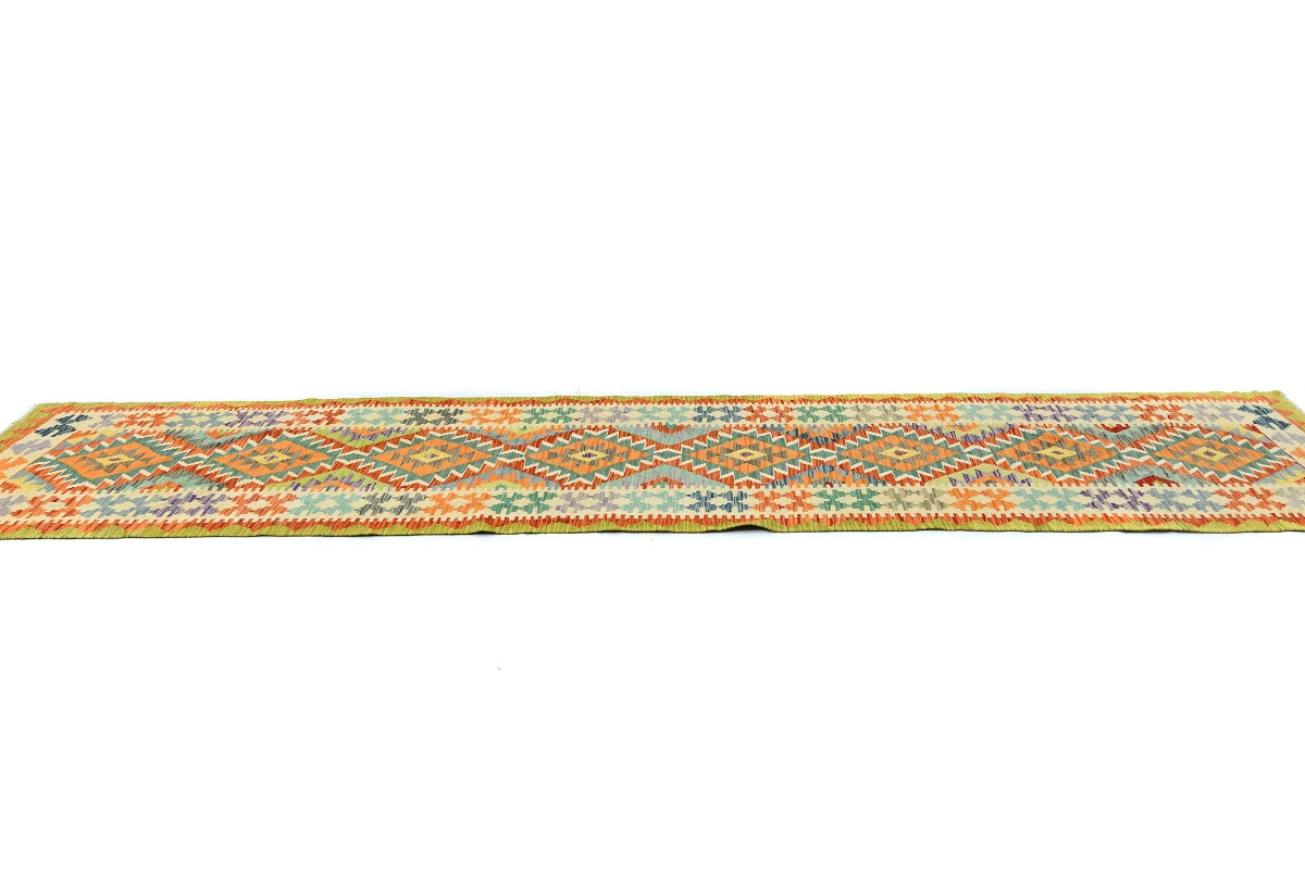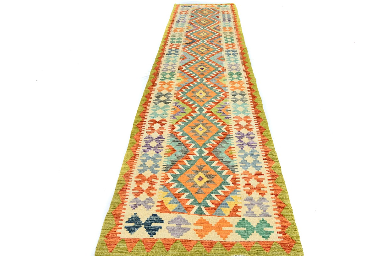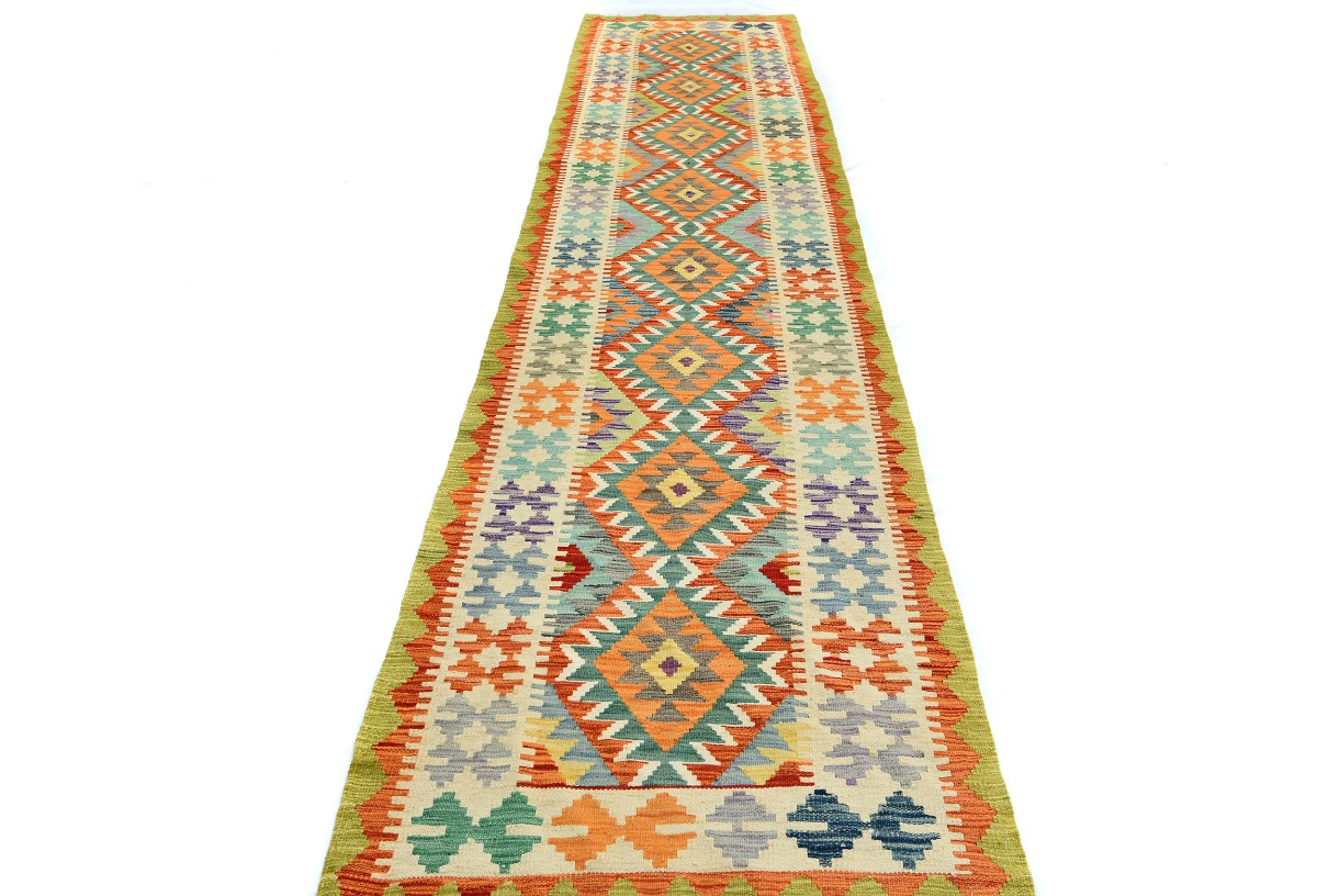 Multicolored Geometric Reversible 3X13 Kilim Oriental Runner Rug