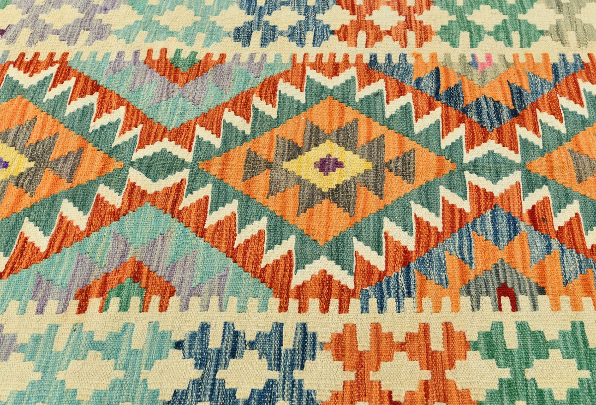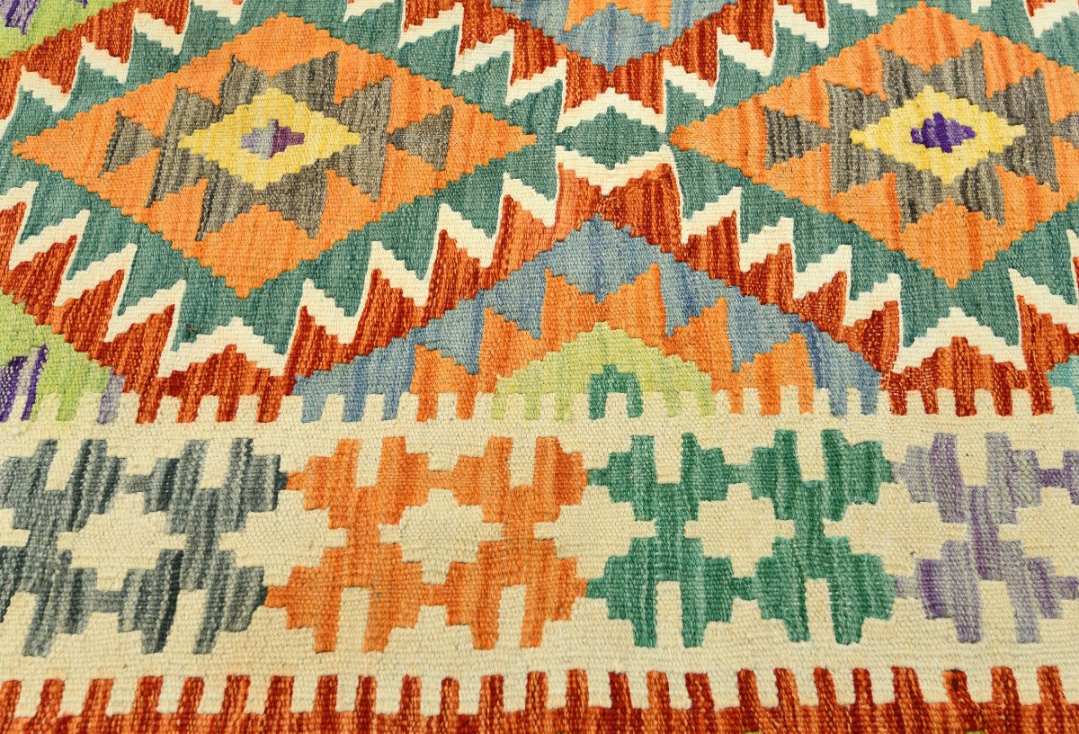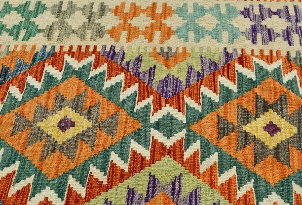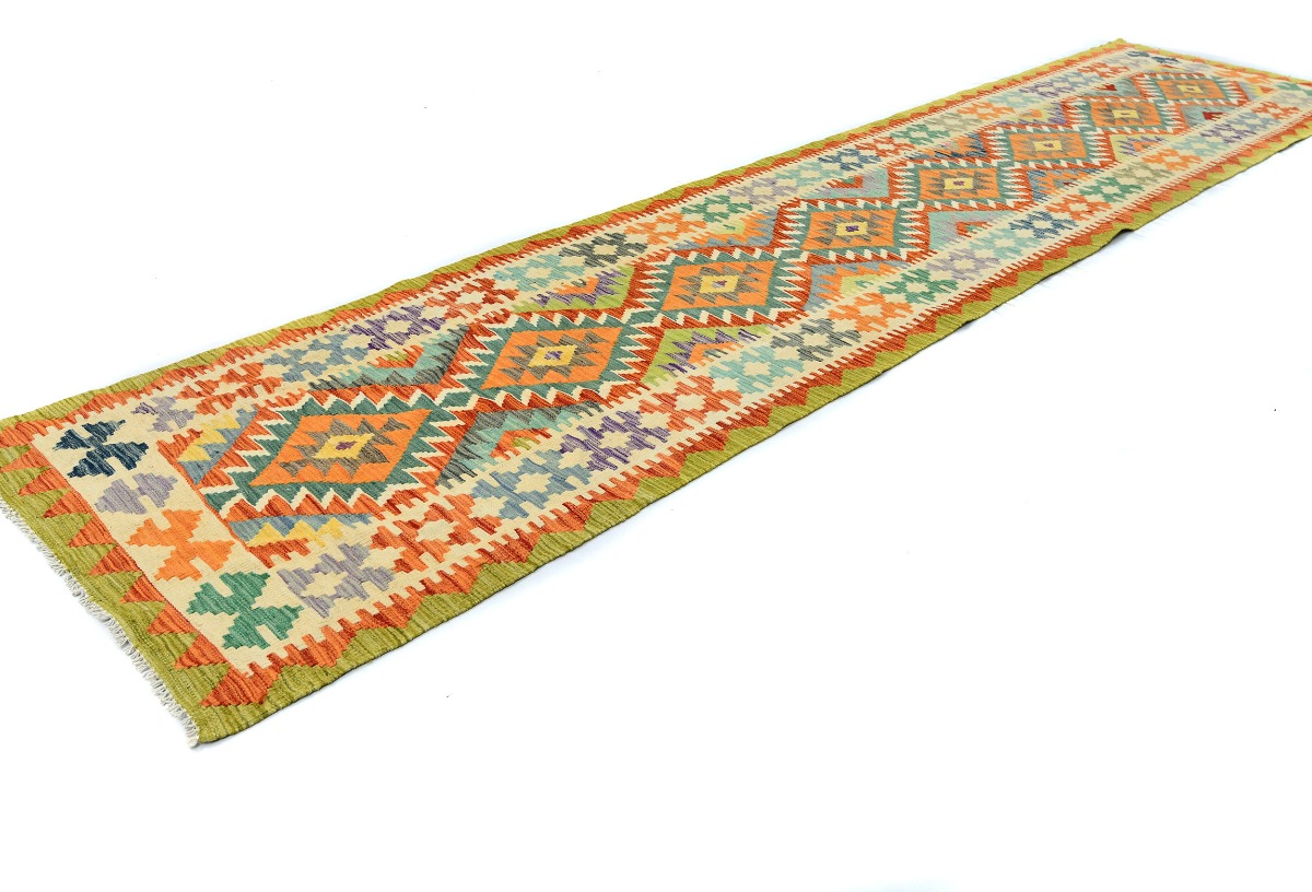Multicolored Geometric Reversible 3X13 Kilim Oriental Runner Rug