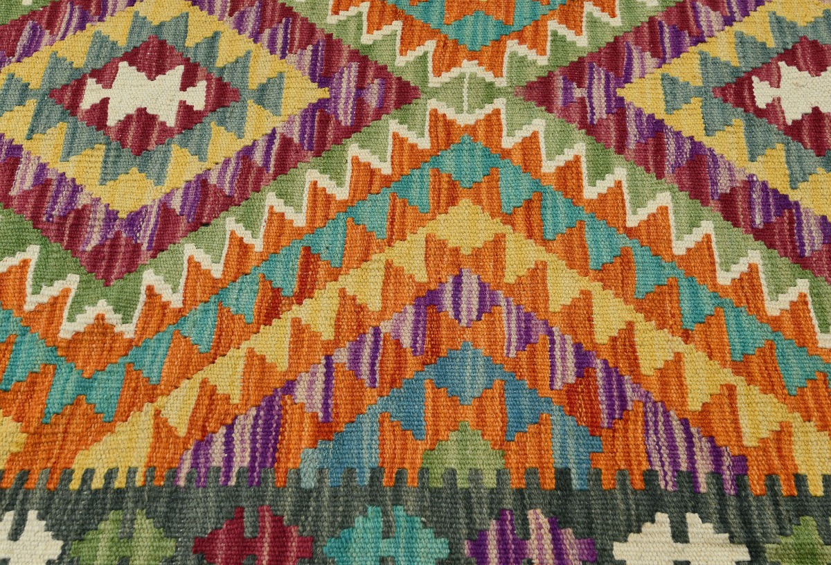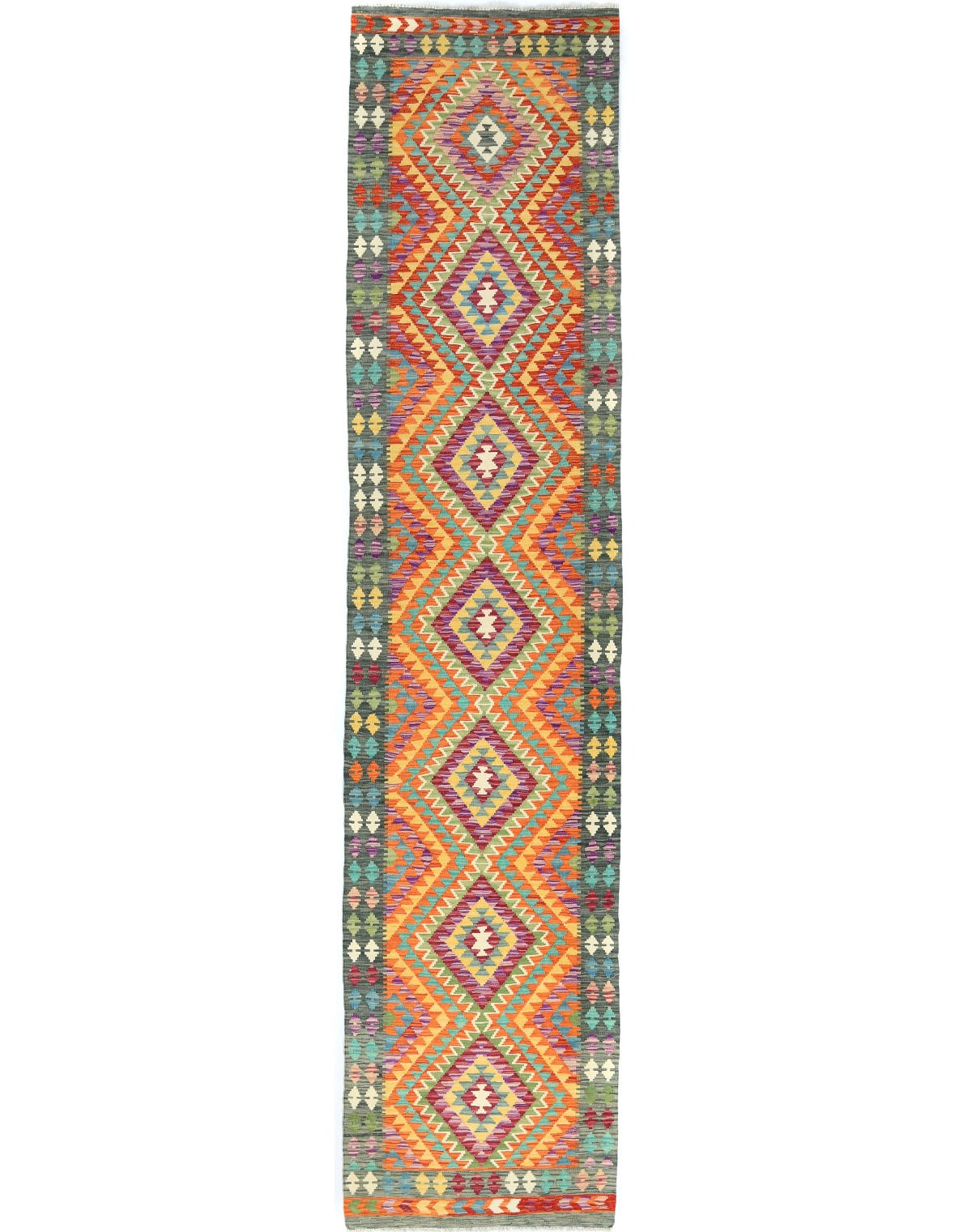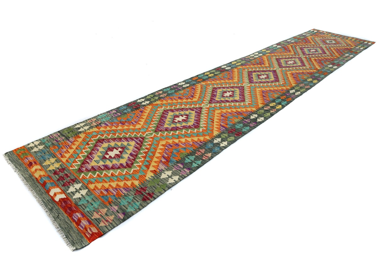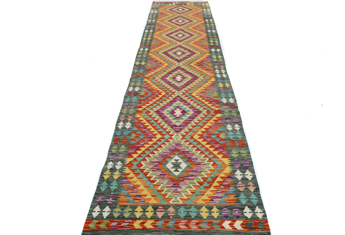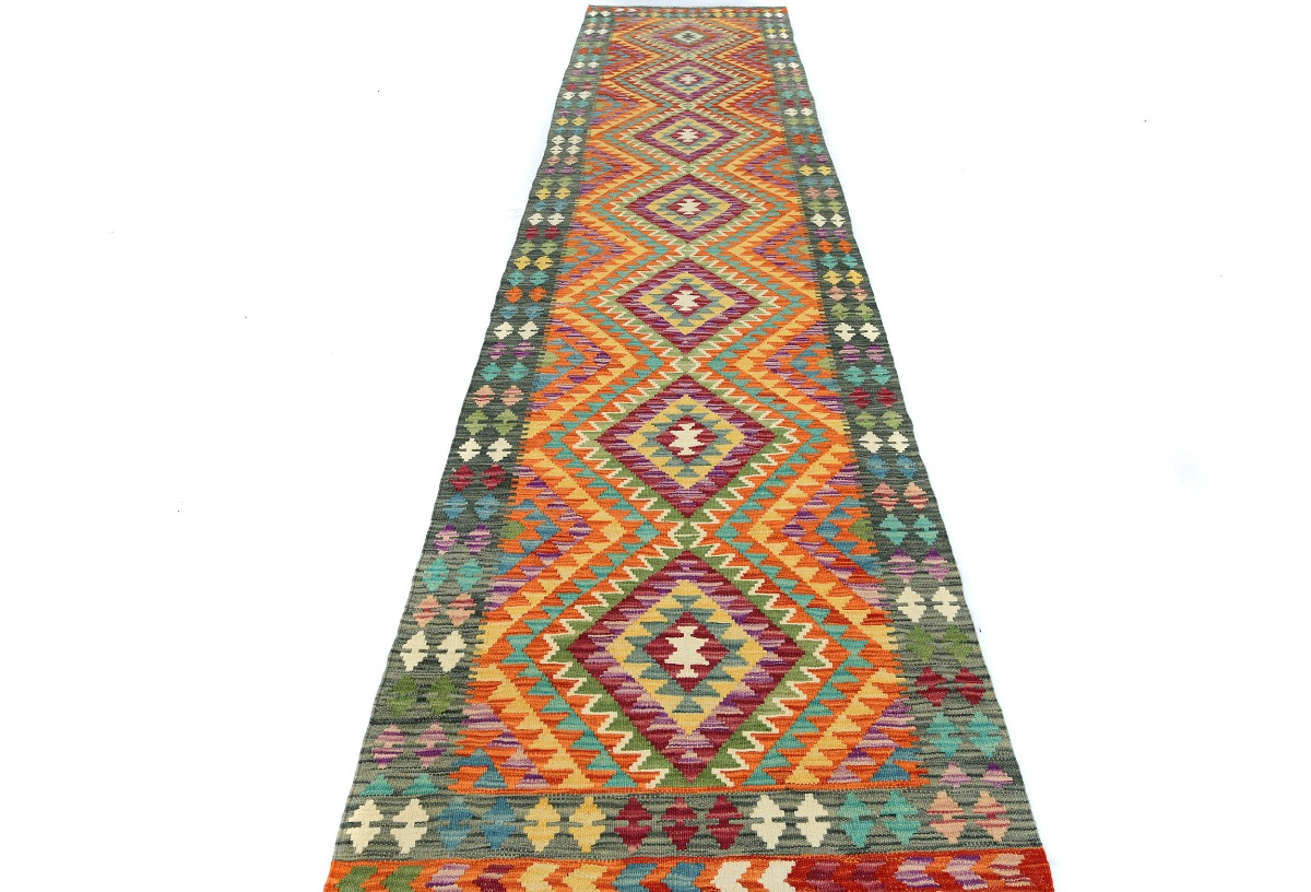 Multicolored Geometric Reversible 3X13 Kilim Oriental Runner Rug