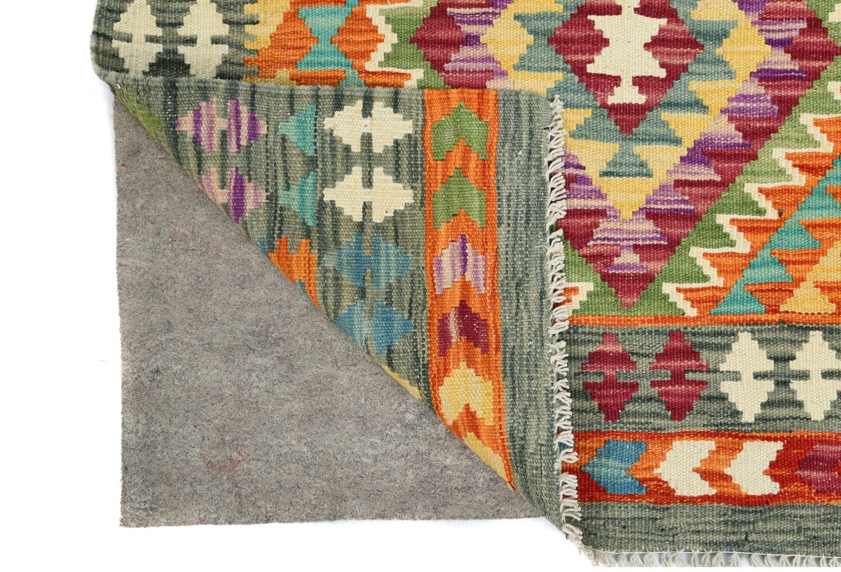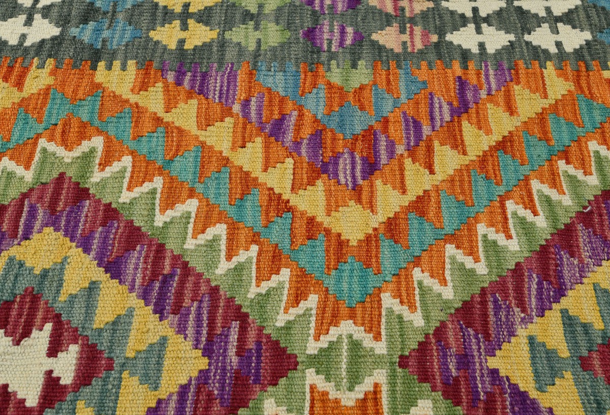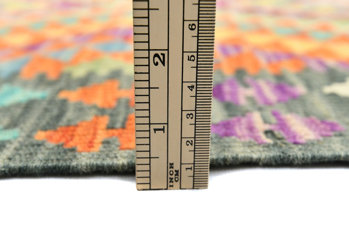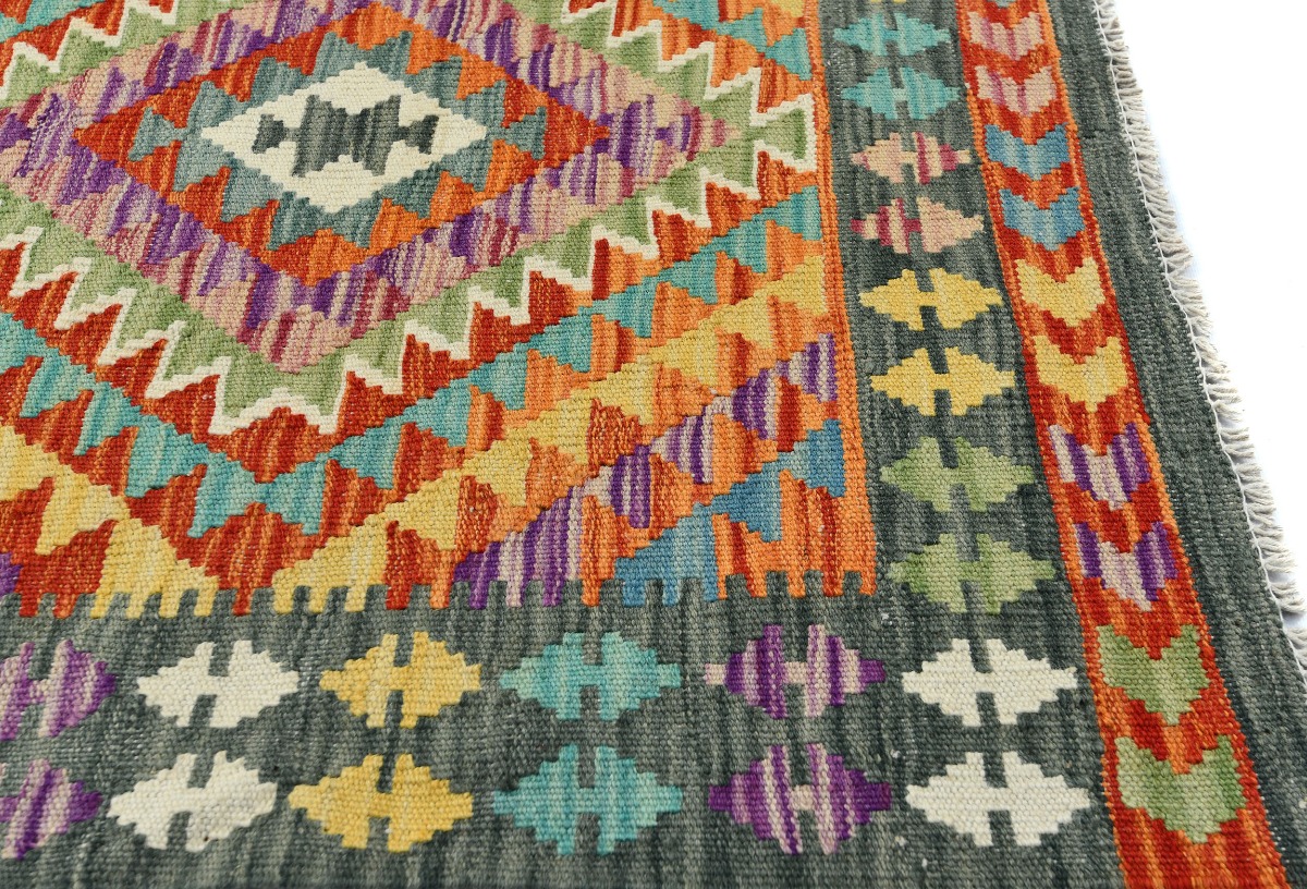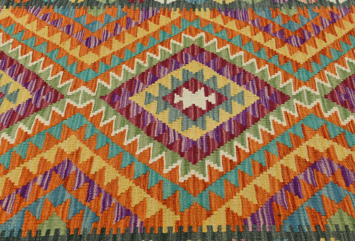 Multicolored Geometric Reversible 3X13 Kilim Oriental Runner Rug