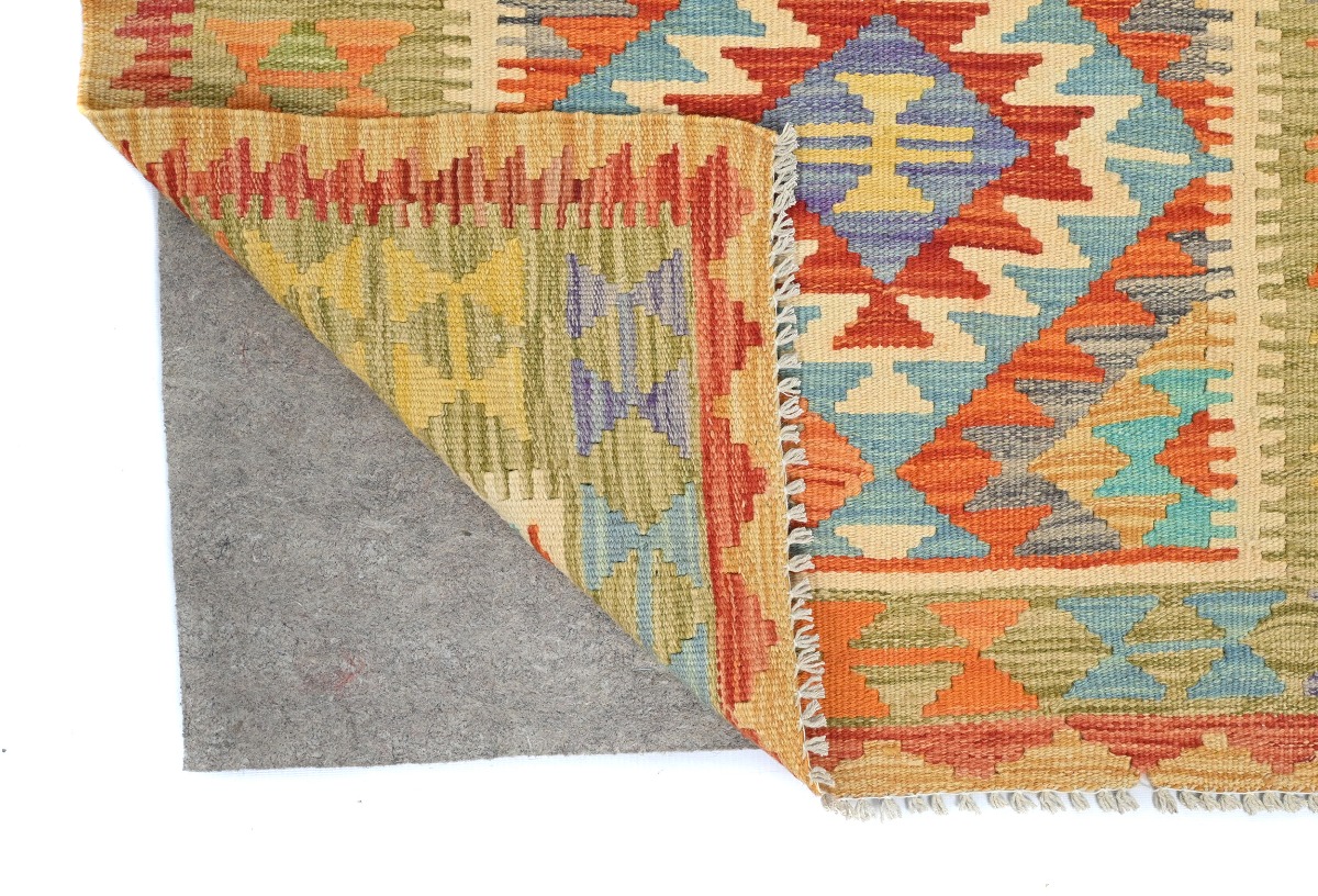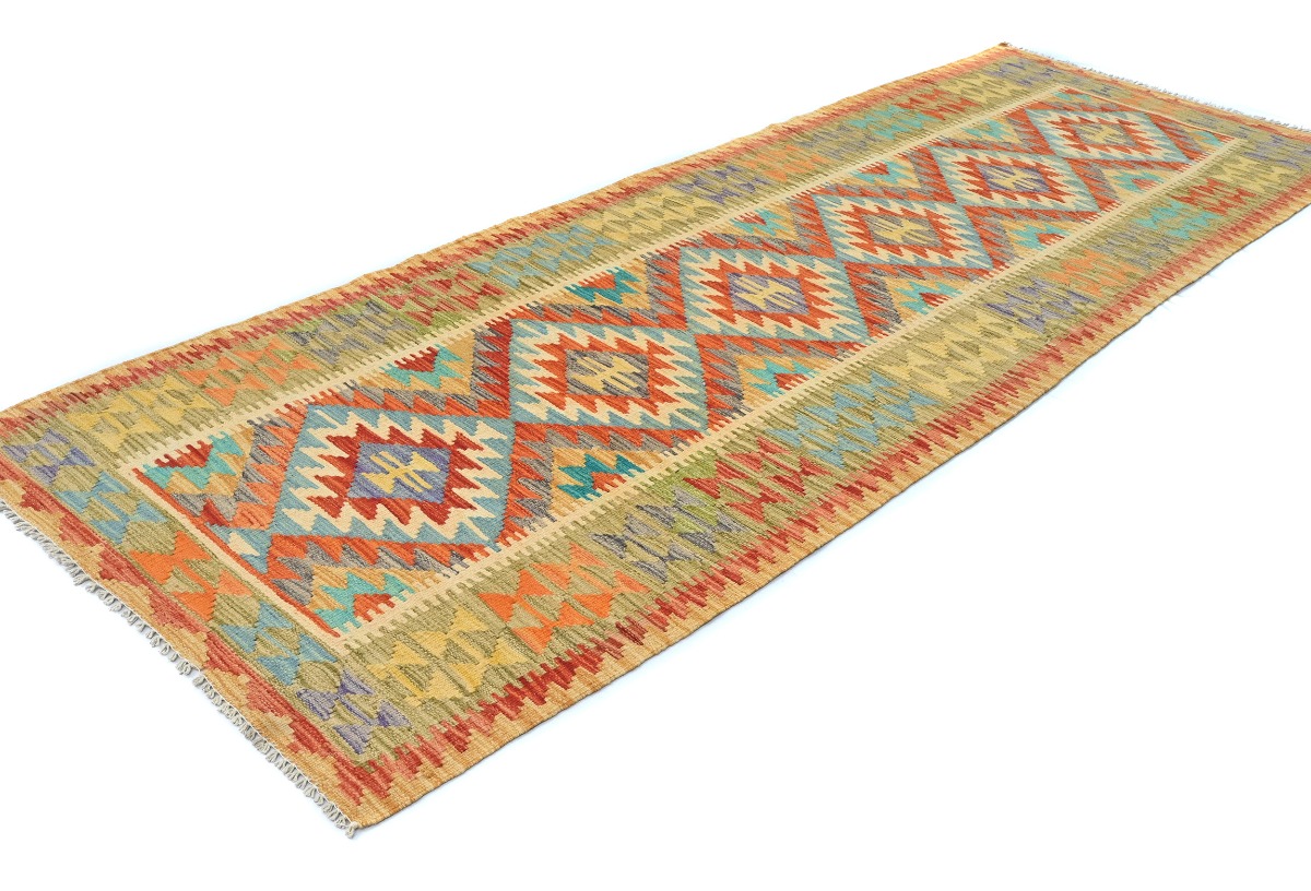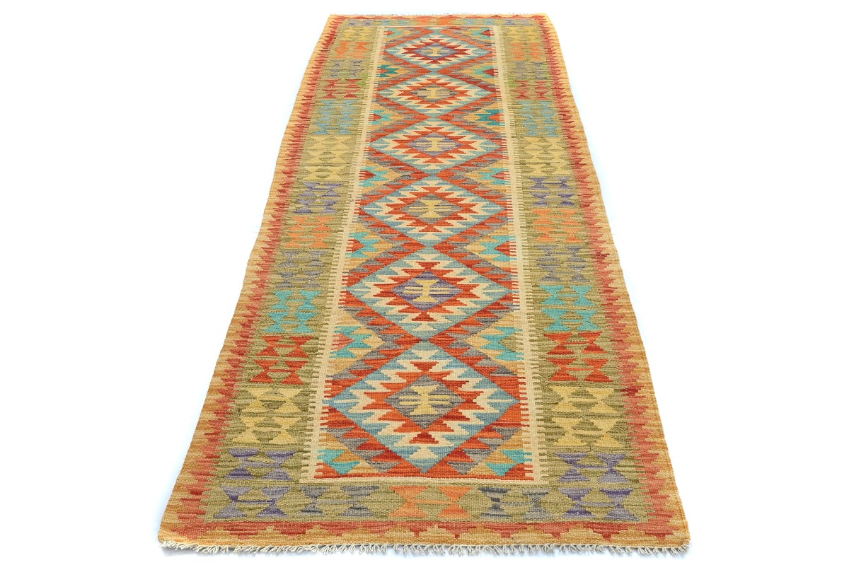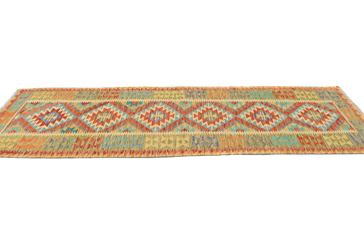 Multicolored Geometric Reversible 3X8 Kilim Oriental Runner Rug