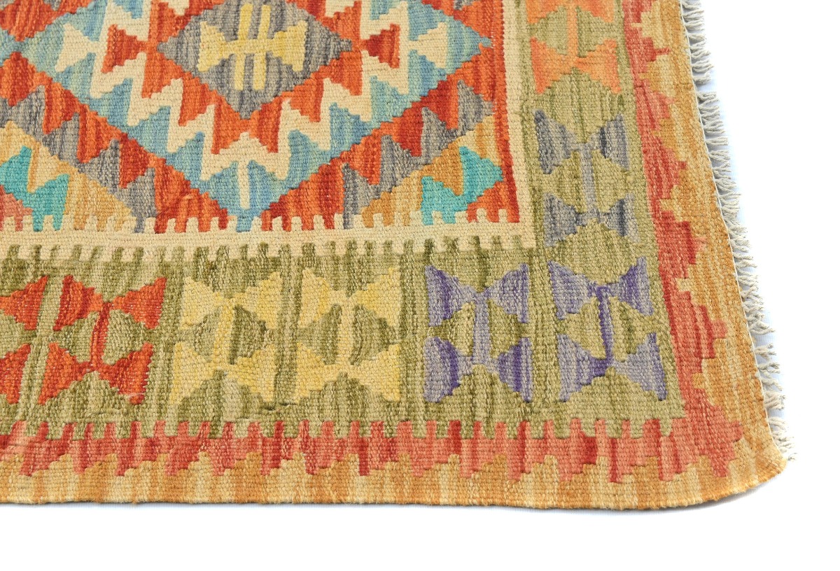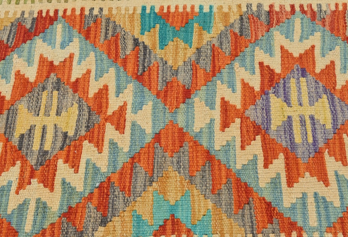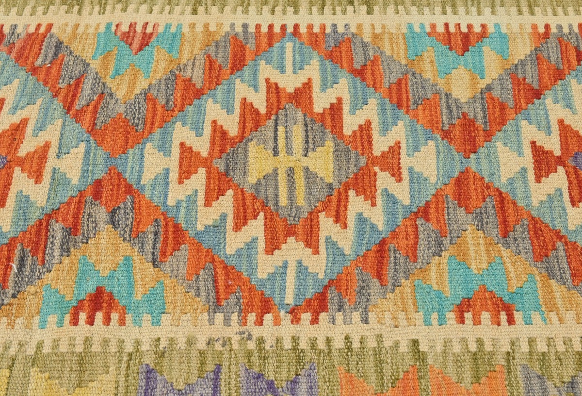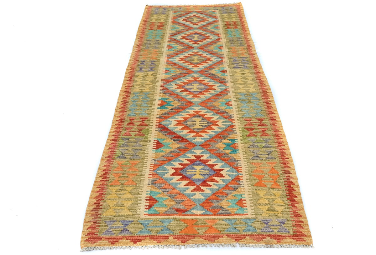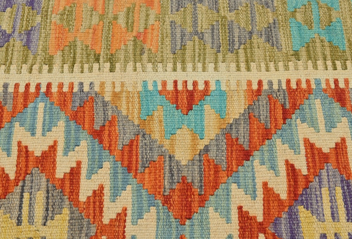 Multicolored Geometric Reversible 3X8 Kilim Oriental Runner Rug