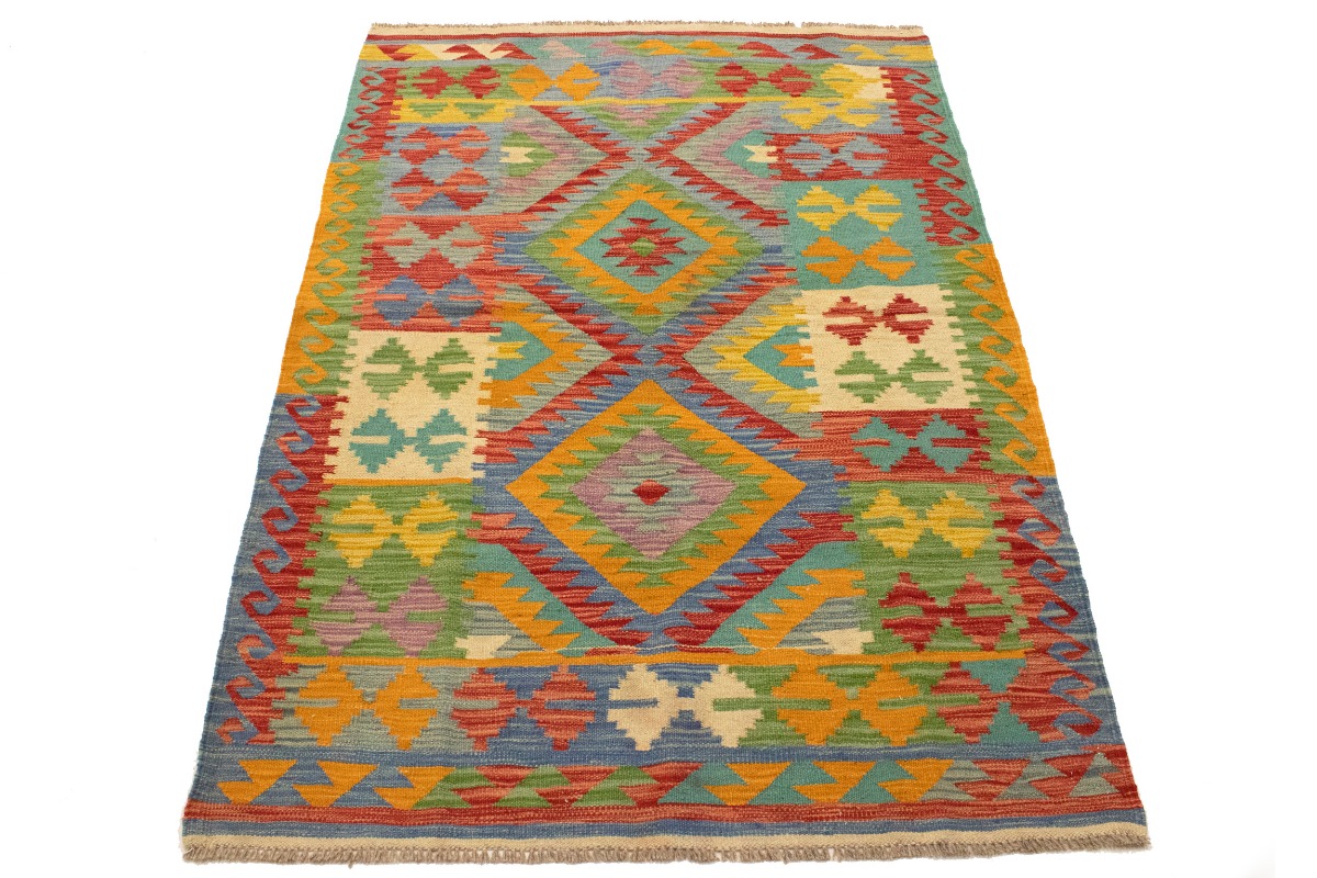 Multicolored Geometric Reversible 4X6 Kilim Oriental Rug