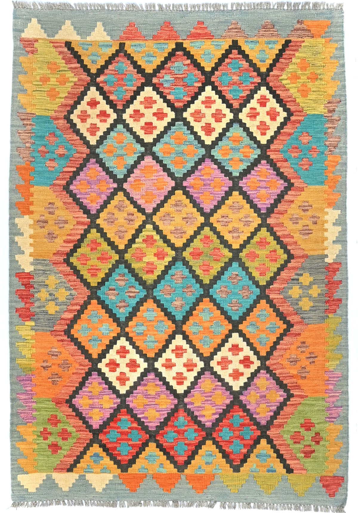 Multicolored Geometric Reversible 4X6 Kilim Oriental Rug