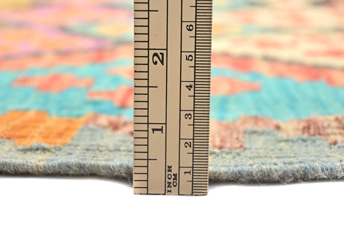 This original 4X6 multicolor Kilim rug was well-constructed by the hands of master weavers motivated by a variety of stunning artistic designs, to recreate the aged look of the exceptional piece with a richness of color and developed decorative background field. What set this tribal Oriental area rug from the others are the material and dye used (wool pile and cotton foundation), knot count, ancient designs, fantastic grades, and its regional historical connection: it has deep roots, from the story of the people who produced it to the meaning of the symbols and colors displayed across its canvas that have been praised for centuries. This home décor carpet will be completely cozy and inviting that never will go out of style! Also, this Oriental rug would be among your most valuable treasures, it is a great investment that increase in value over time, and it will last a lifetime because was woven with high-quality, all-natural wool; it won’t rip, tear, or shed. Eco-friendly, opulent yet affordable; this Persian rug will give you an extra pop of character to help define your home environment with elegance and warmth that will capture the eyes and attention of your audience (homeowners, designers, decorators, family and friends). RT-6674