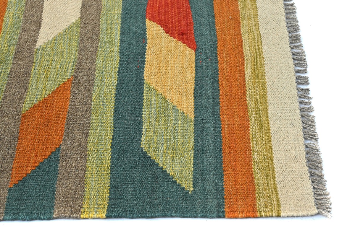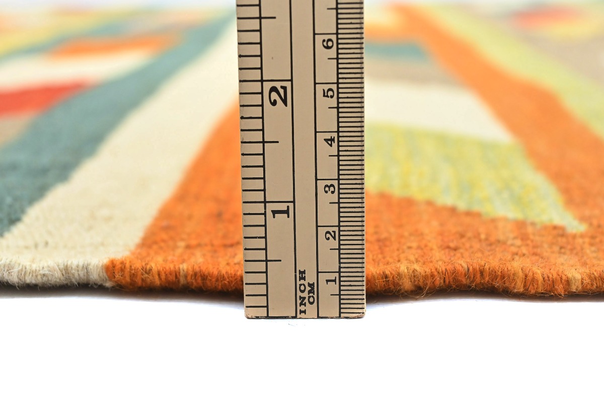 This original 4X6 multicolor Kilim rug was well-constructed by the hands of master weavers motivated by a variety of stunning artistic designs, to recreate the aged look of the exceptional piece with a richness of color and developed decorative background field. What set this tribal Oriental area rug from the others are the material and dye used (wool pile and cotton foundation), knot count, ancient designs, fantastic grades, and its regional historical connection: it has deep roots, from the story of the people who produced it to the meaning of the symbols and colors displayed across its canvas that have been praised for centuries. This home décor carpet will be completely cozy and inviting that never will go out of style! Also, this Oriental rug would be among your most valuable treasures, it is a great investment that increase in value over time, and it will last a lifetime because was woven with high-quality, all-natural wool; it won’t rip, tear, or shed. Eco-friendly, opulent yet affordable; this Persian rug will give you an extra pop of character to help define your home environment with elegance and warmth that will capture the eyes and attention of your audience (homeowners, designers, decorators, family and friends). RT-6677