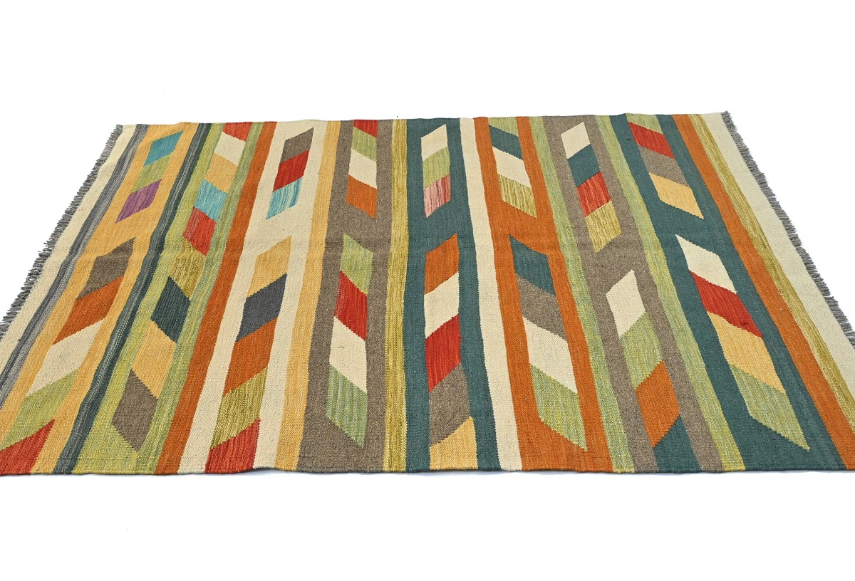 Multicolored Geometric Reversible 4X6 Kilim Oriental Rug