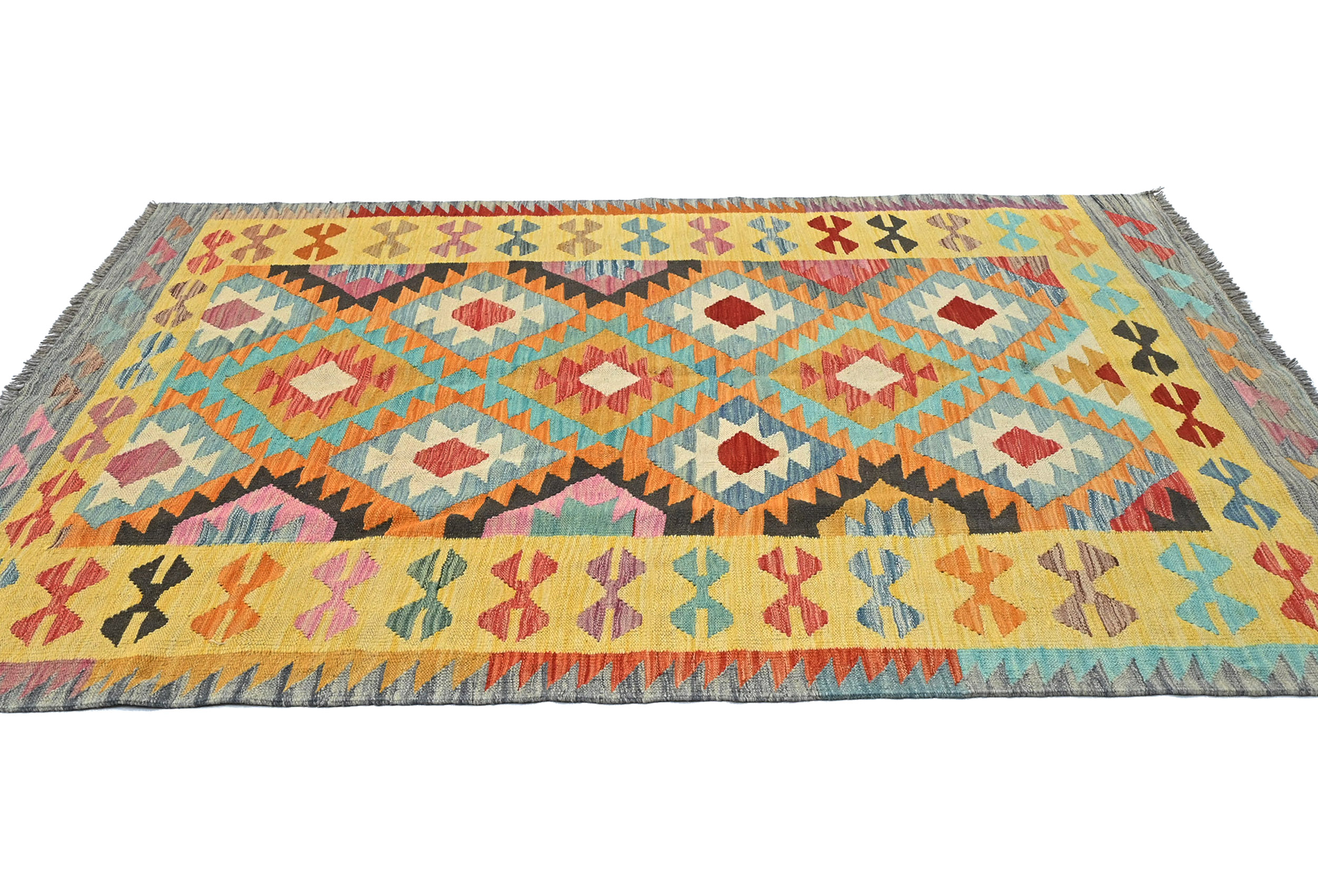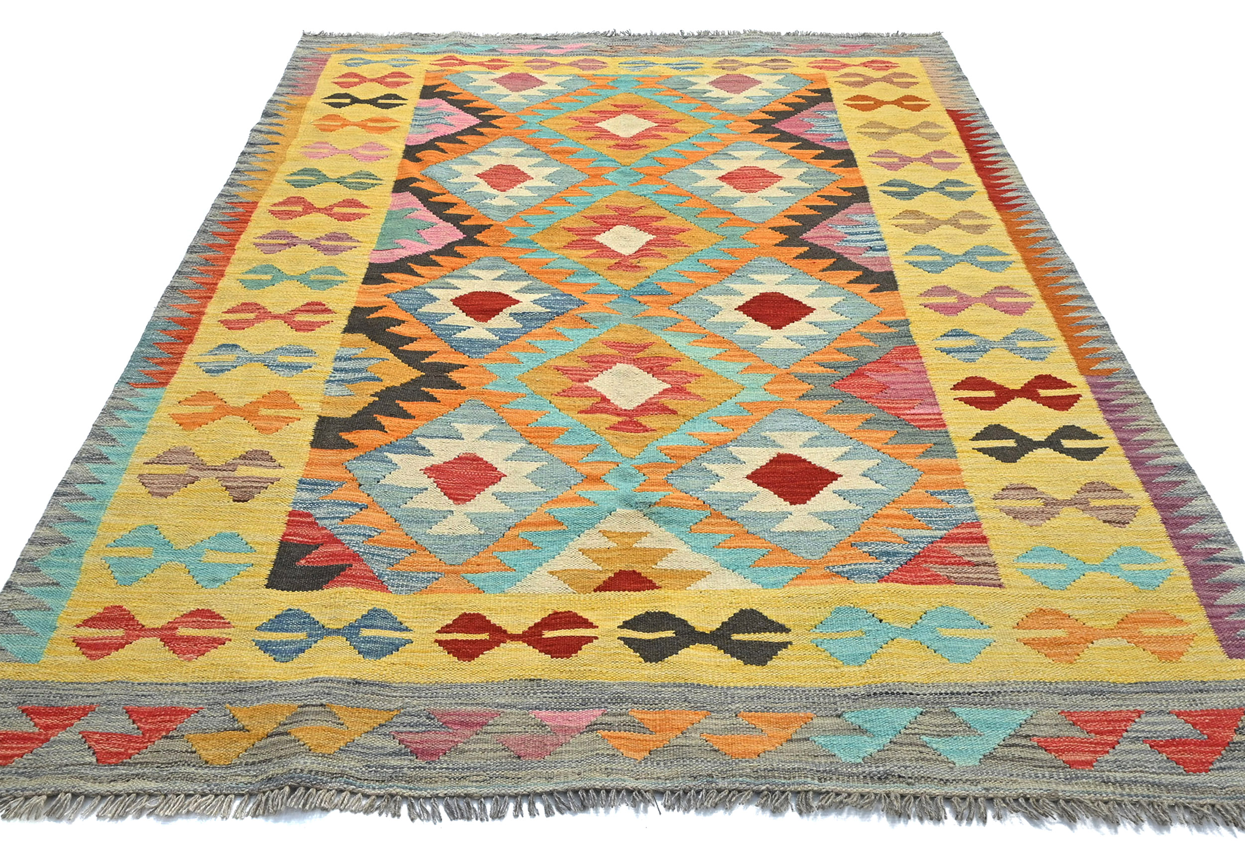 Multicolored Geometric Reversible 5X7 Kilim Oriental Rug