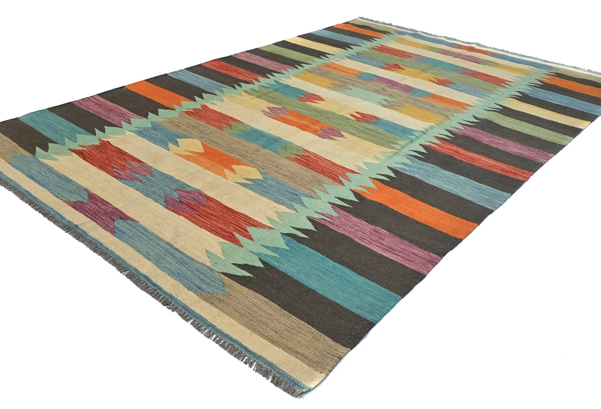 Multicolored Geometric Reversible 7X10 Kilim Oriental Rug