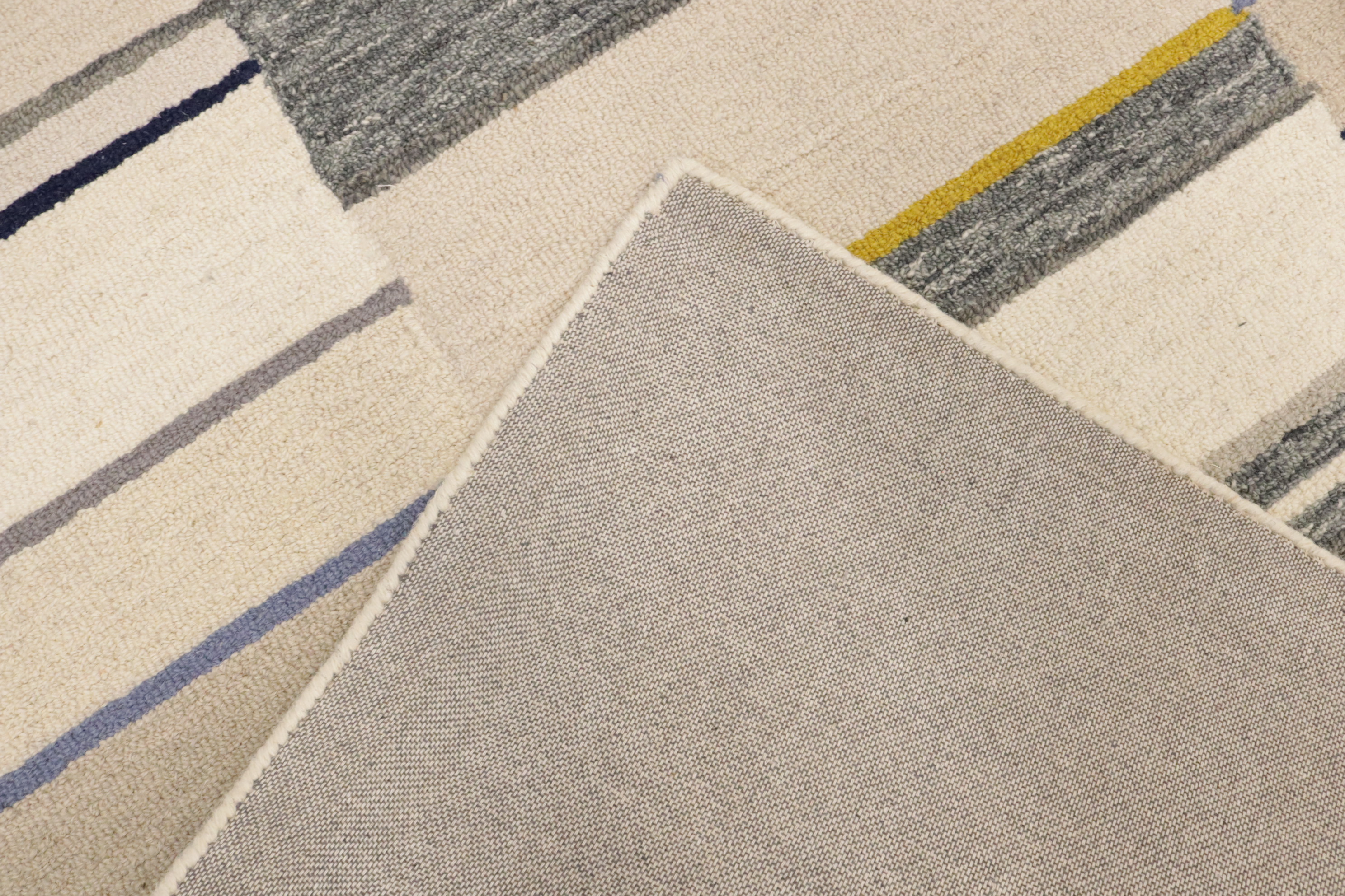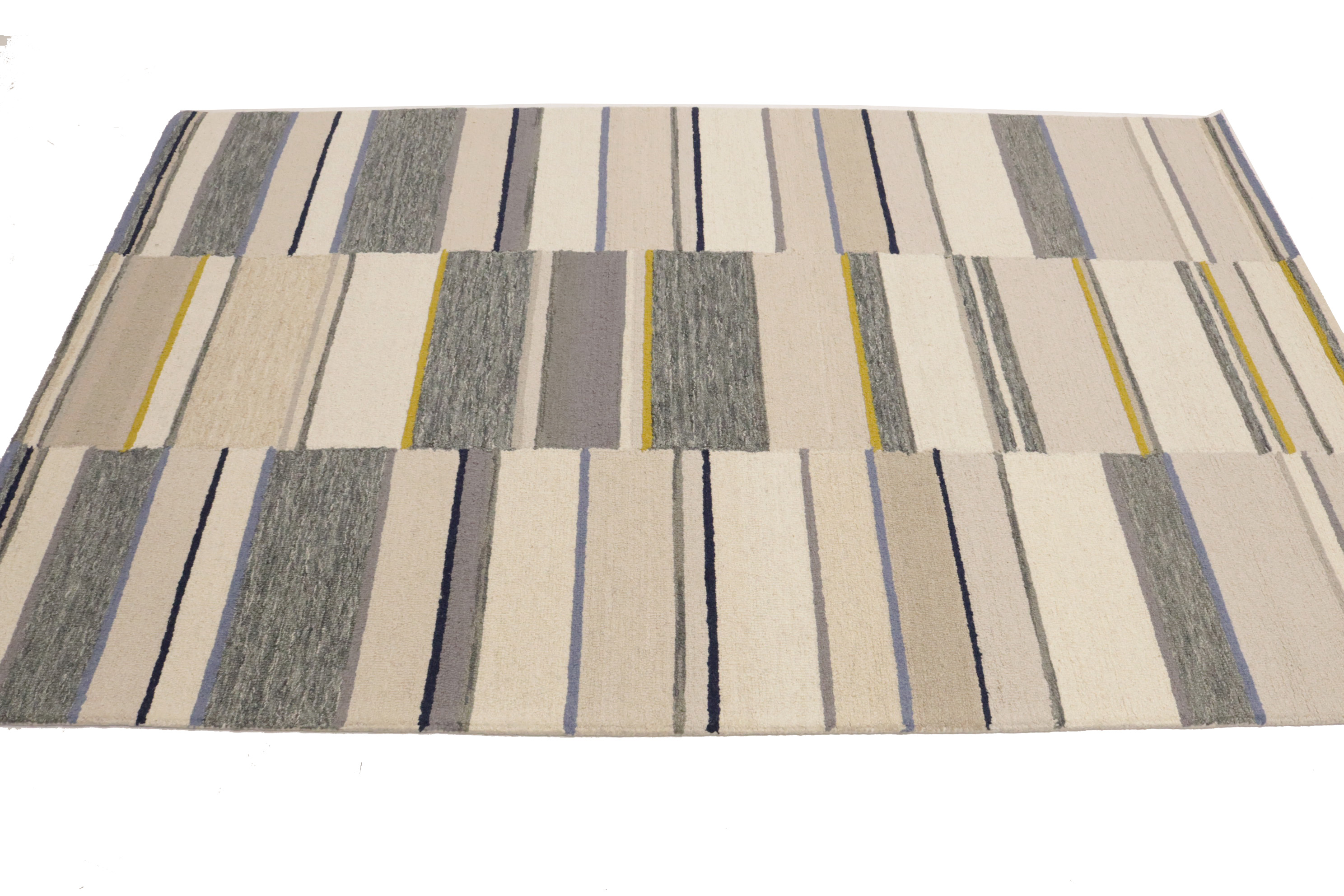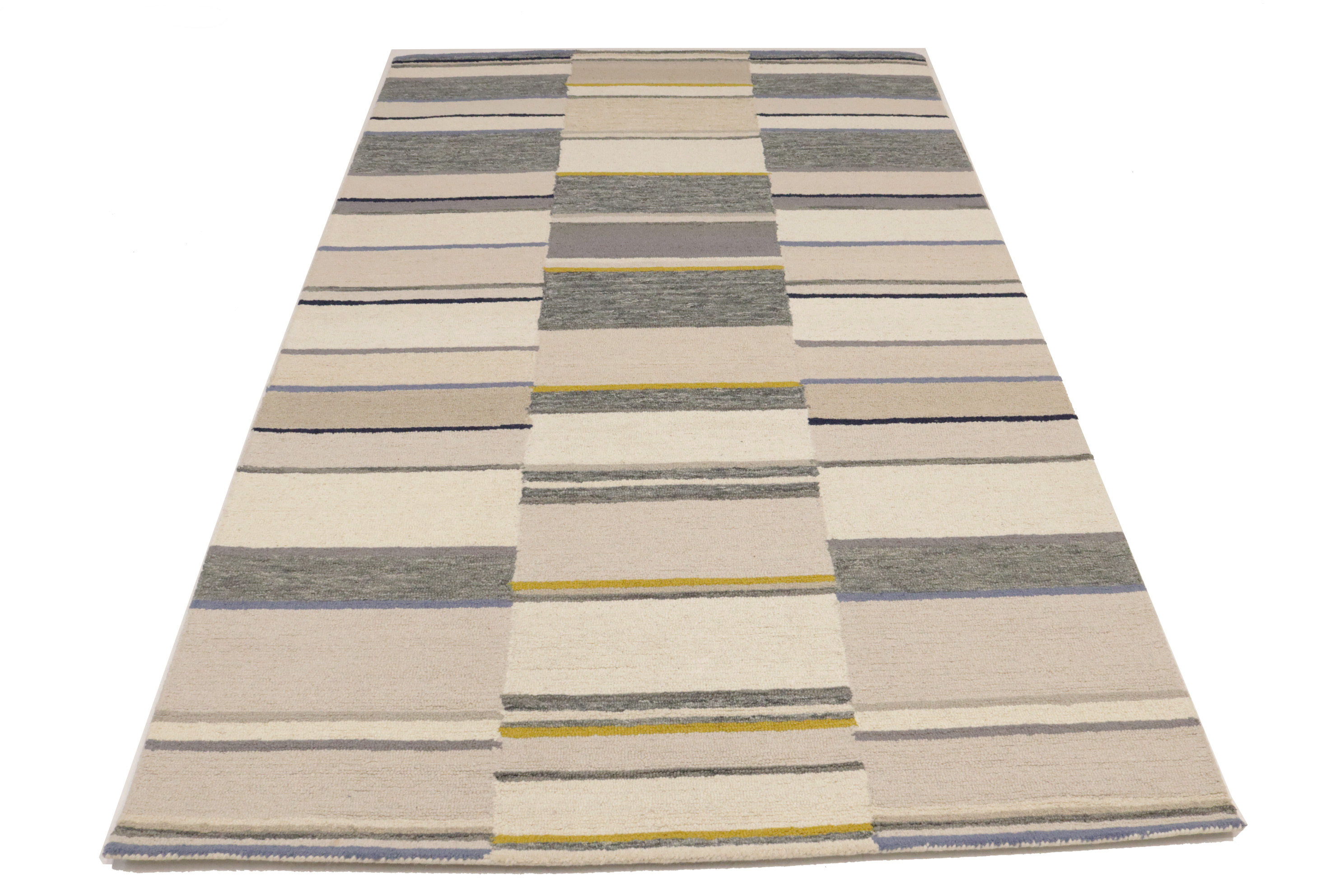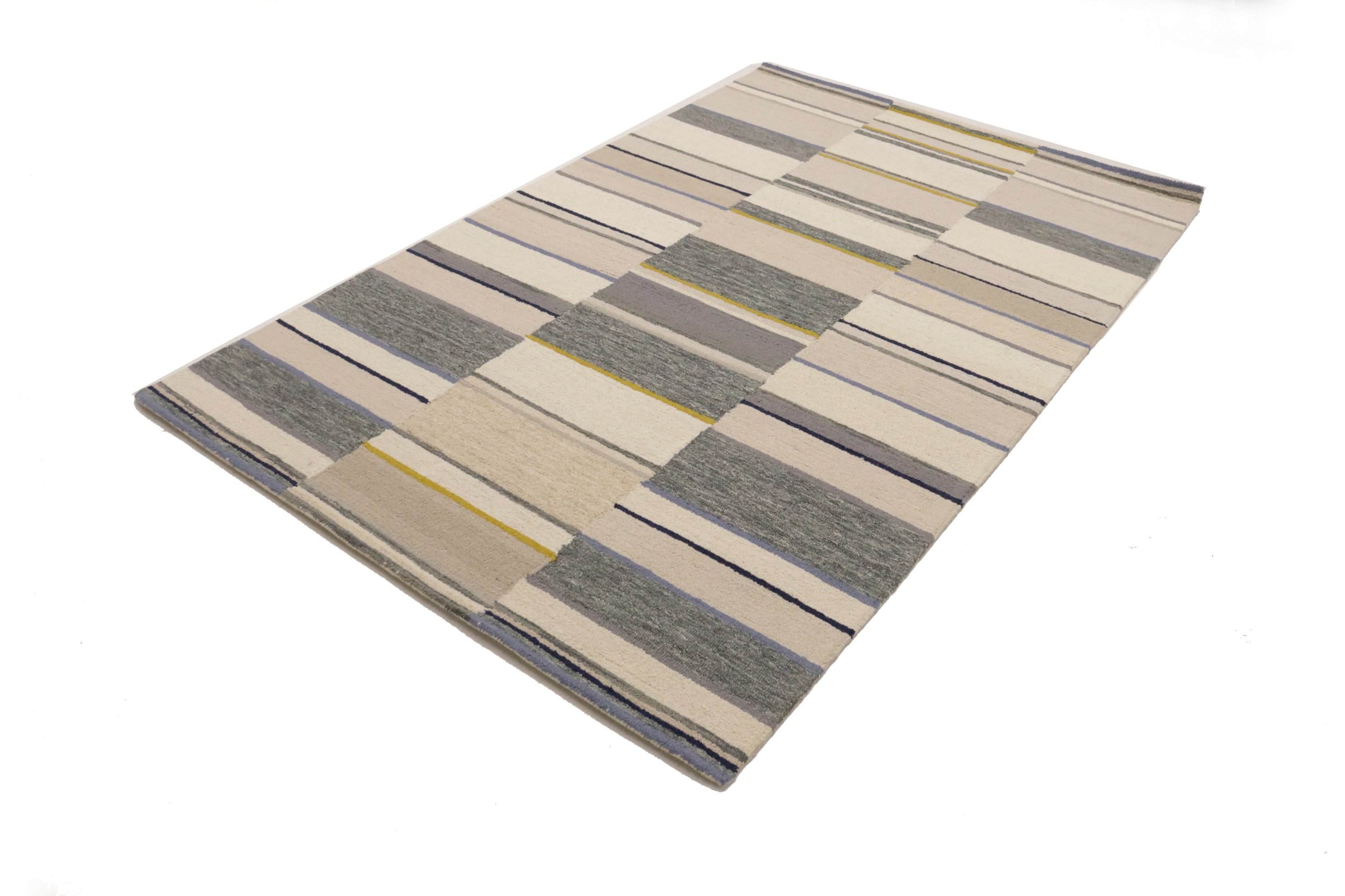 Entryway Foyer Décor Multicolored Stripes 5X8 Hand-Tufted Modern Rug Wool Carpet