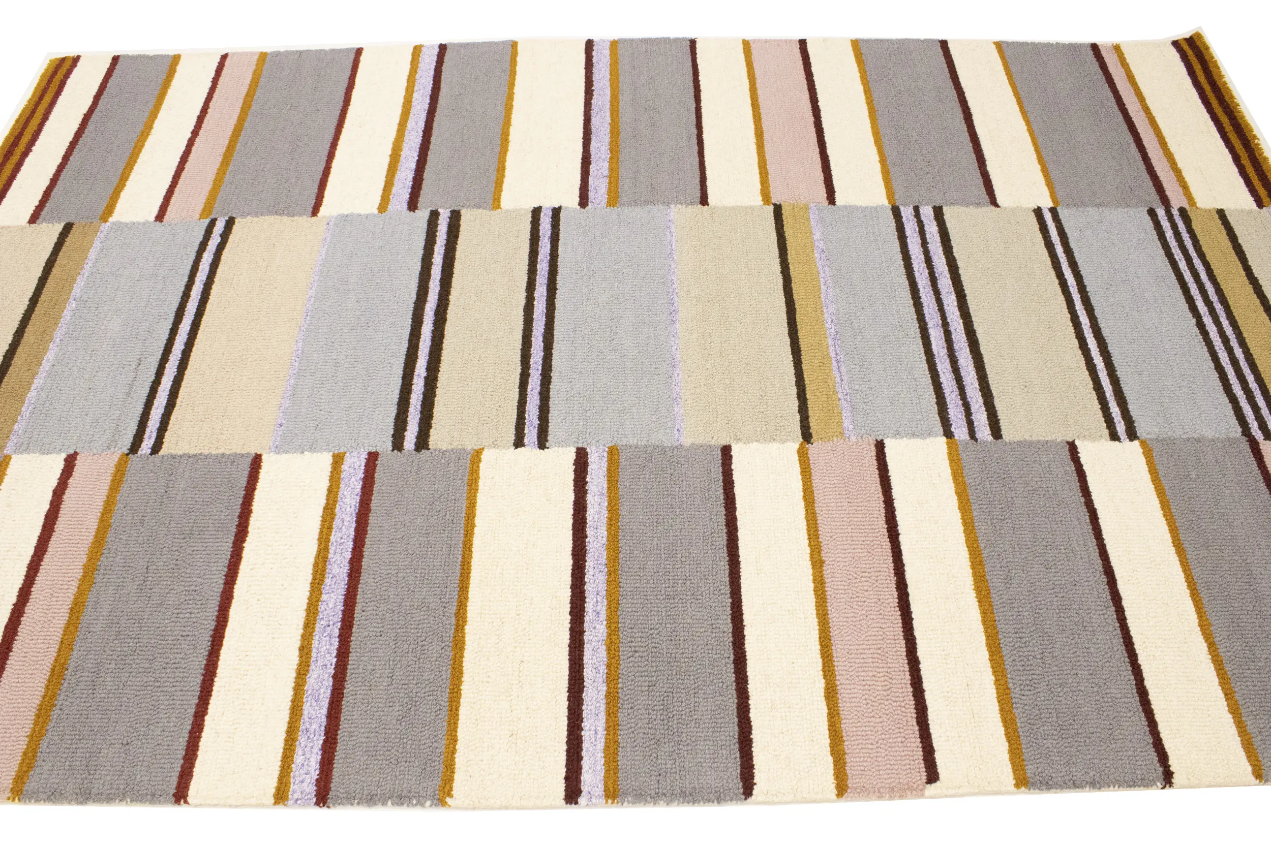 Multicolored Stripes Design Hand-Tufted 5X8 Modern Decor Rug Floor Wool Carpet