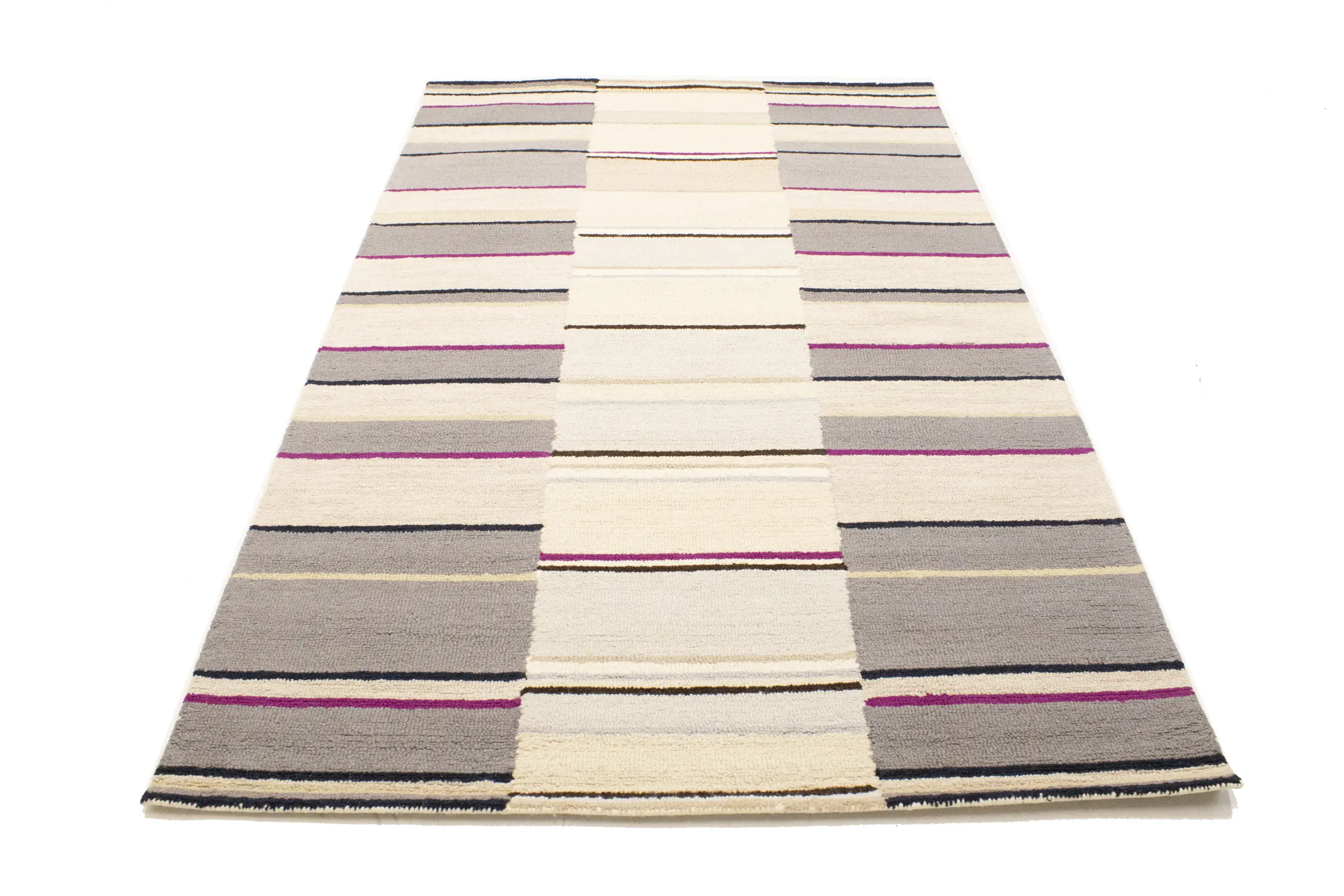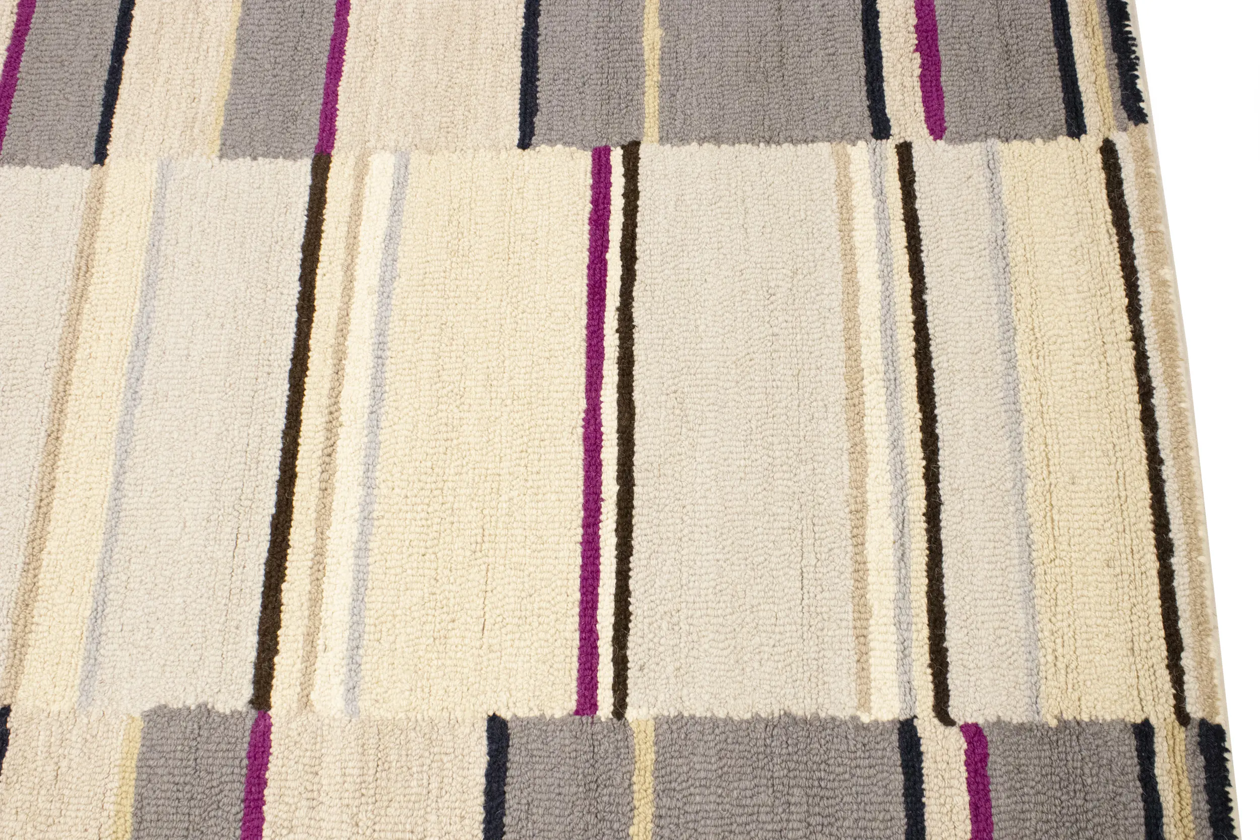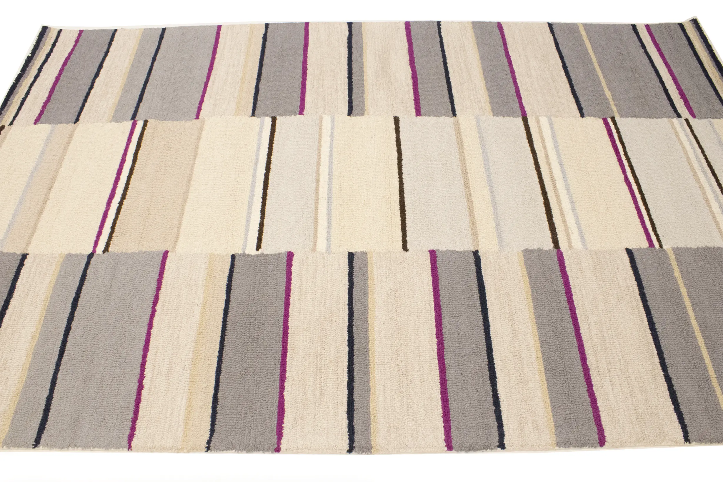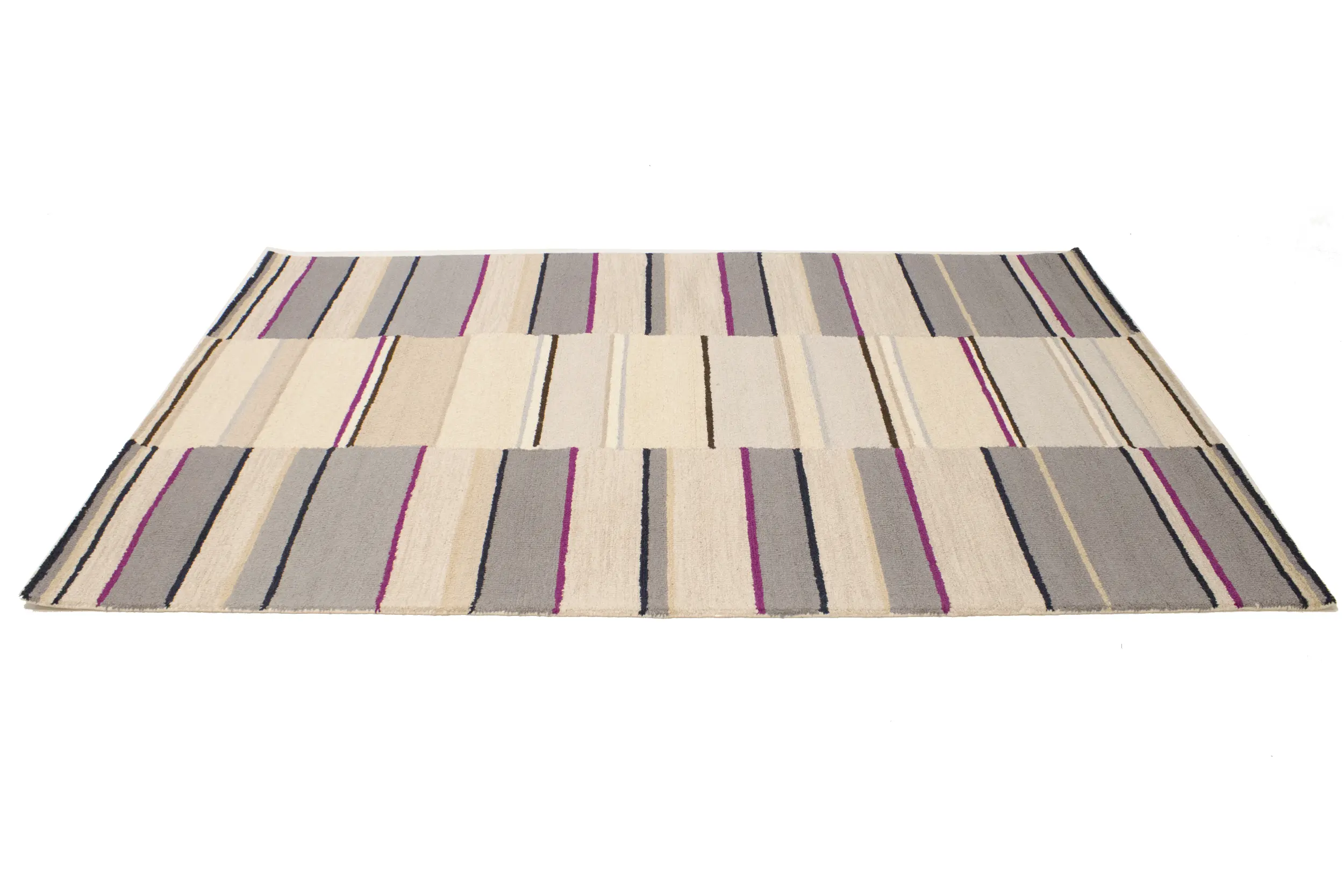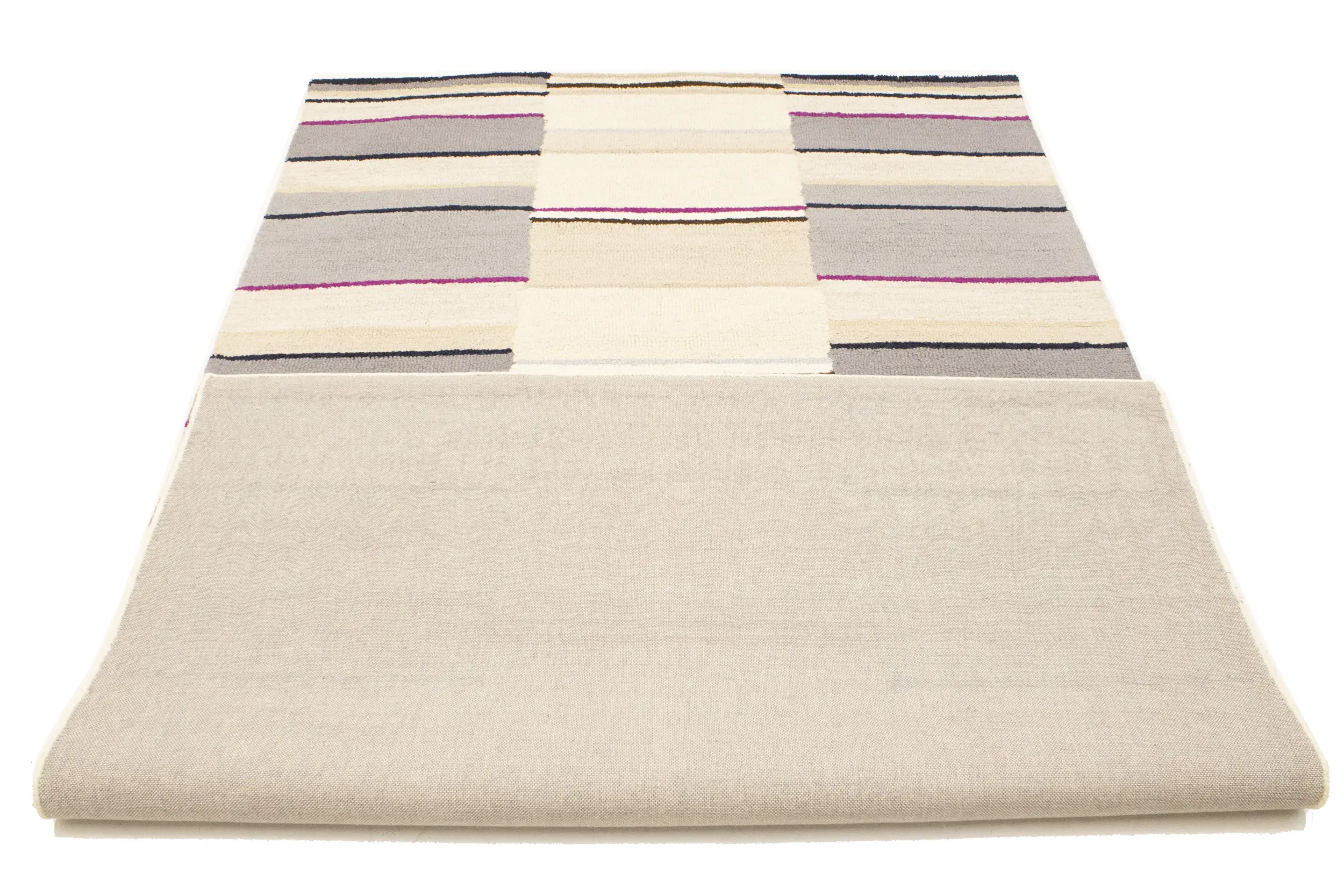 Contemporary Multicolored Stripes 5X8 Hand-Tufted Modern Rug Wool Decor Carpet