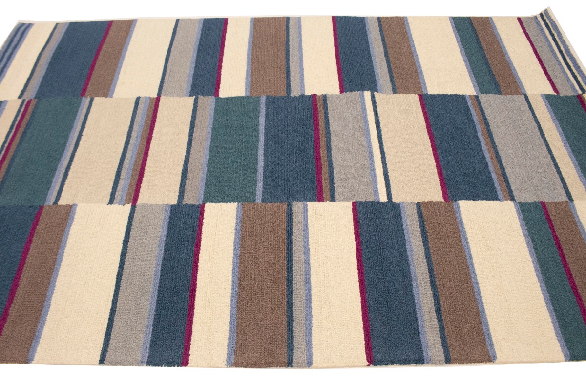 Multicolored Stripes Design Wool 5X8 Hand-Tufted Modern Rug Boys Room Carpet