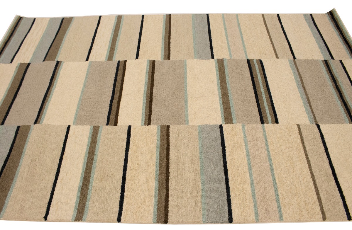 Multicolored Hand-Tufted Modern Rug 5X8 Stripes Kids Room Wool Decor Carpet