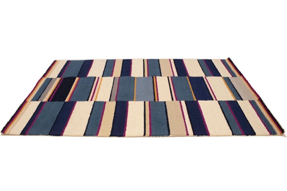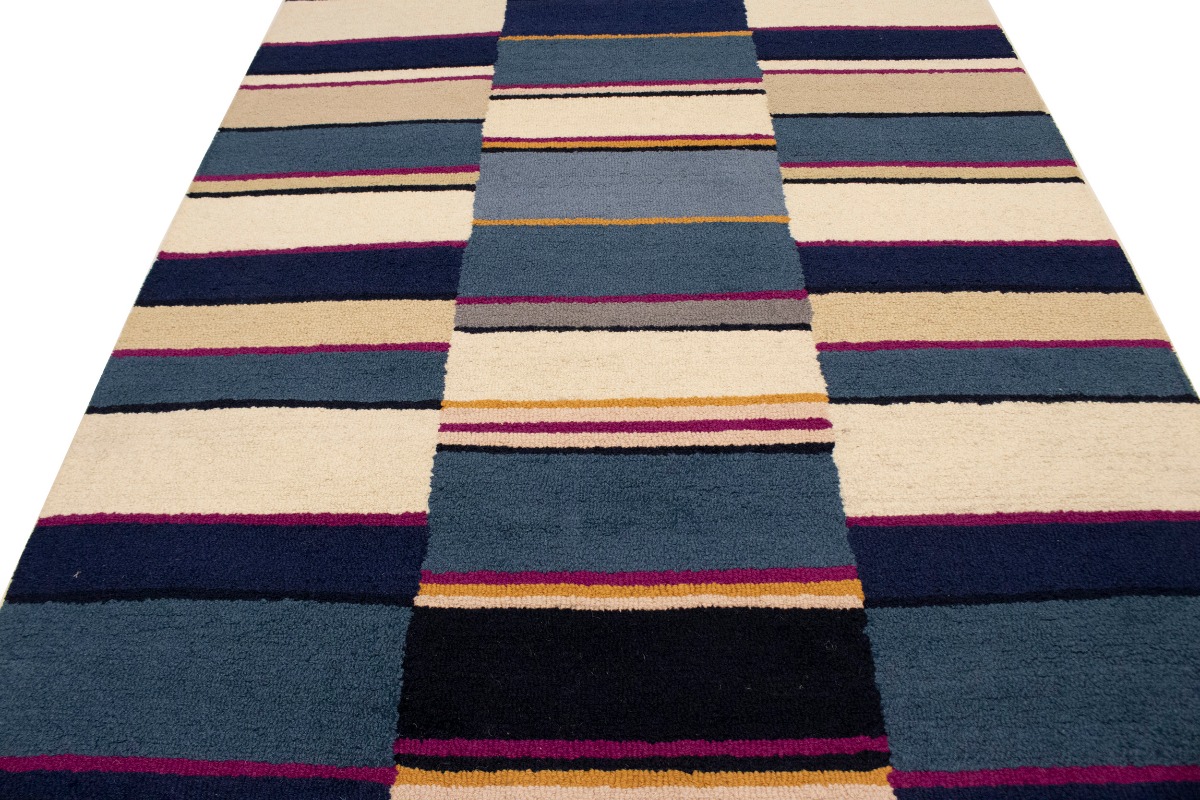 Hand-Tufted Modern Rug Decor 5X8 Multicolored Stripes Design Kids Bedroom Carpet