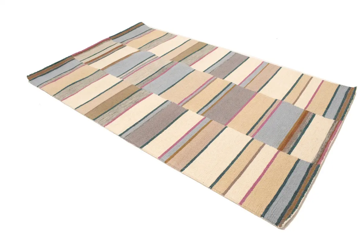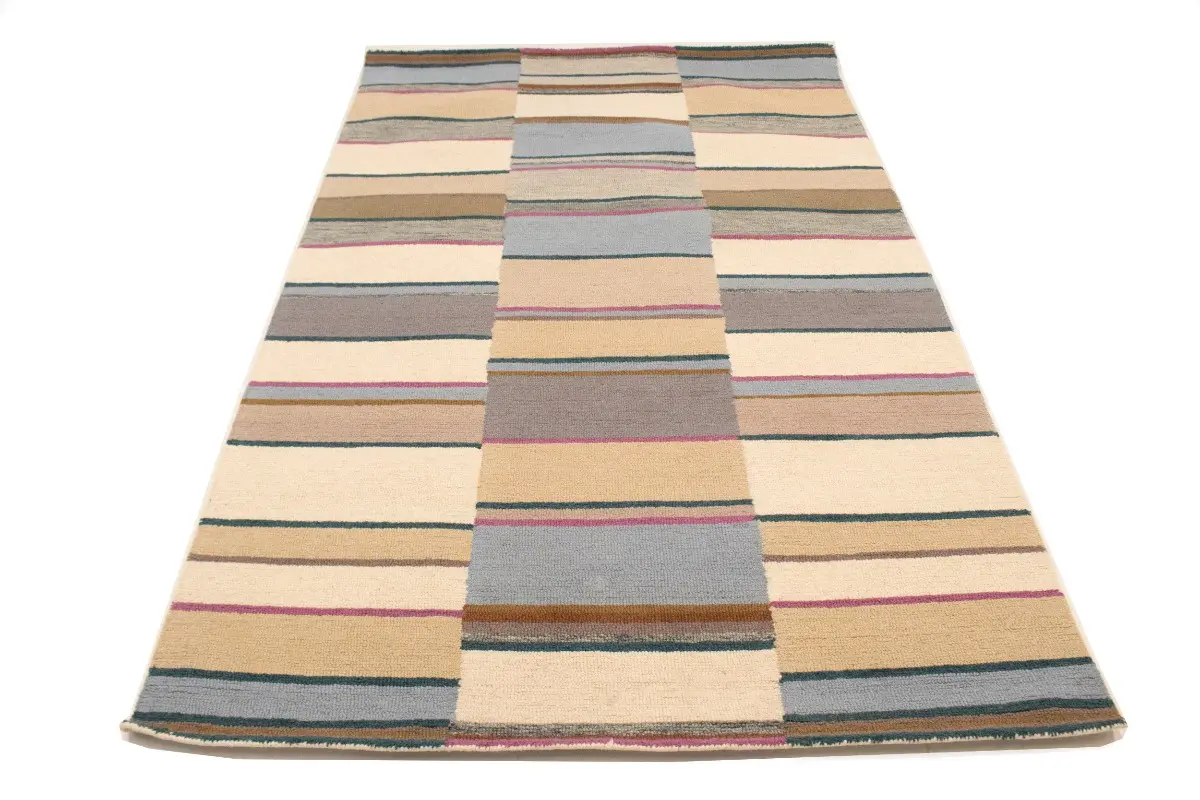 Rare Multicolored Stripes Design 5X8 Modern Hand-Tufted Contemporary Rug Carpet