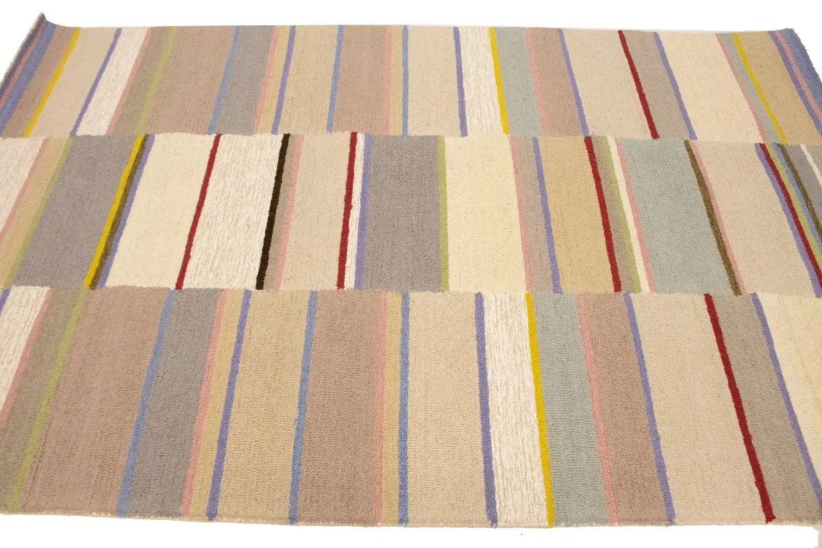Stripes Design Multicolored Hand-Tufted 5X8 Modern Rug Floor Wool Decor Carpet