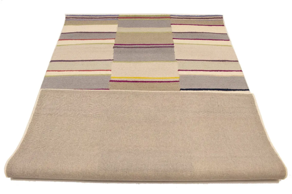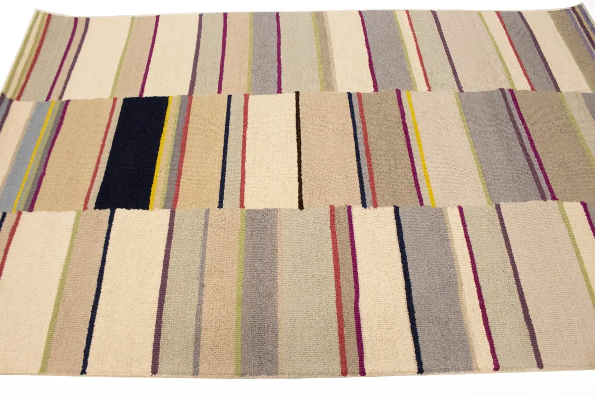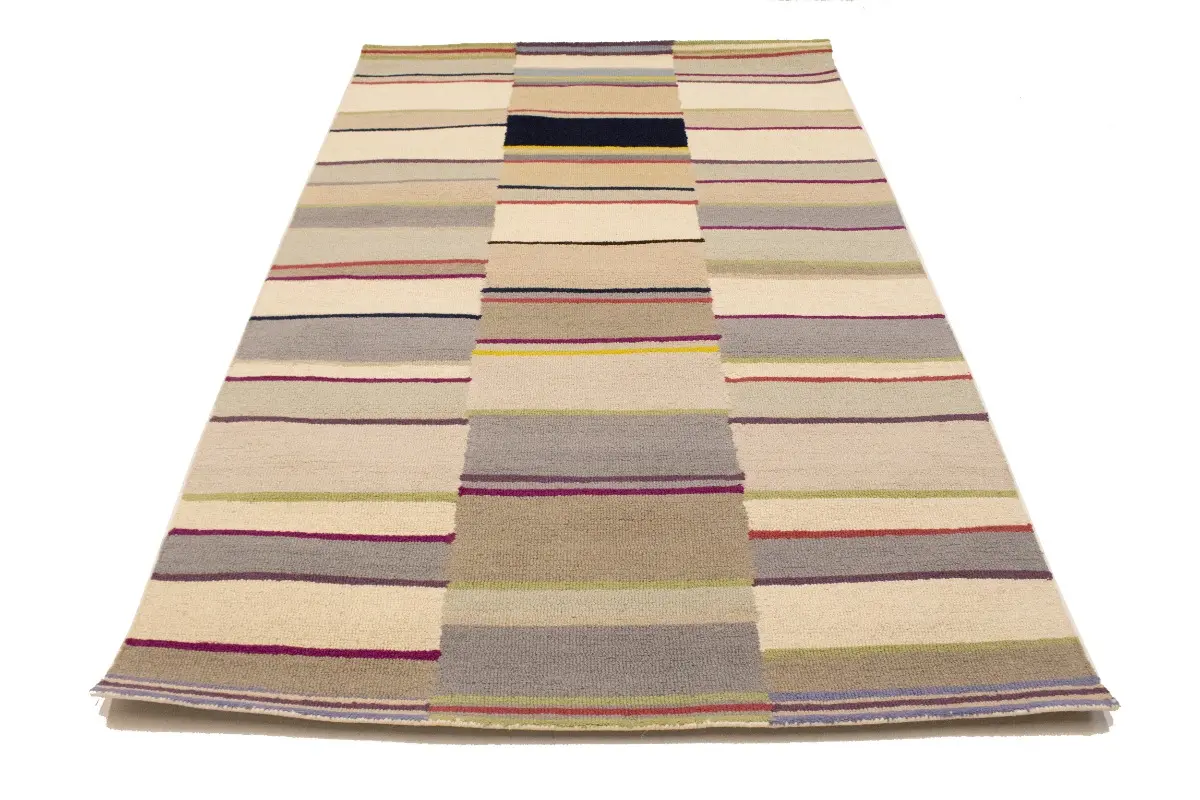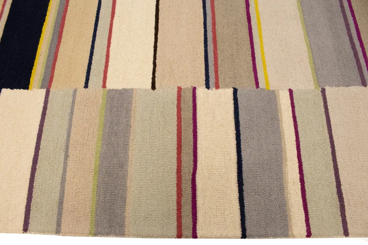 Hand-Tufted Multicolored Stripes Wool 5X8 Modern Area Rug Studio Office Carpet