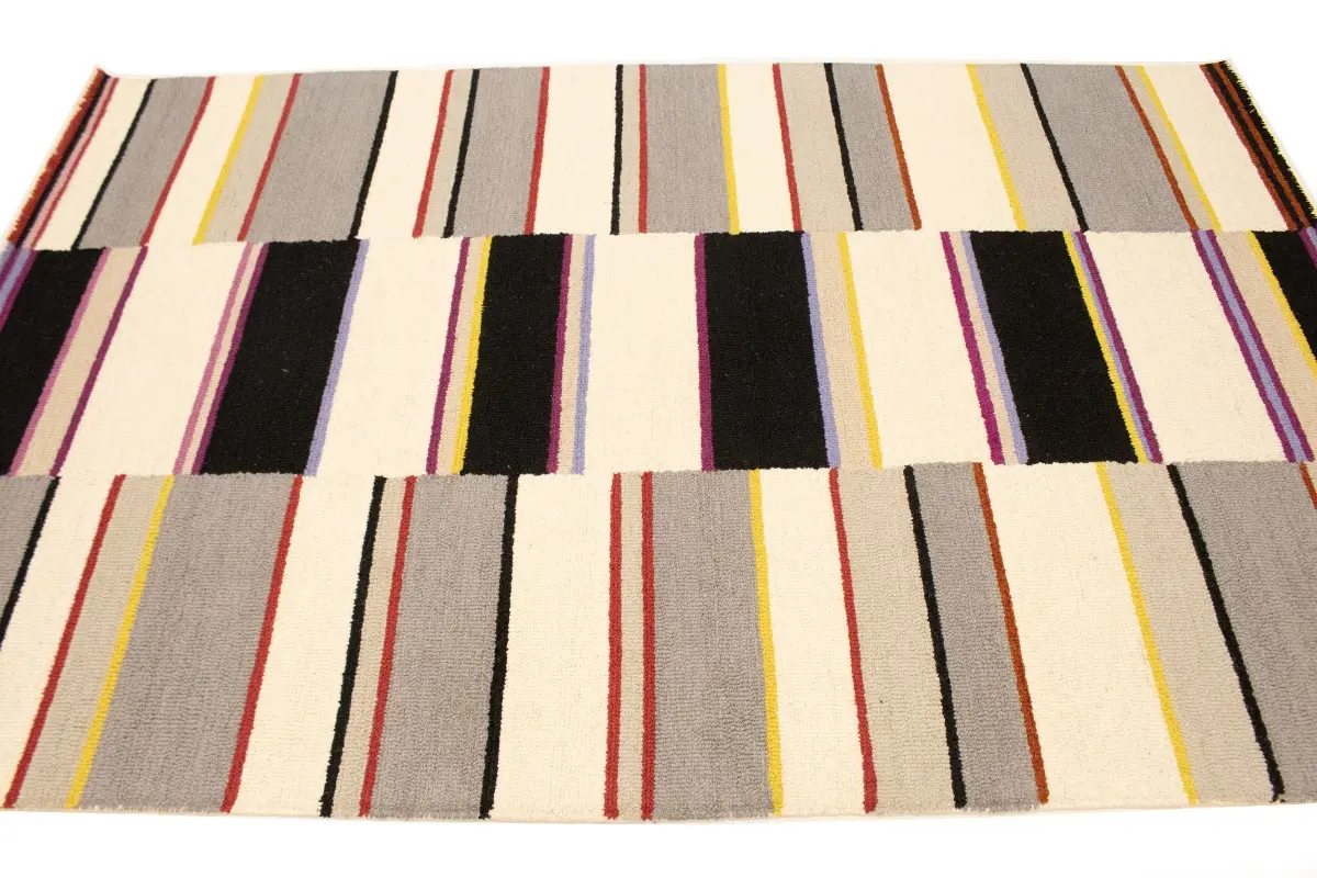 Multicolored Stripes Design 5X8 Hand-Tufted Modern Rug Studio Office Carpet