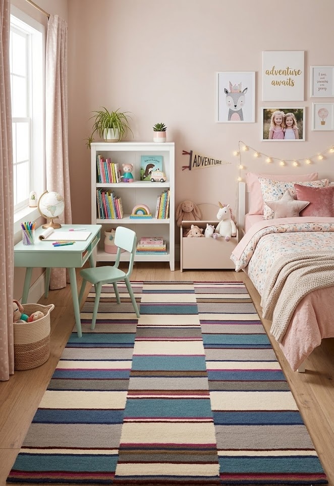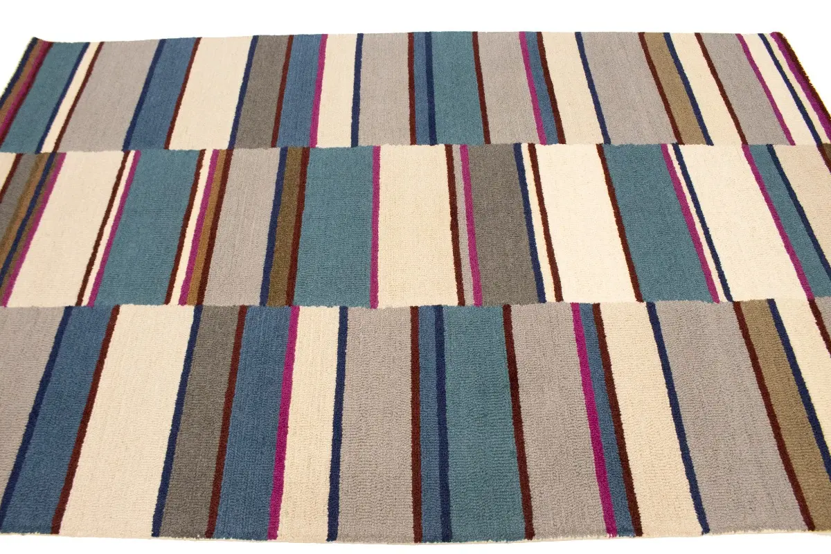 Contemporary Multicolored Stripes 5X8 Hand-Tufted Modern Rug Girls Room Carpet