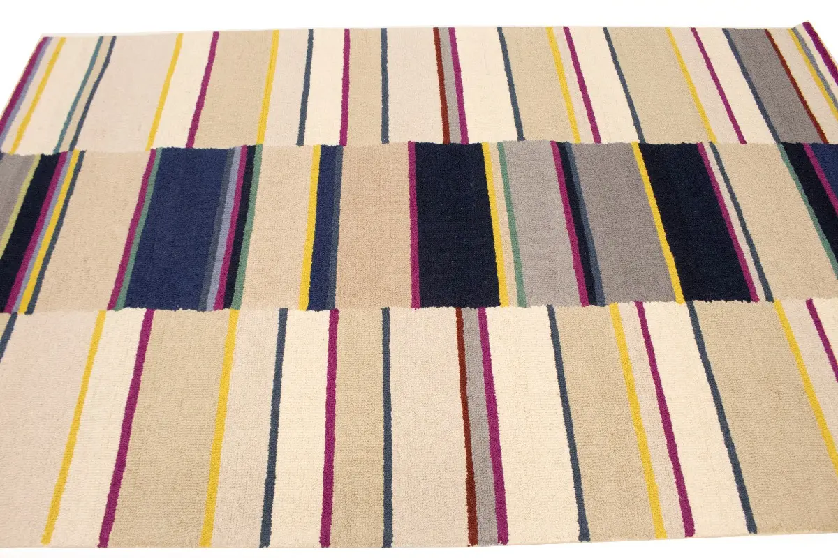 Contemporary Multicolored Stripes 5X8 Hand-Tufted Modern Rug Living Room Carpet