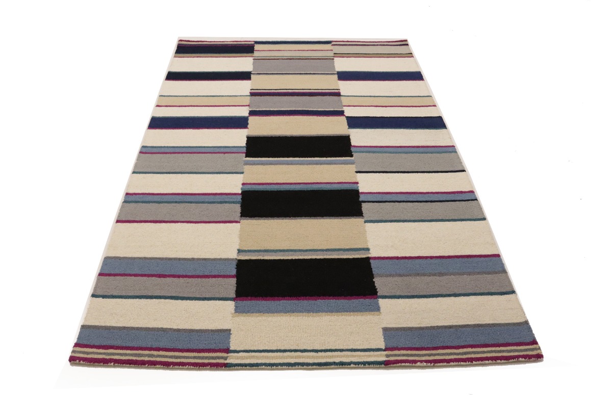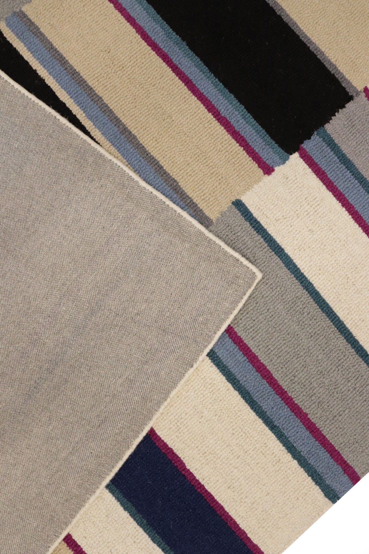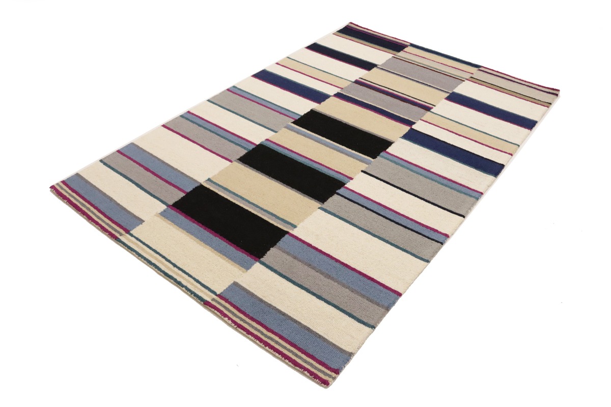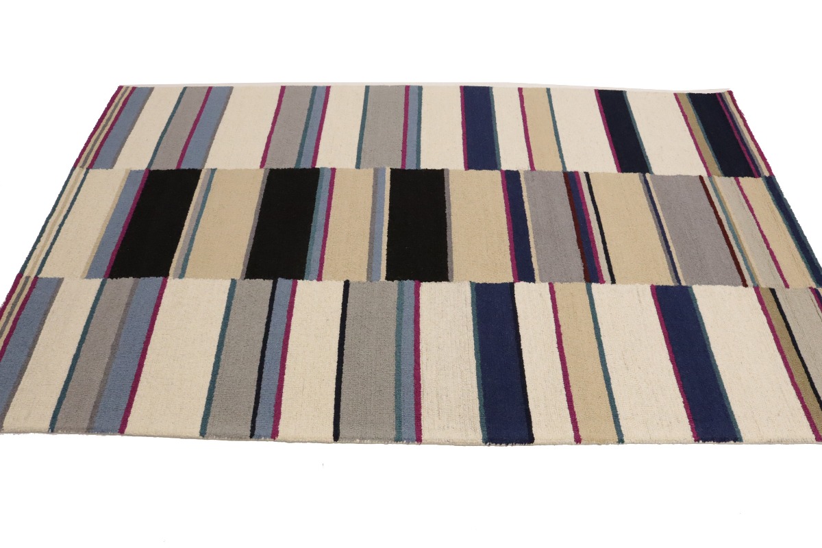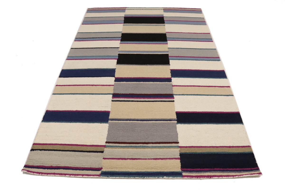 Kids Room Modern Rug Multicolor Stripes 5X8 Hand-Tufted Contemporary Wool Carpet