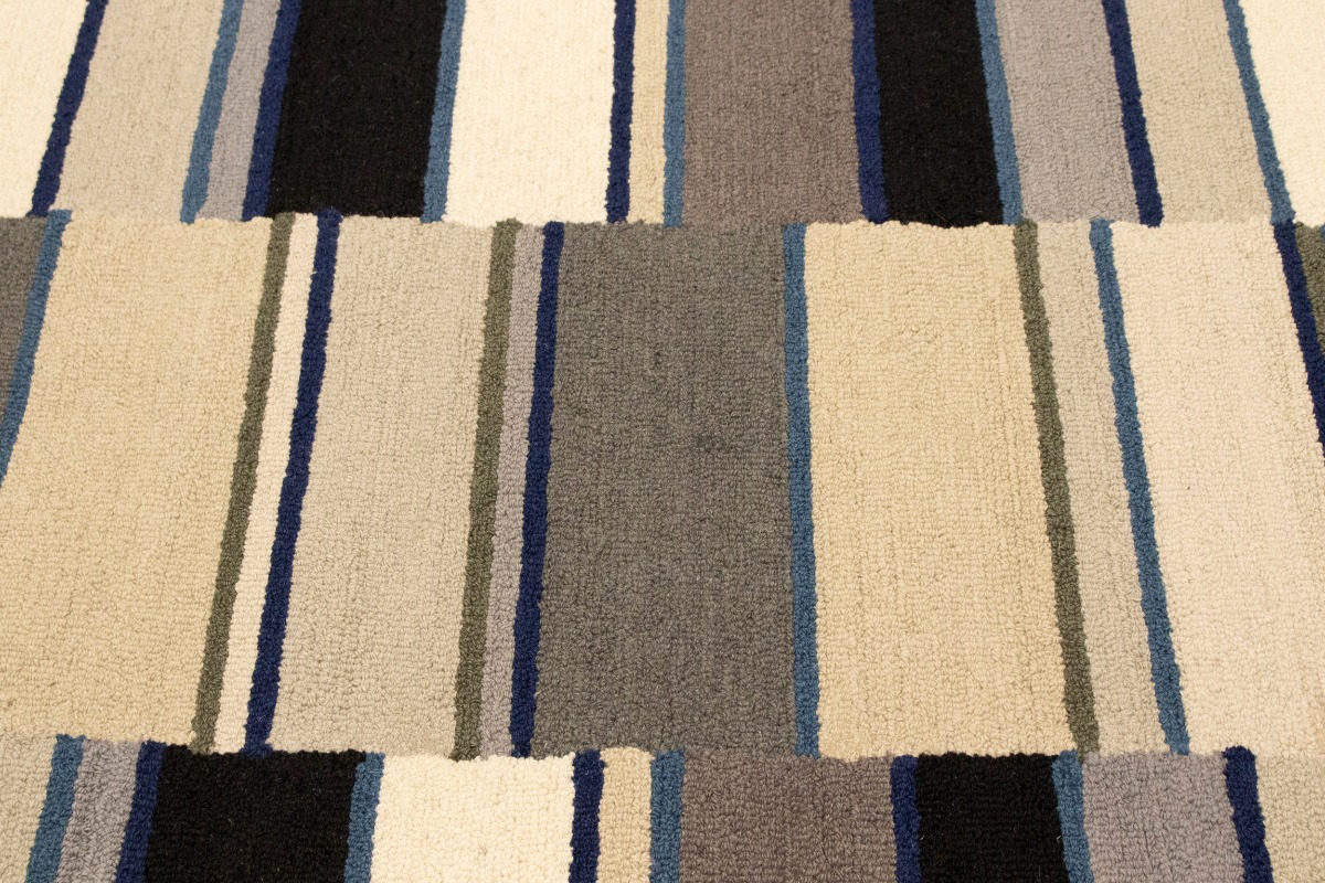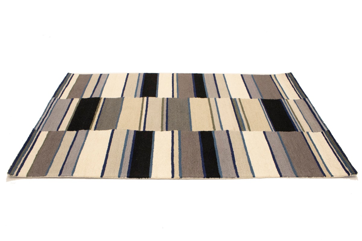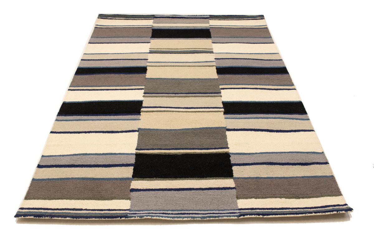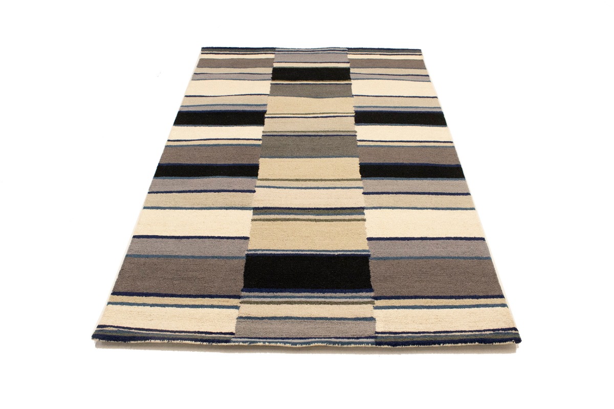 Modern Hand-Tufted Multicolored Stripes 5X8 Area Rug Contemporary Wool Carpet