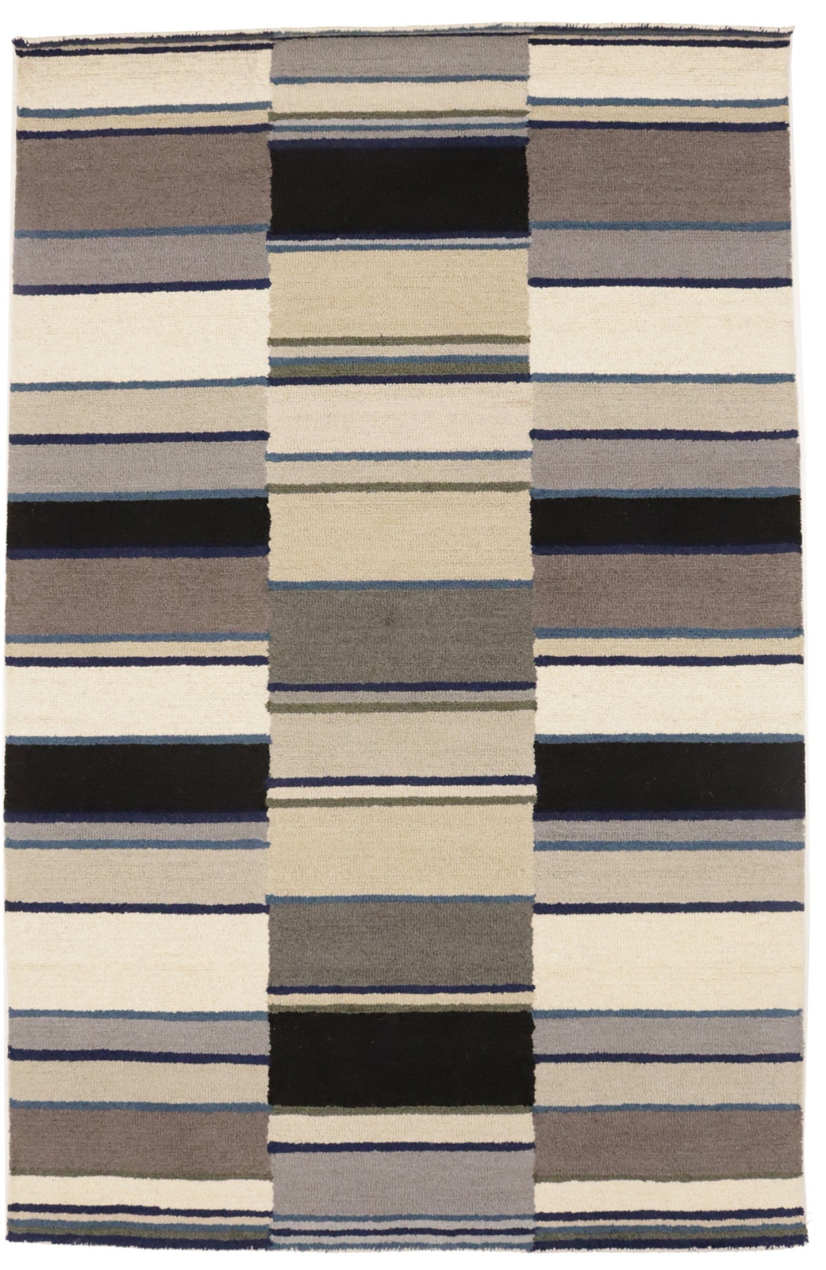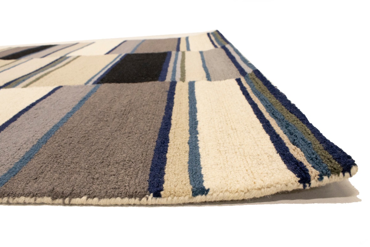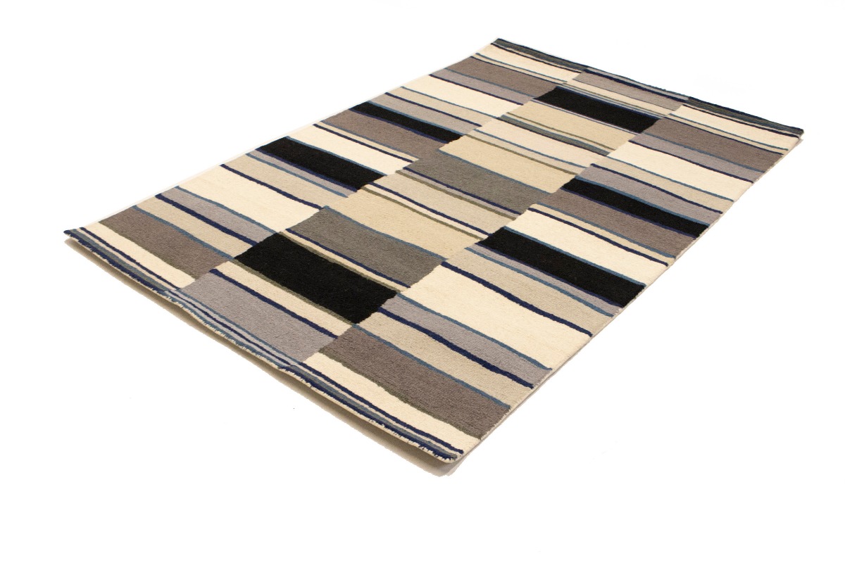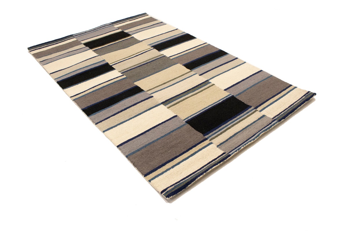 Modern Hand-Tufted Multicolored Stripes 5X8 Area Rug Contemporary Wool Carpet