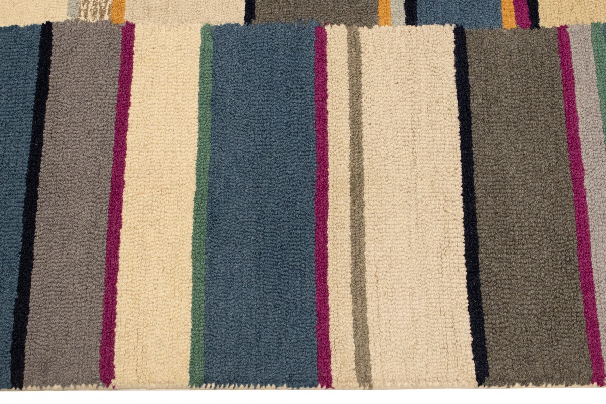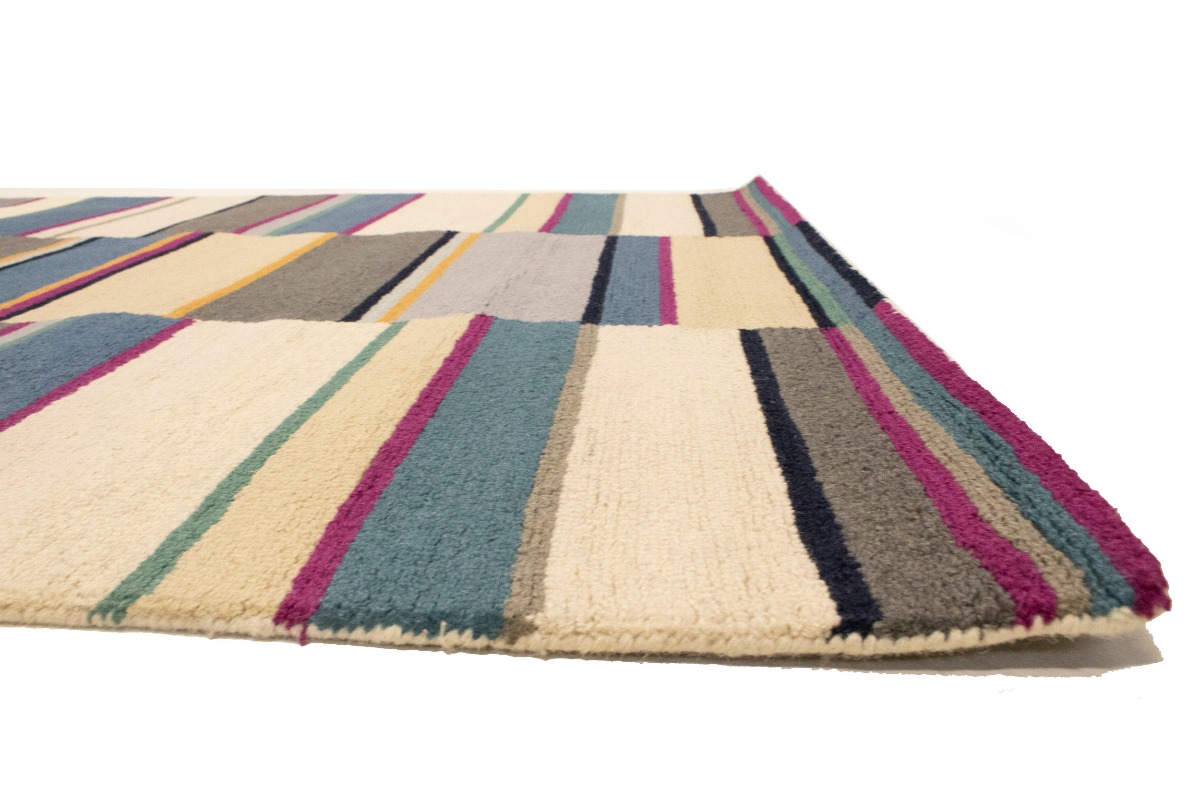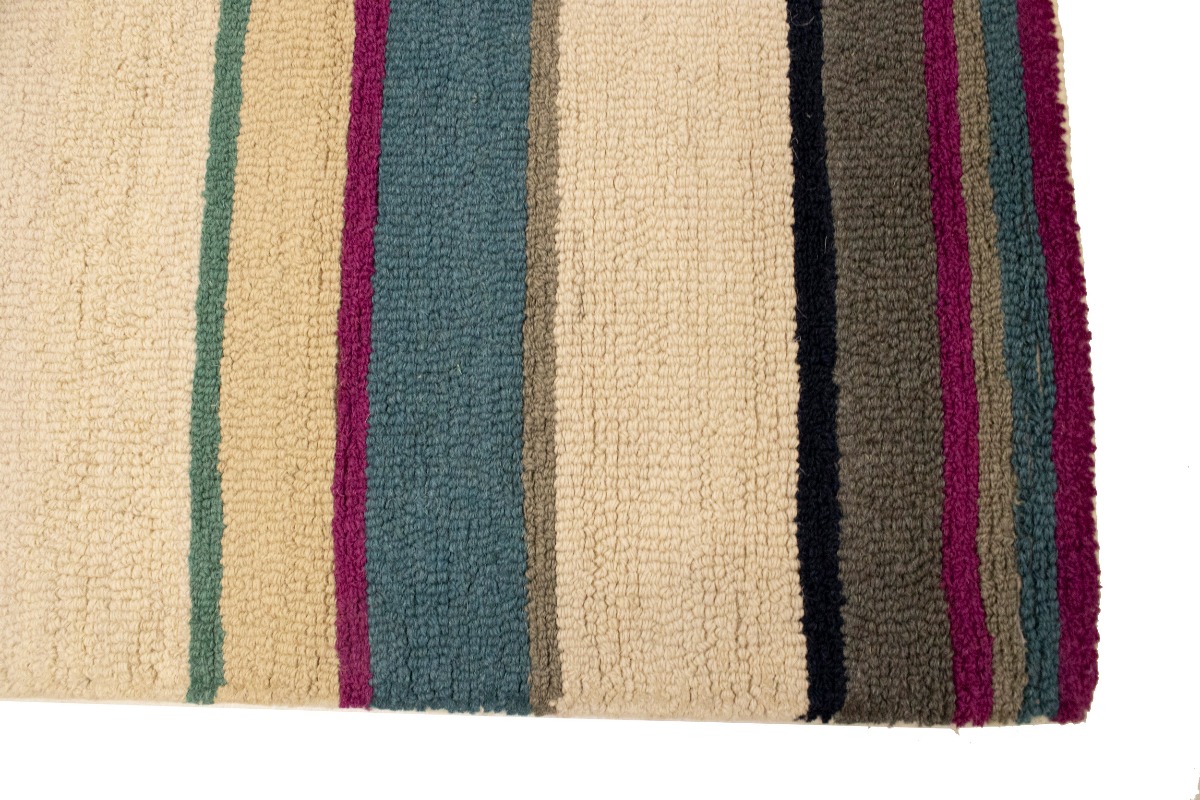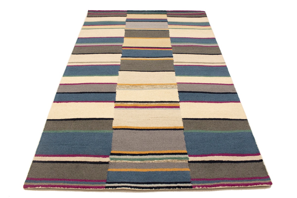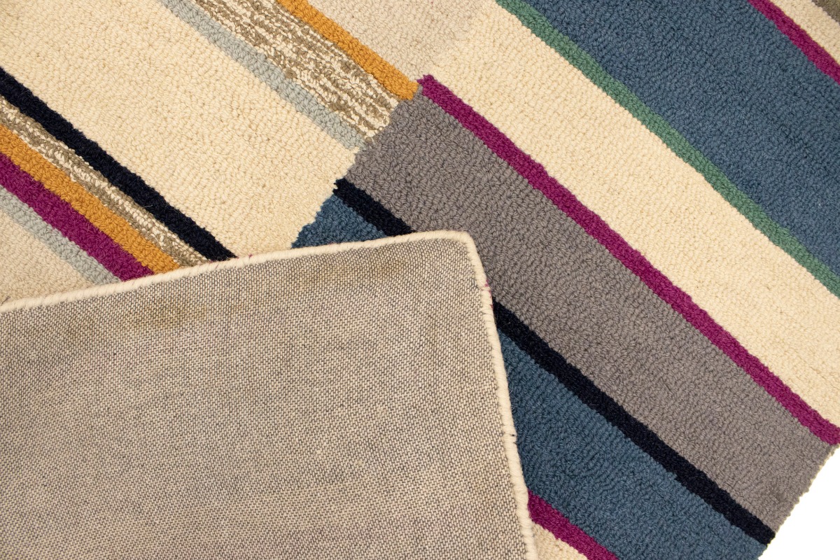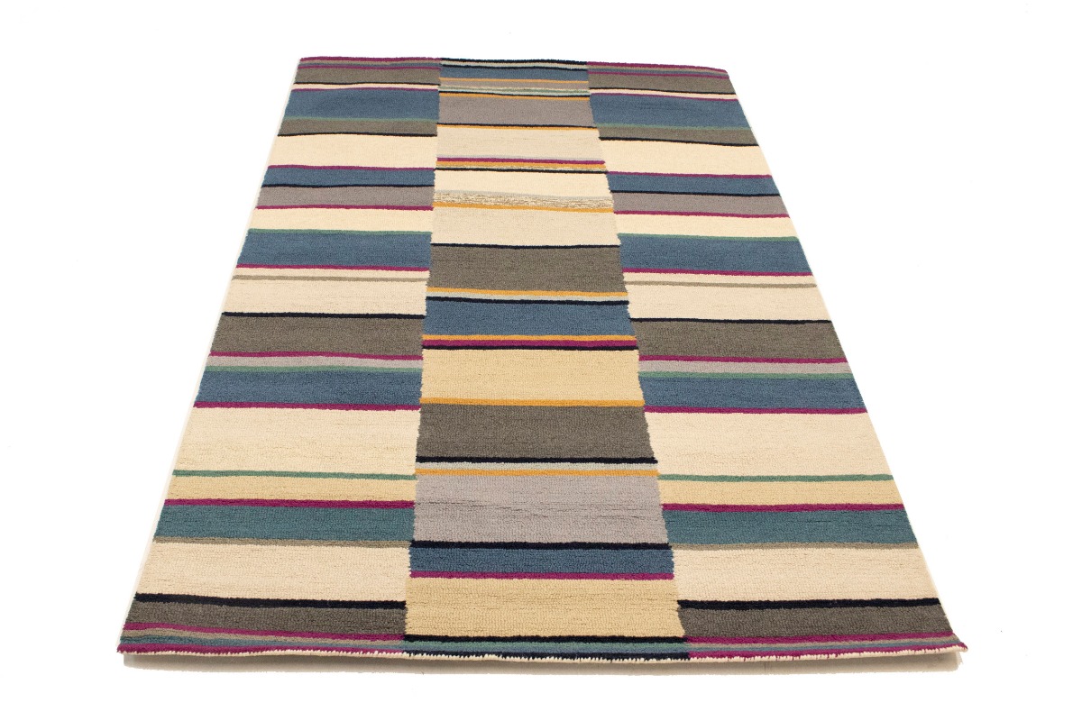 Multicolored Stripes Modern Rug 5X8 Hand-Tufted Contemporary Design Wool Carpet