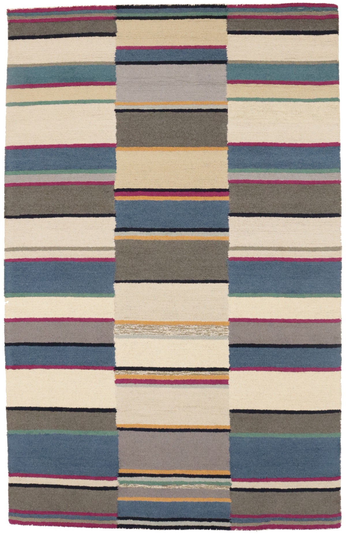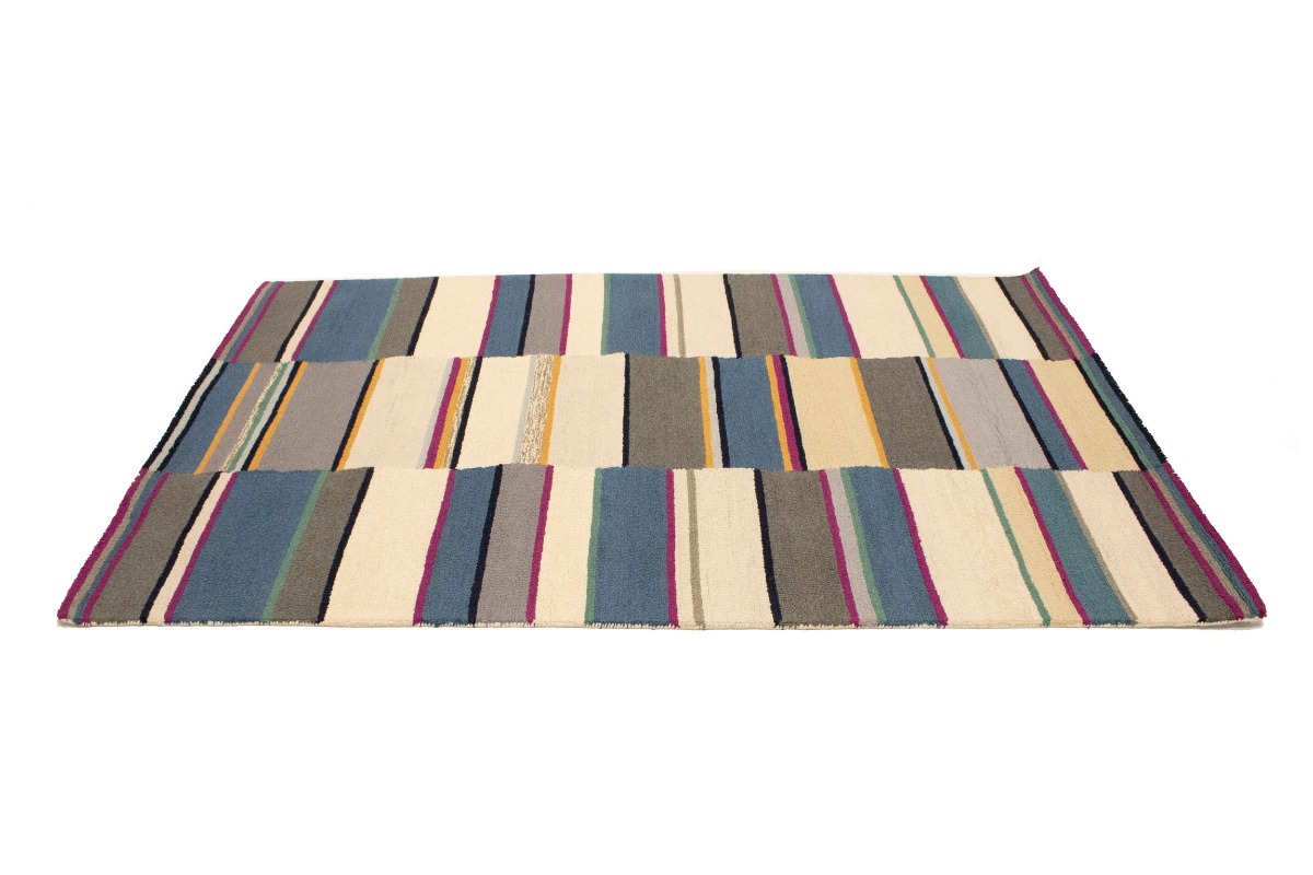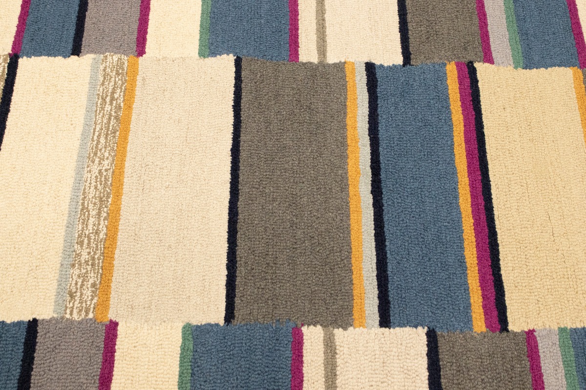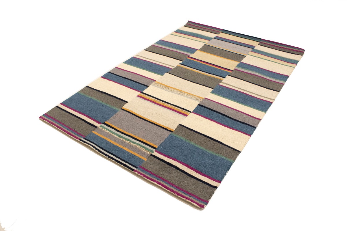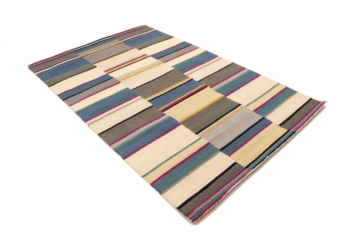 Multicolored Stripes Modern Rug 5X8 Hand-Tufted Contemporary Design Wool Carpet