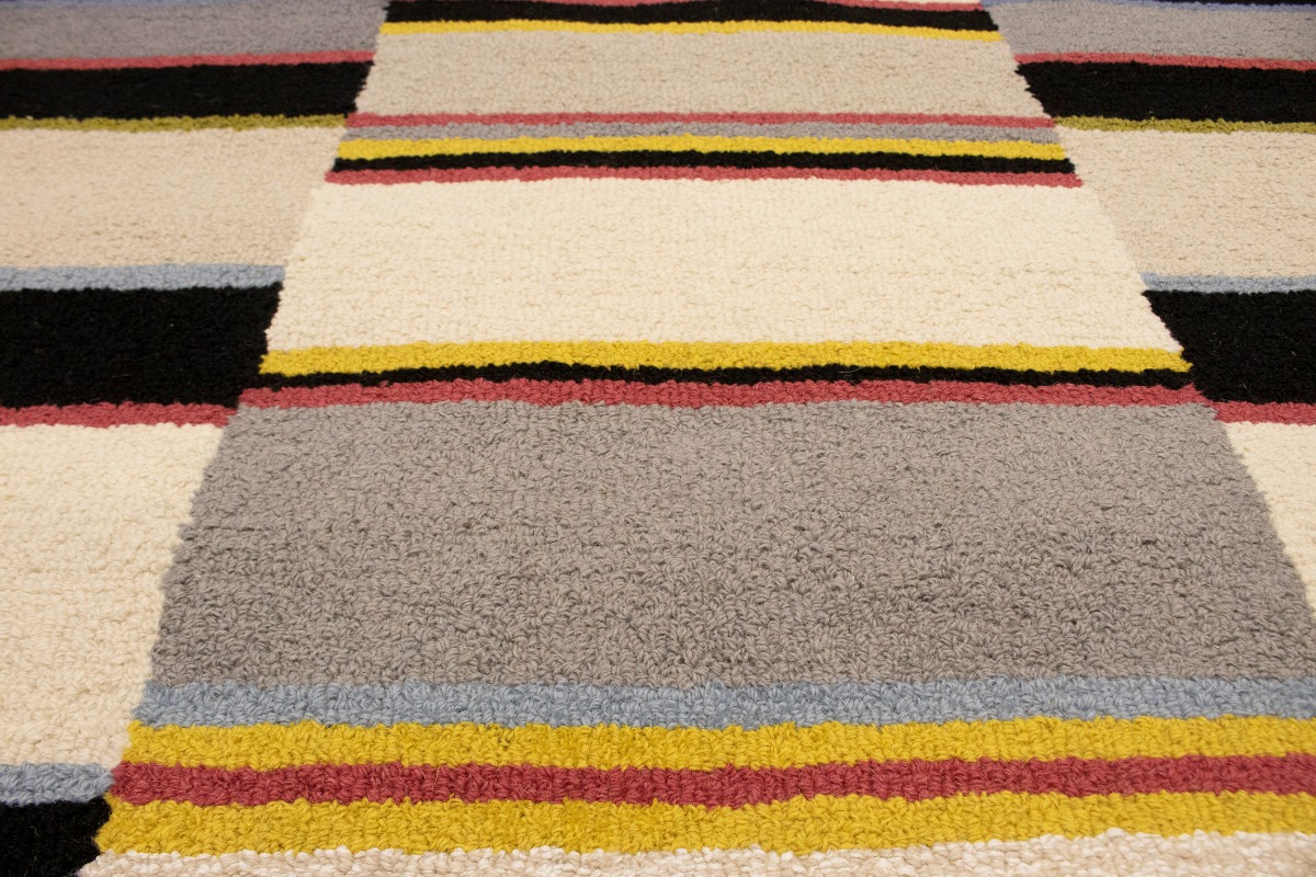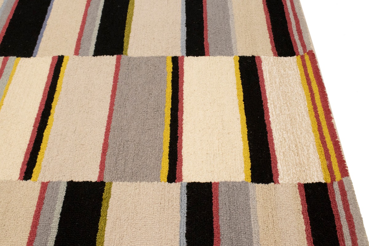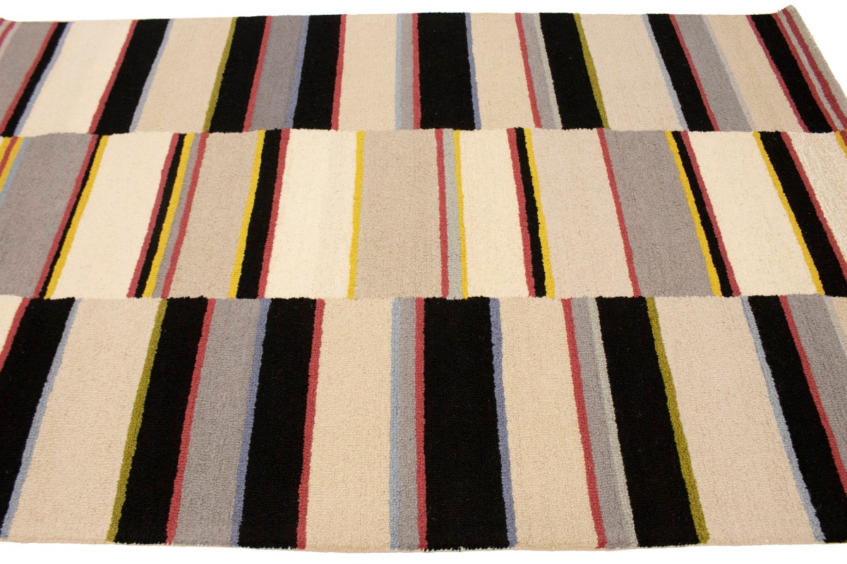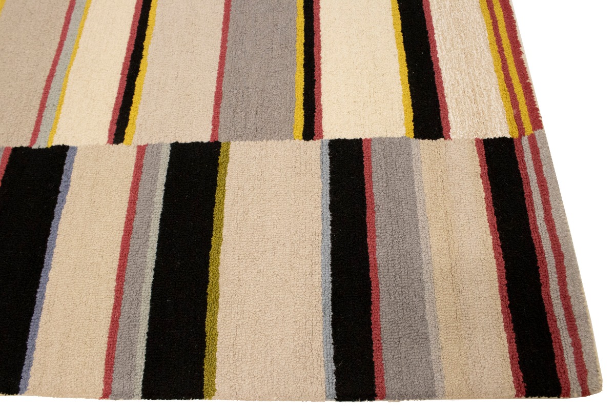Hand-Tufted Modern Rug 5X8 Multicolored Stripes Design Kids Room Plush Carpet
