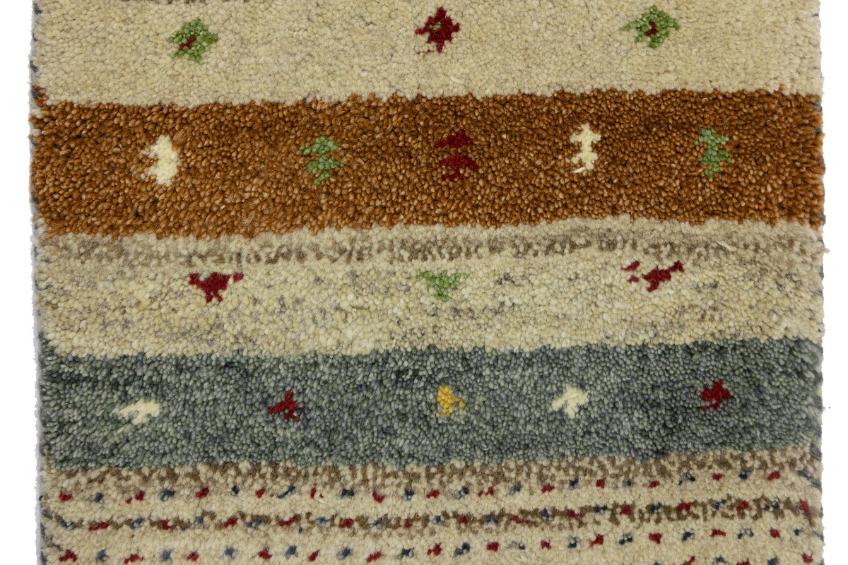 Multicolored Stripes Tribal 1'4X4 Indo-Gabbeh Oriental Rug