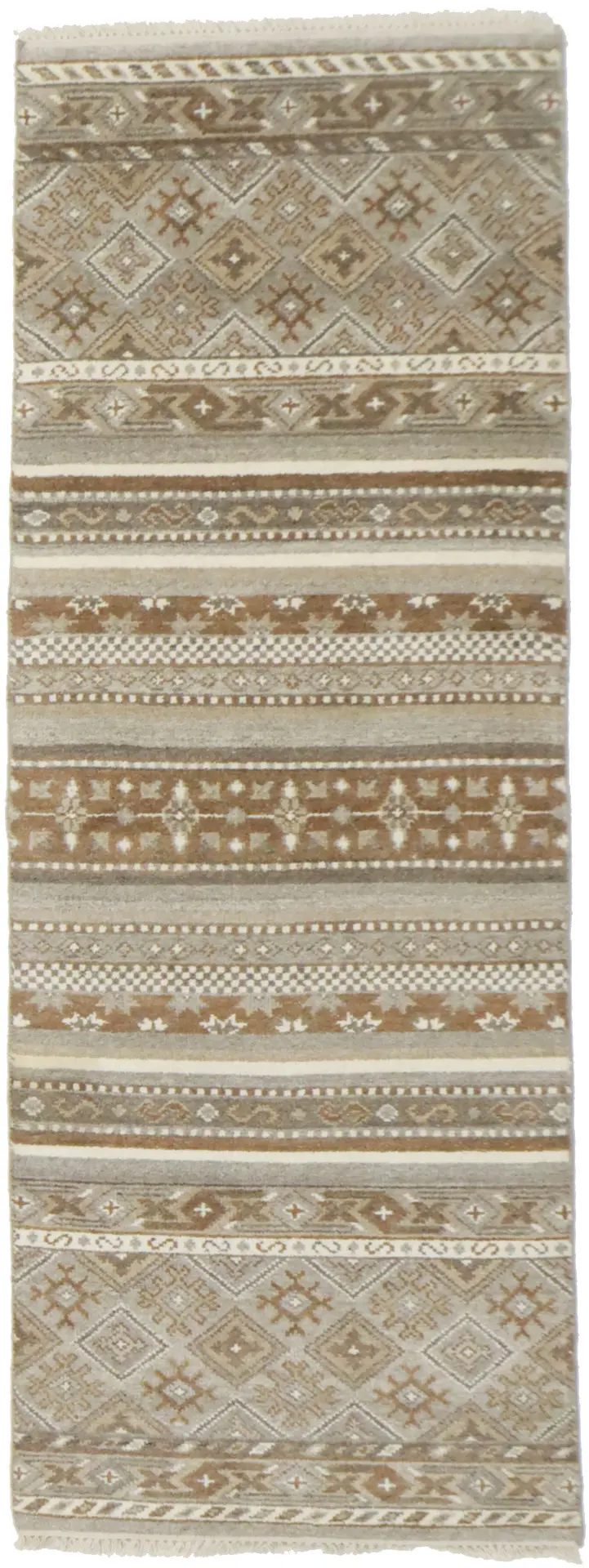 Multicolored Stripes Tribal 2'5X6'8 Modern Oriental Runner Rug