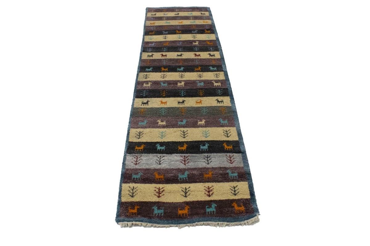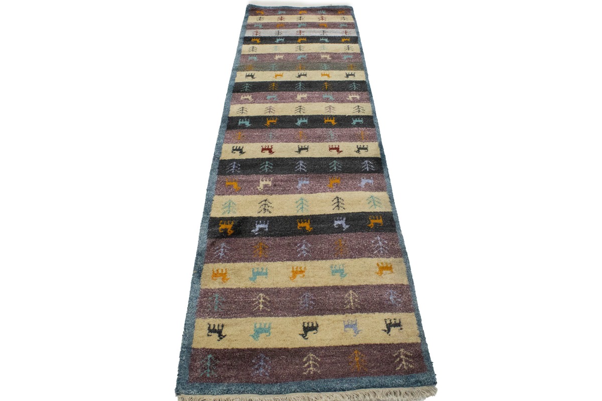 Multicolored Stripes Tribal 3X10 Indo-Gabbeh Oriental Runner Rug