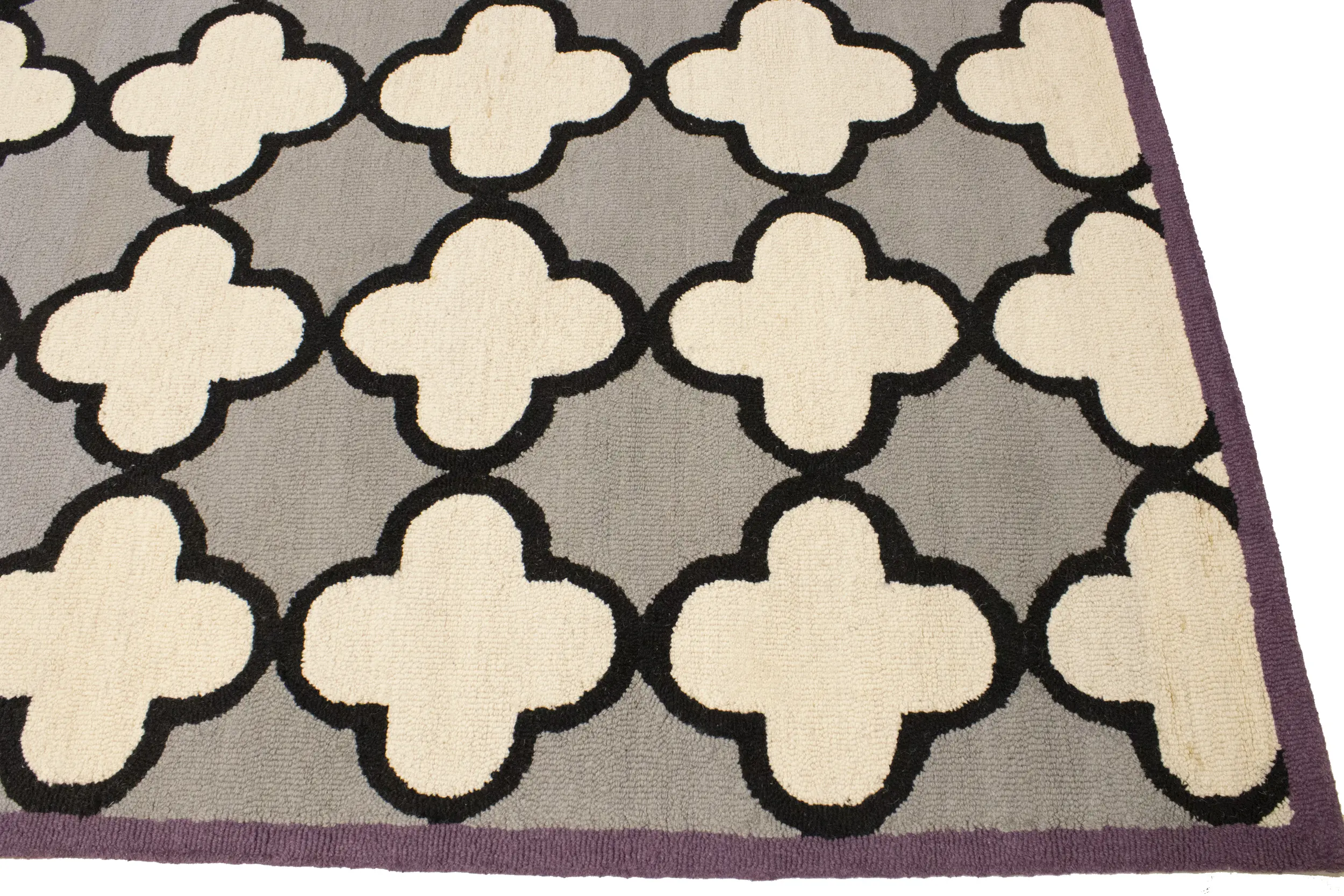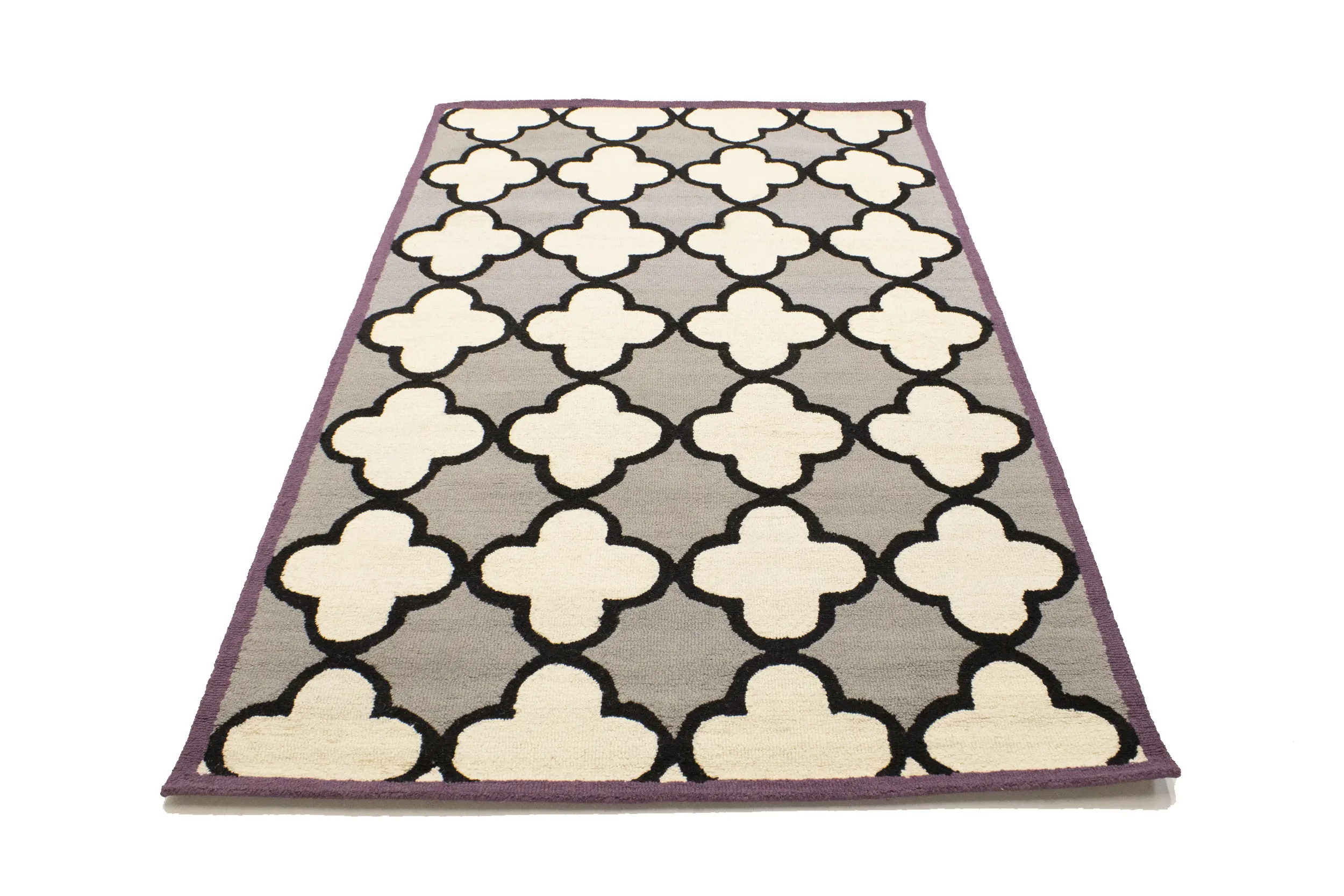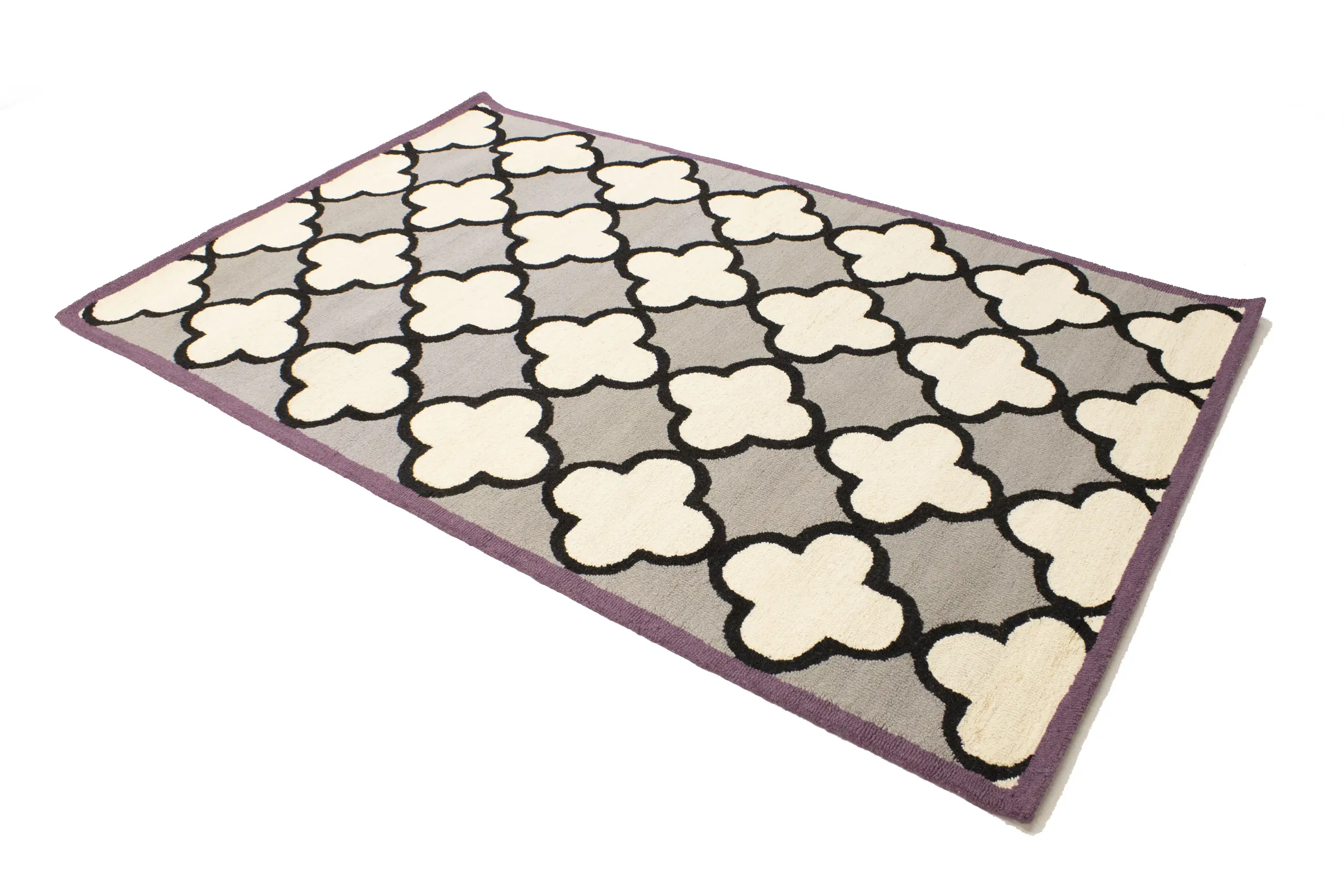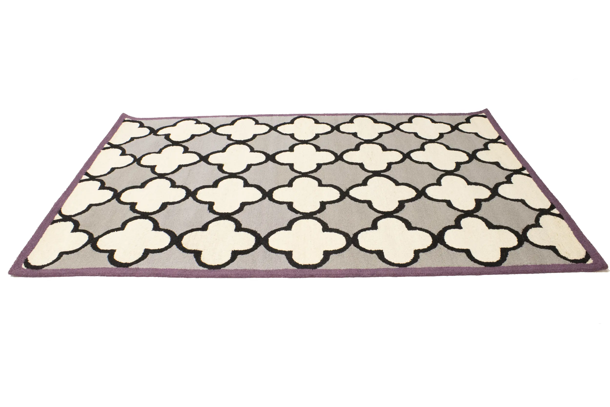 Multicolored Trellis Design Wool 5X8 Hand-Tufted Modern Rug Girls Bedroom Carpet