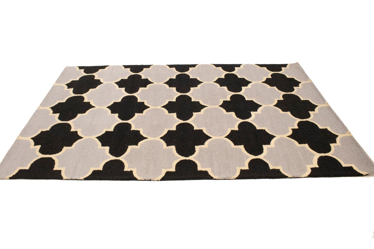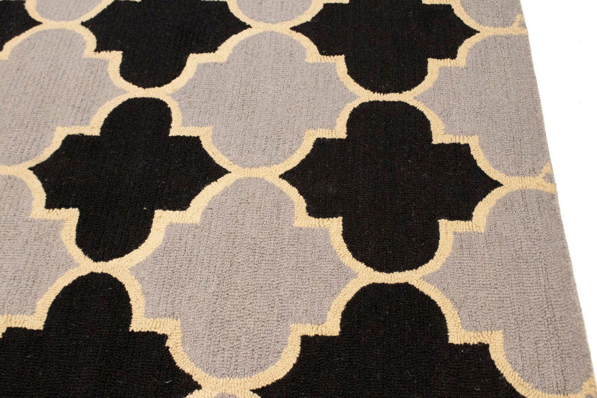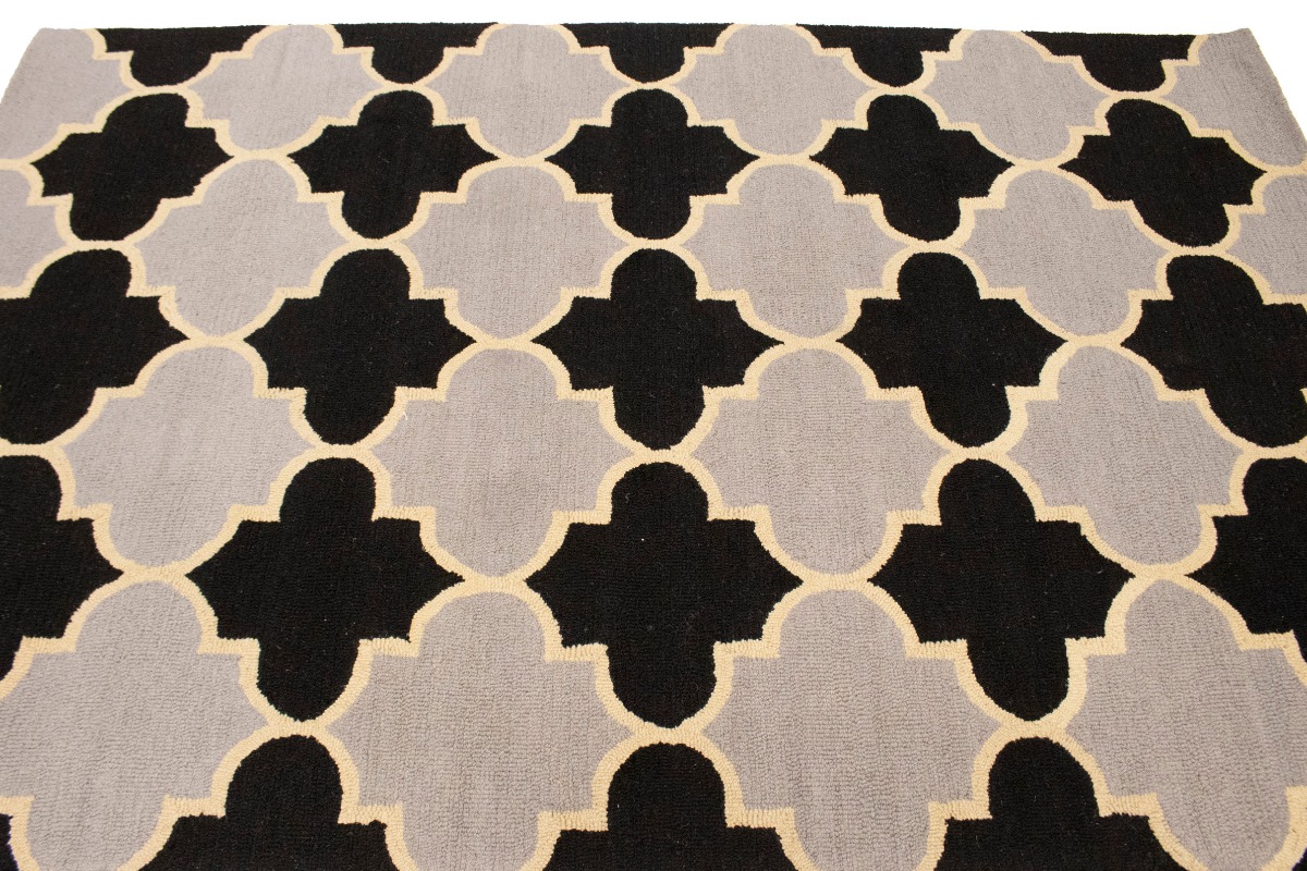 Multicolored Hand-Tufted Black 5X8 Trellis Design Modern Rug Home Decor Carpet