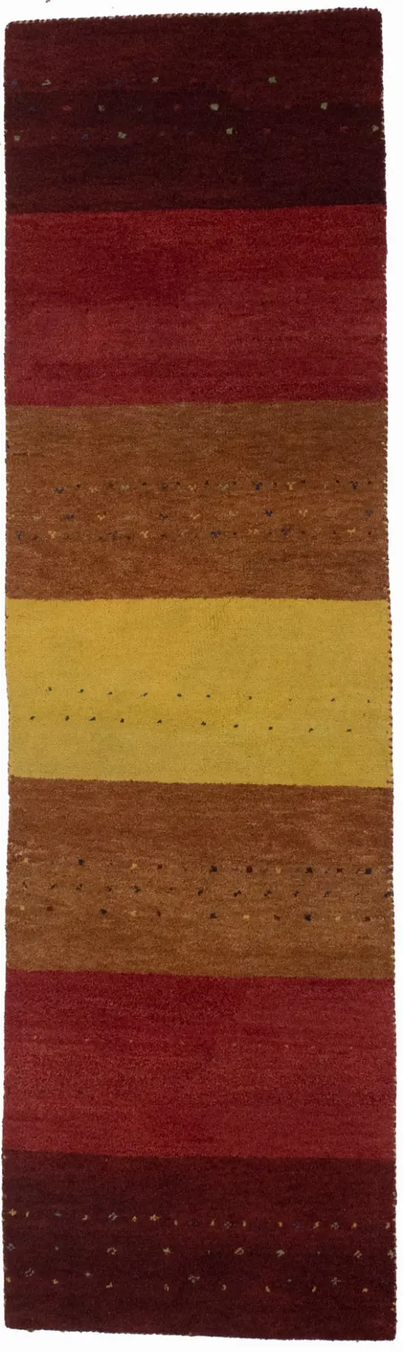 This genuine 2'5X8'4 gold new Oriental runner was made by the hands of gifted weavers inspired by a variety of spectacular artistic designs, to recreate the aged look of the original piece with a richness of color and ornately patterned background field. What set this vintage style Oriental area runner from the others are the material and dye used (wool pile and cotton foundation), knot count, ancient designs, fantastic grades, and its regional historical connection: it has deep roots, from the story of the people who produced it to the meaning of the symbols and colors displayed across its canvas that have been praised for centuries. This Indian home décor carpet will be completely cozy and inviting that never will go out of style! Also, this Oriental runner would be among your most valuable treasures, it is a great investment that accrues value over time, and it will last for generations because was woven with high-quality, all-natural wool. Environmentally friendly, opulent yet affordable; this rug/runner will give you a thorough amount of character to help define your living space with elegance and warmth that will capture the eyes and attention of your audience (homeowners, designers, decorators, family and friends). OT-2869