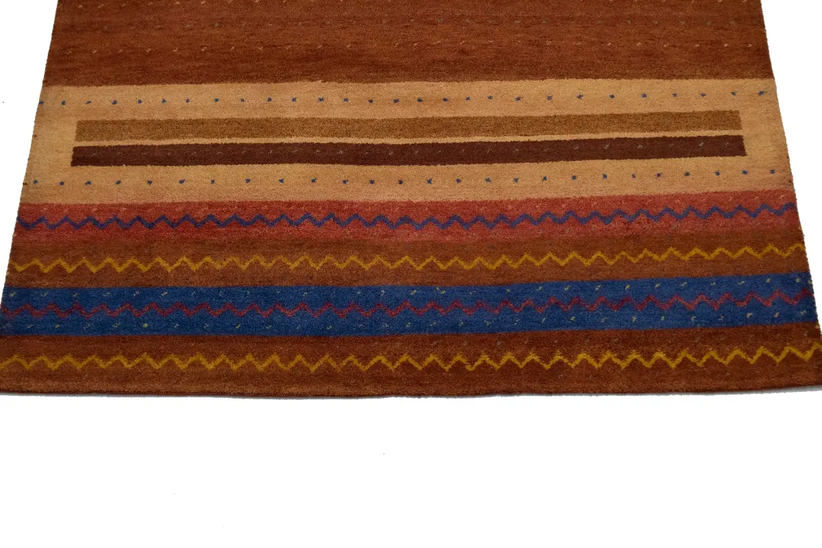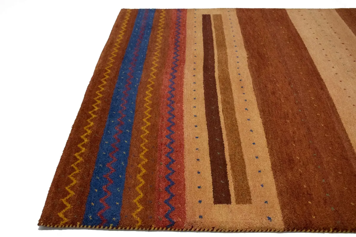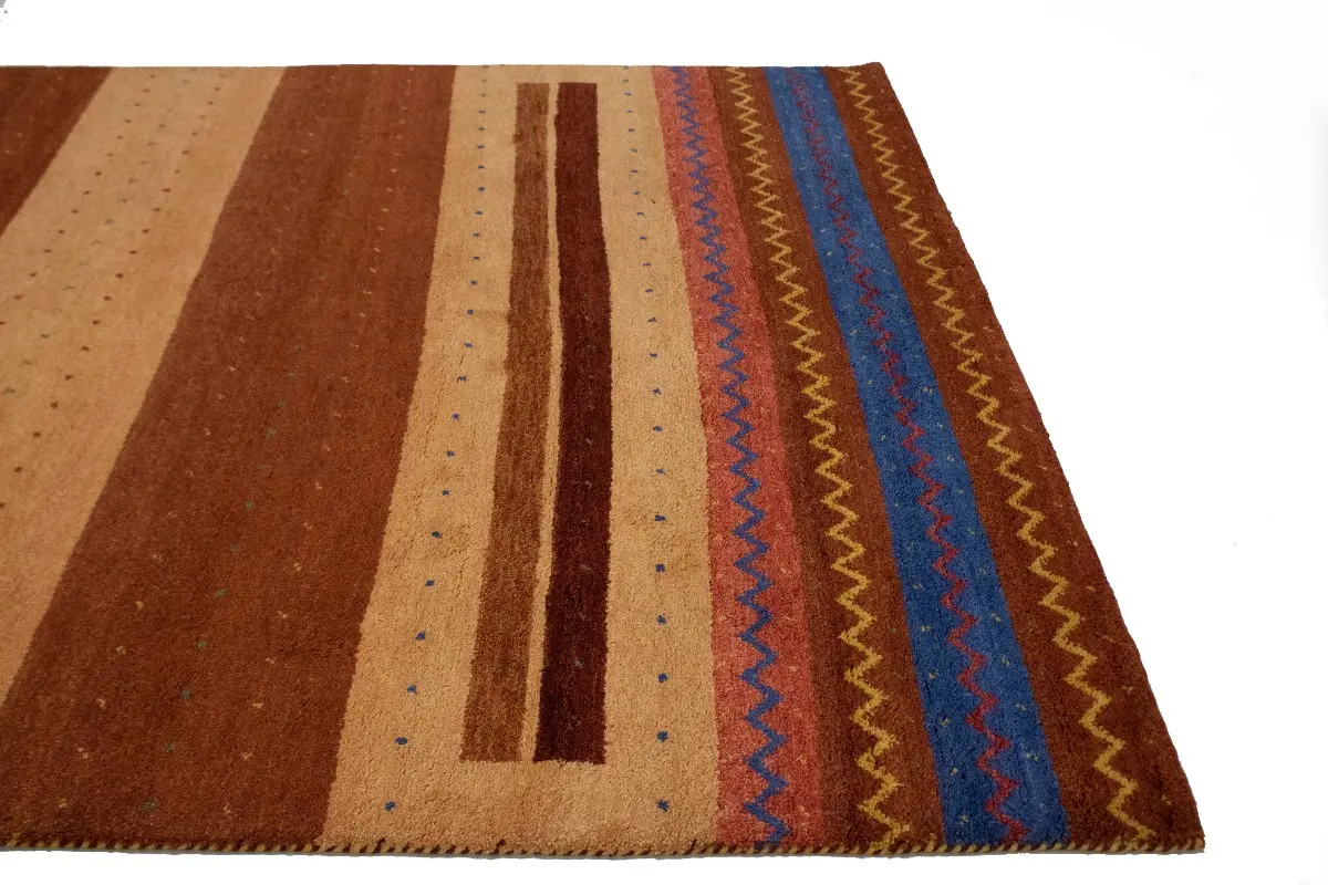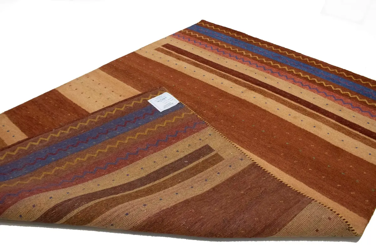 Multicolored Tribal Stripes 7X10 Indo Gabbeh Oriental Rug