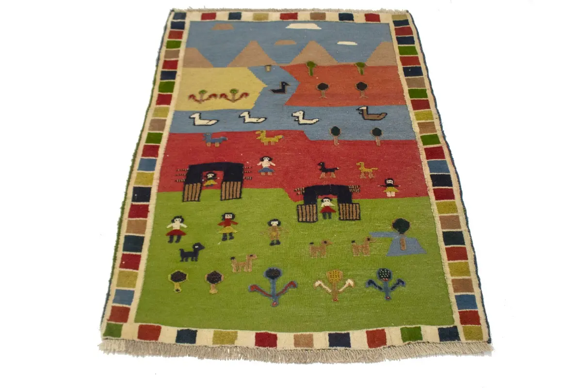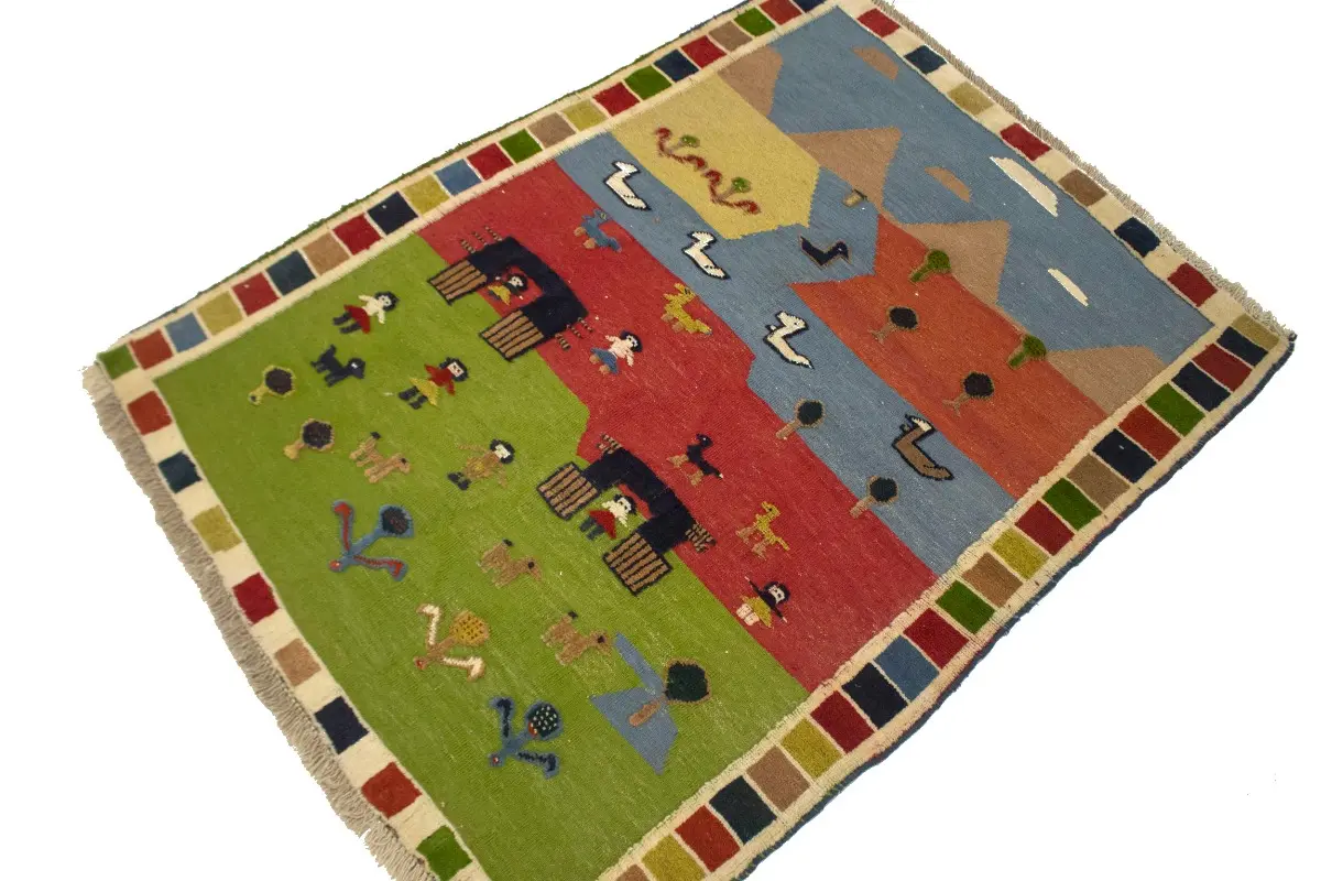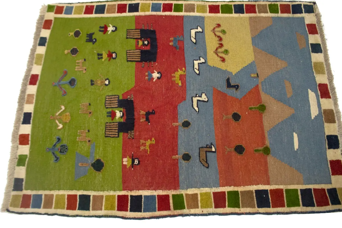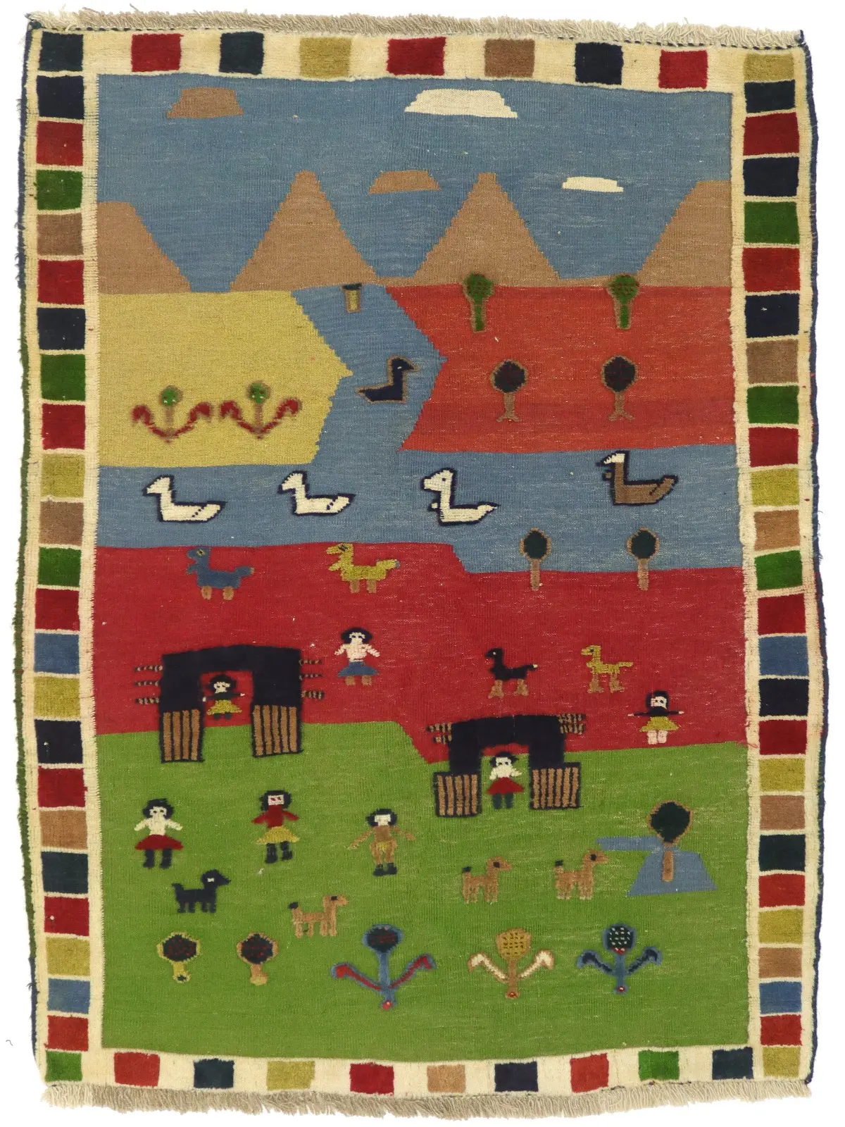 Multicolored Tribal Pictorial 4X5 Shiraz Kilim Persian Rug