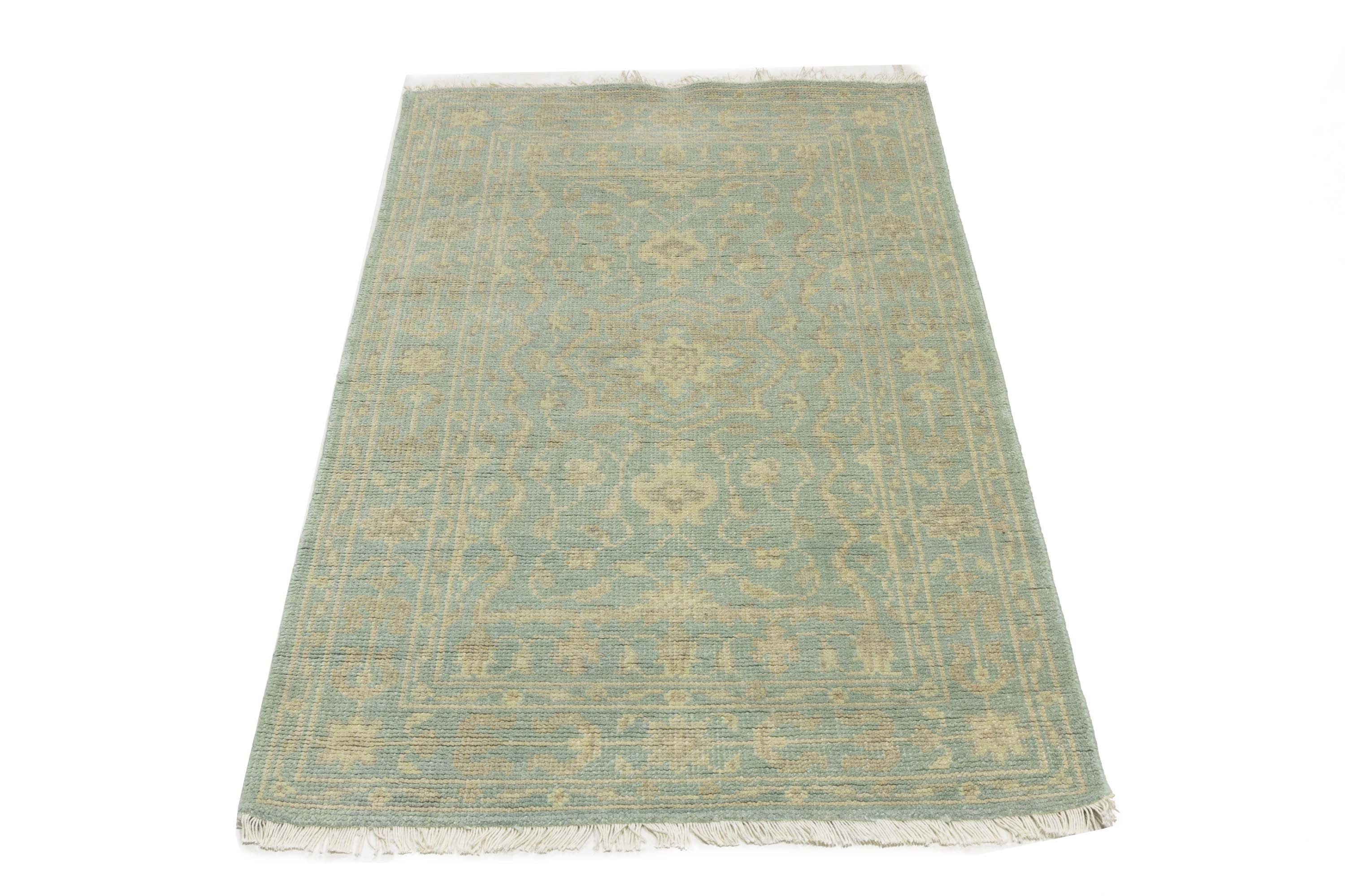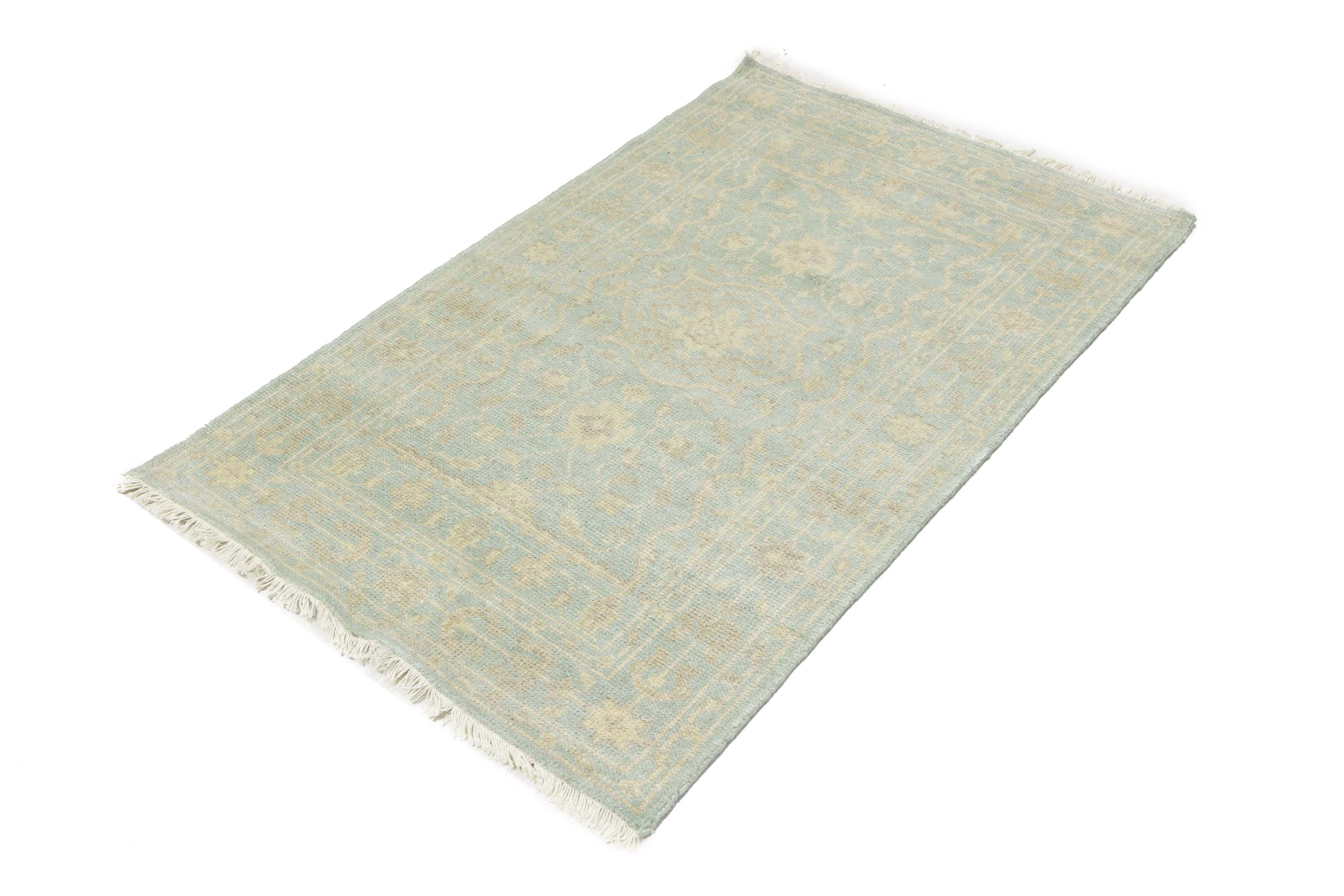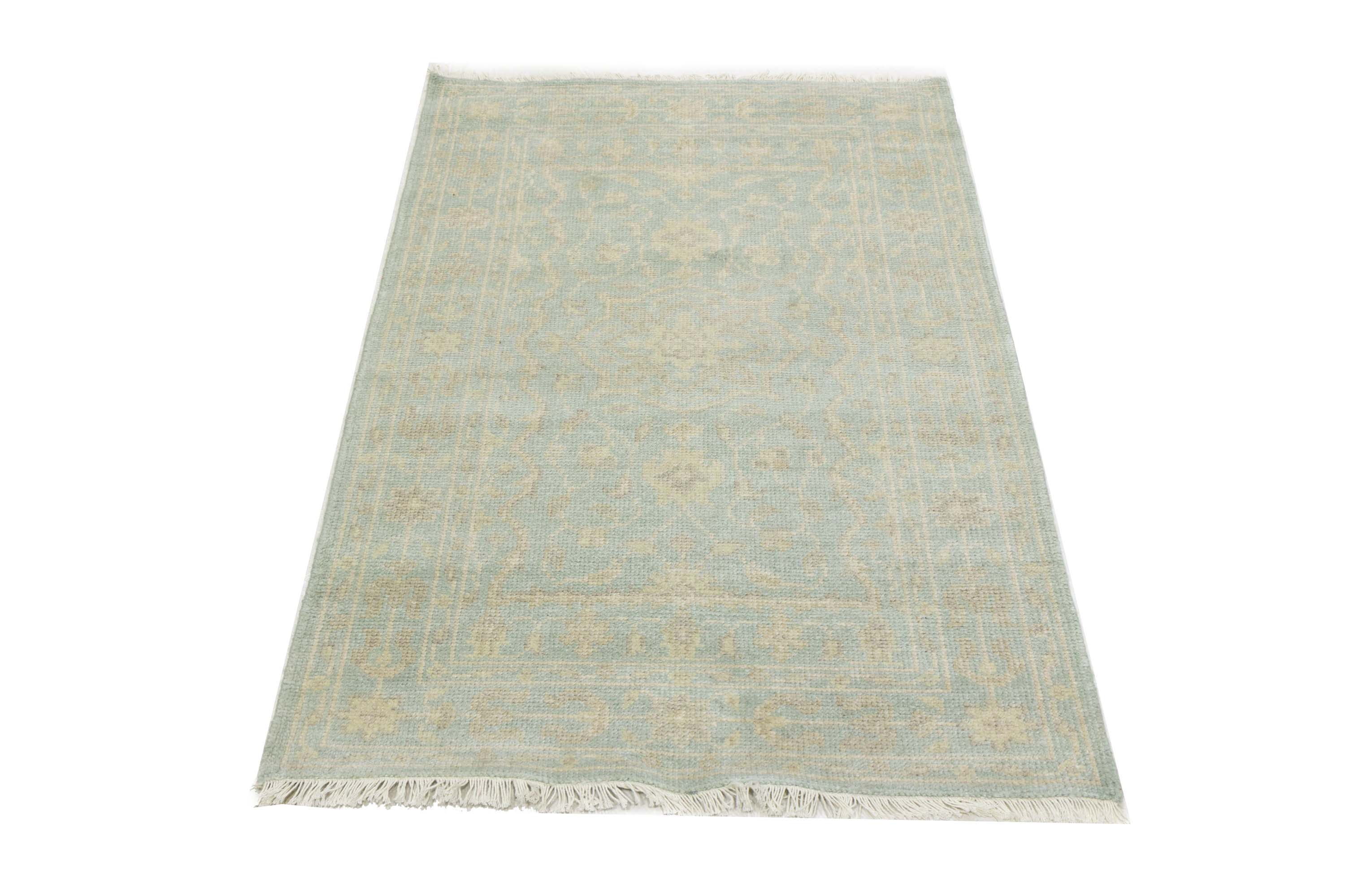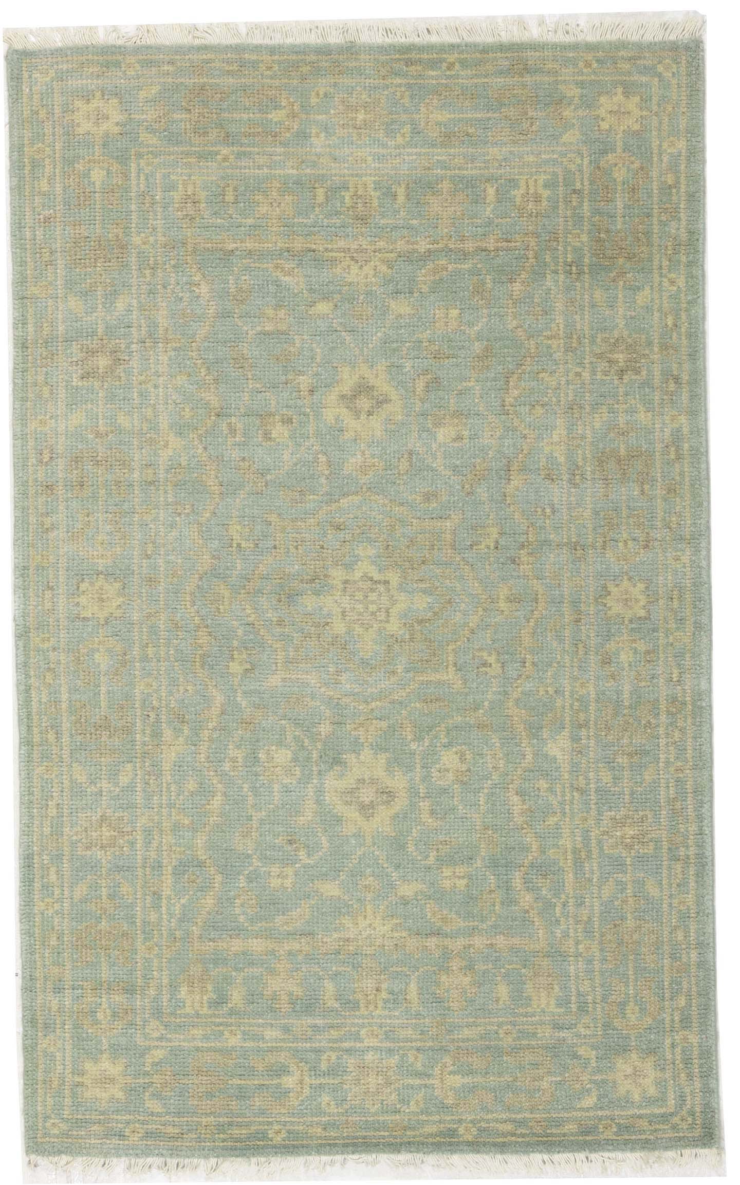 Muted Aqua Blue Floral 3X5 Transitional Oriental Rug
