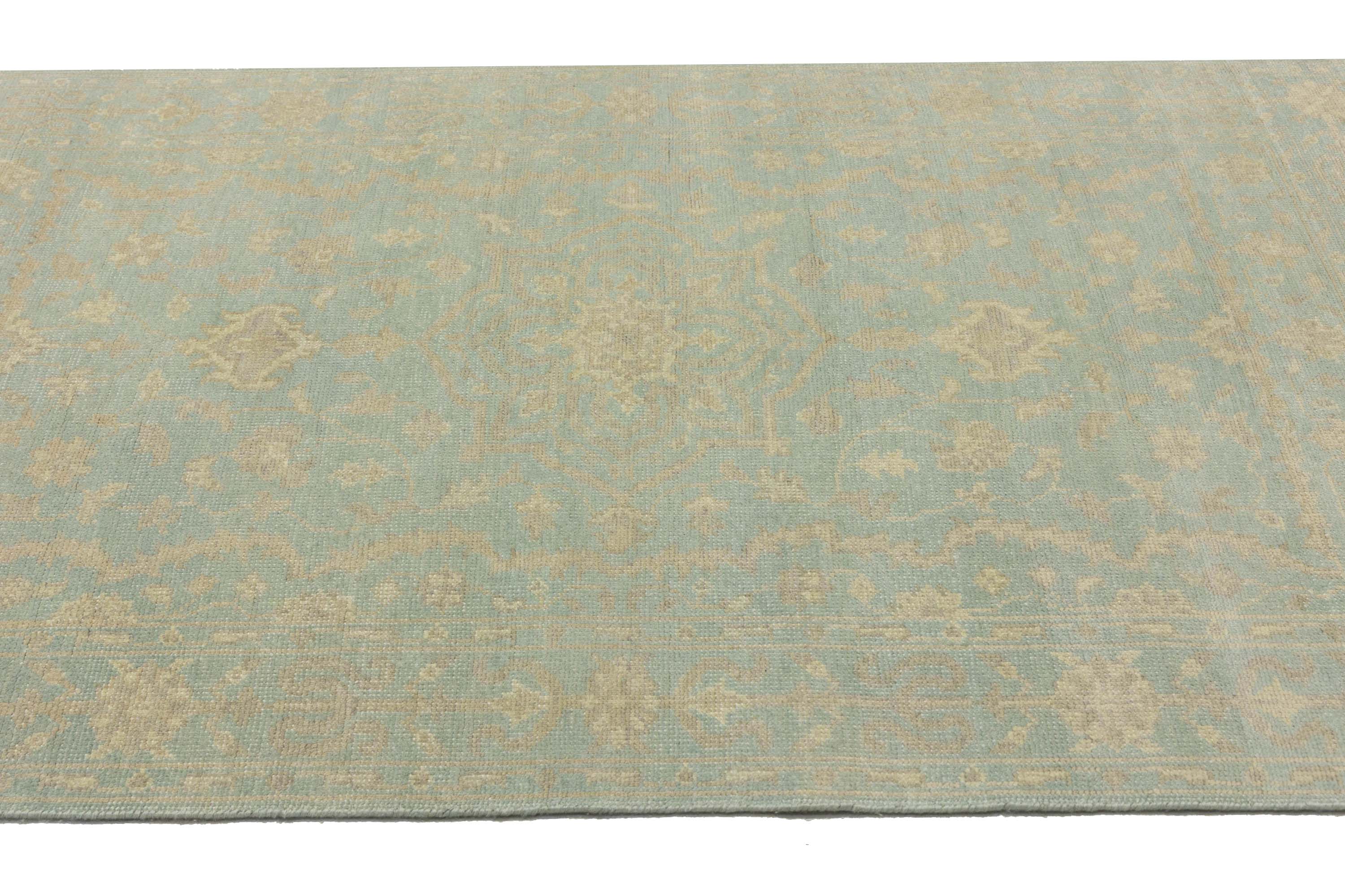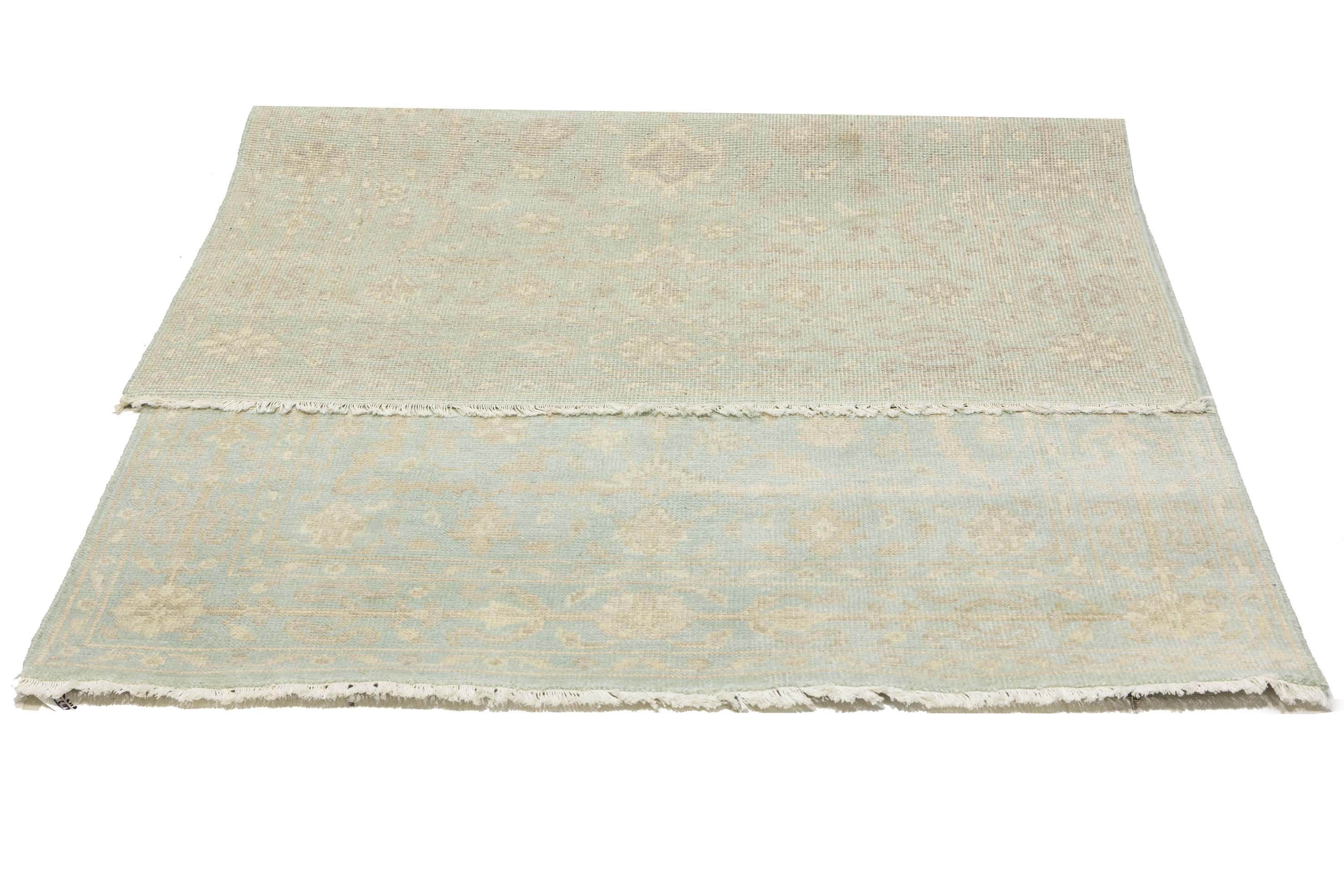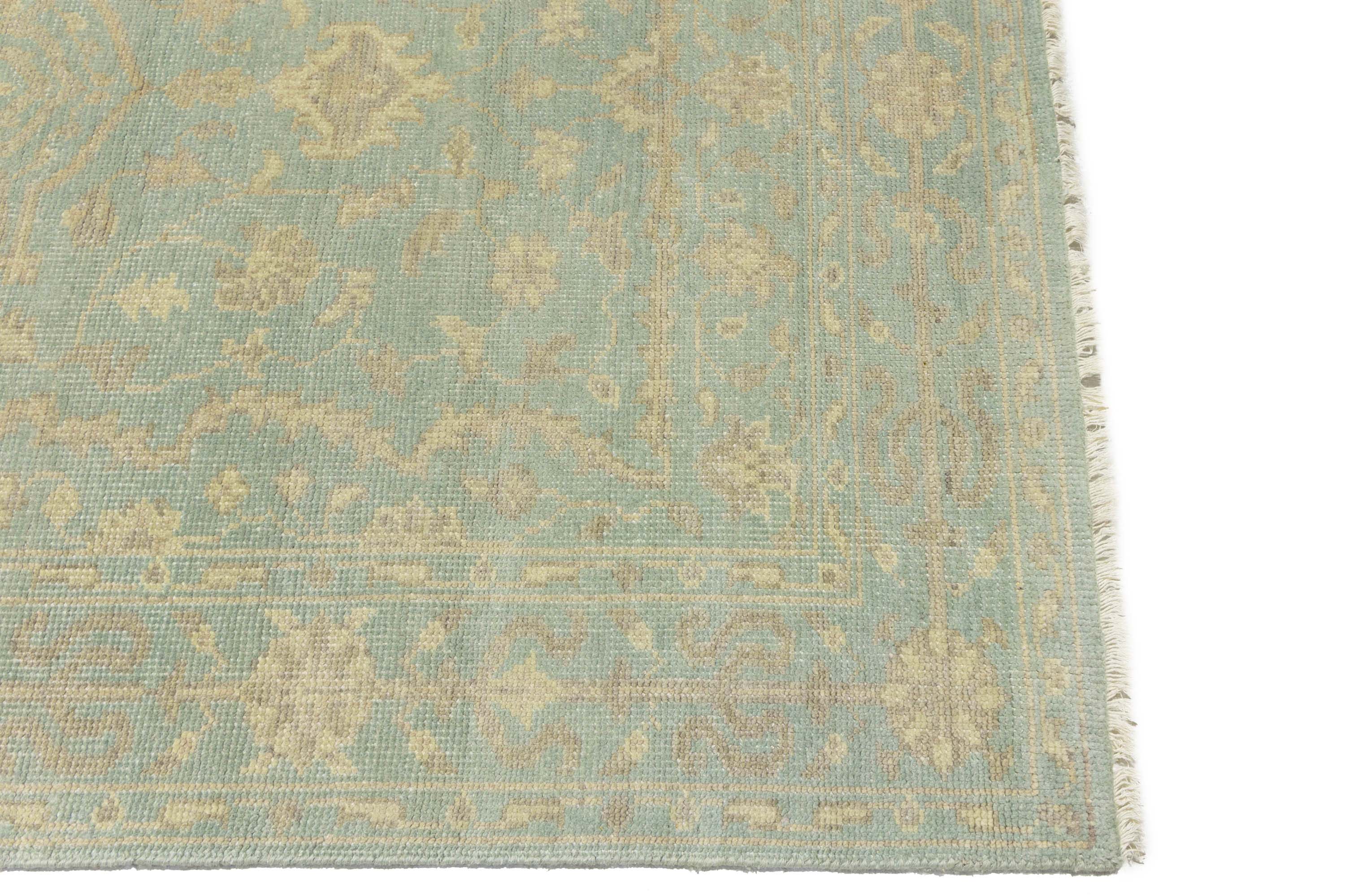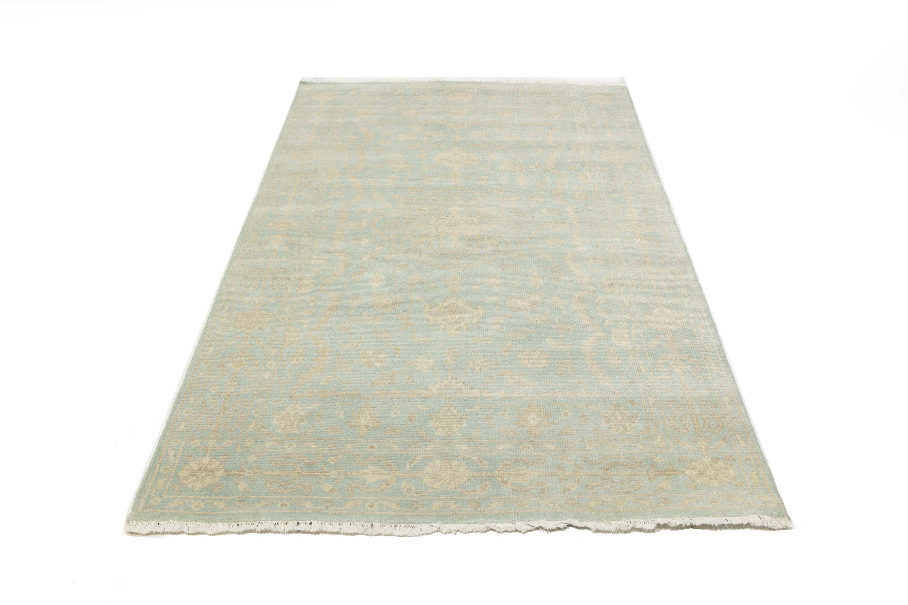 Muted Aqua Blue Floral 5X8 Transitional Oriental Rug