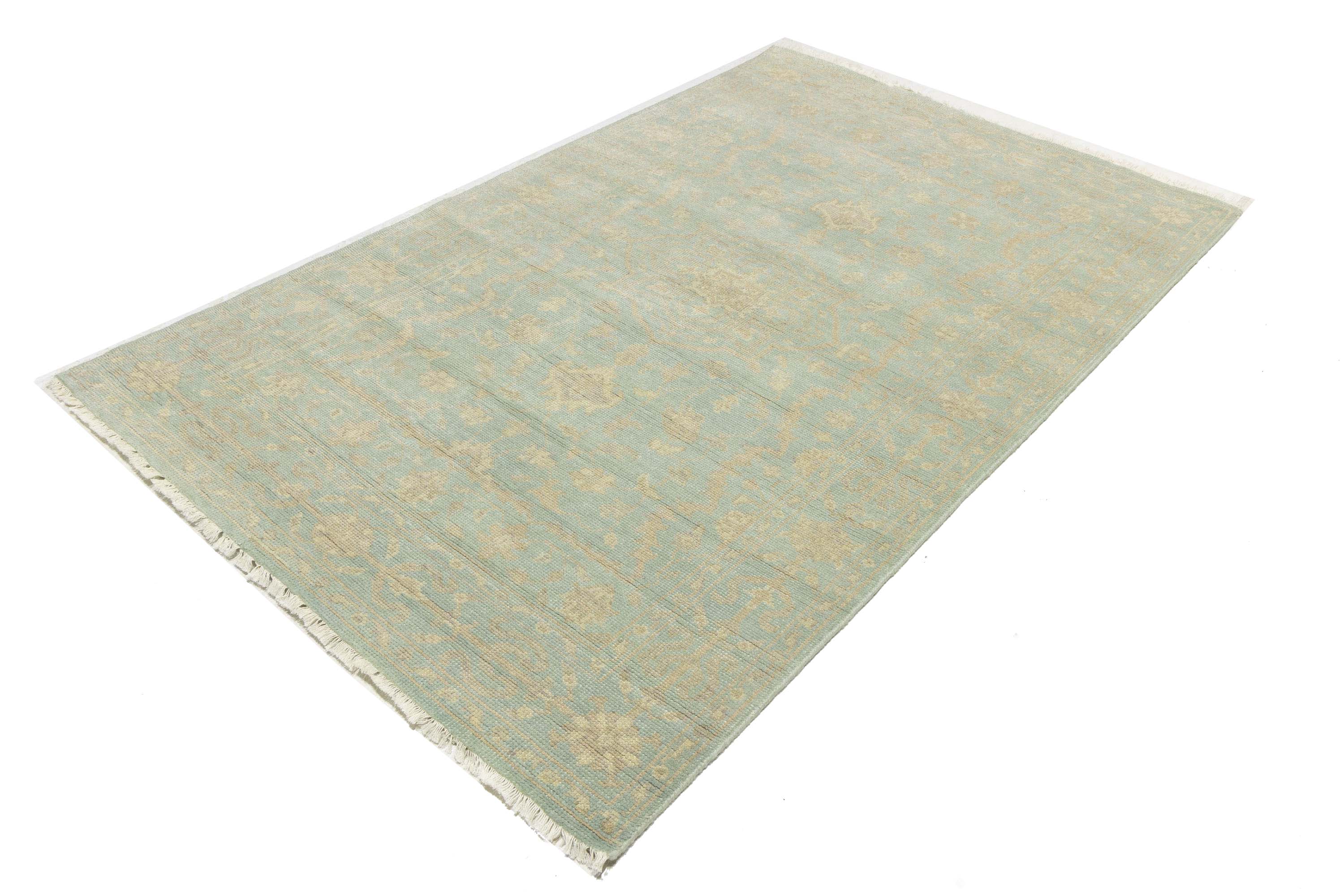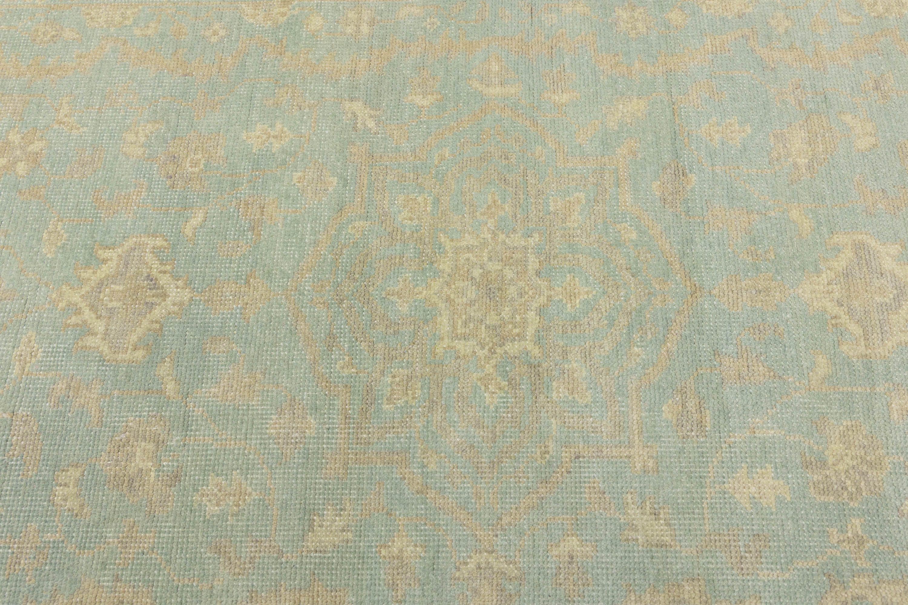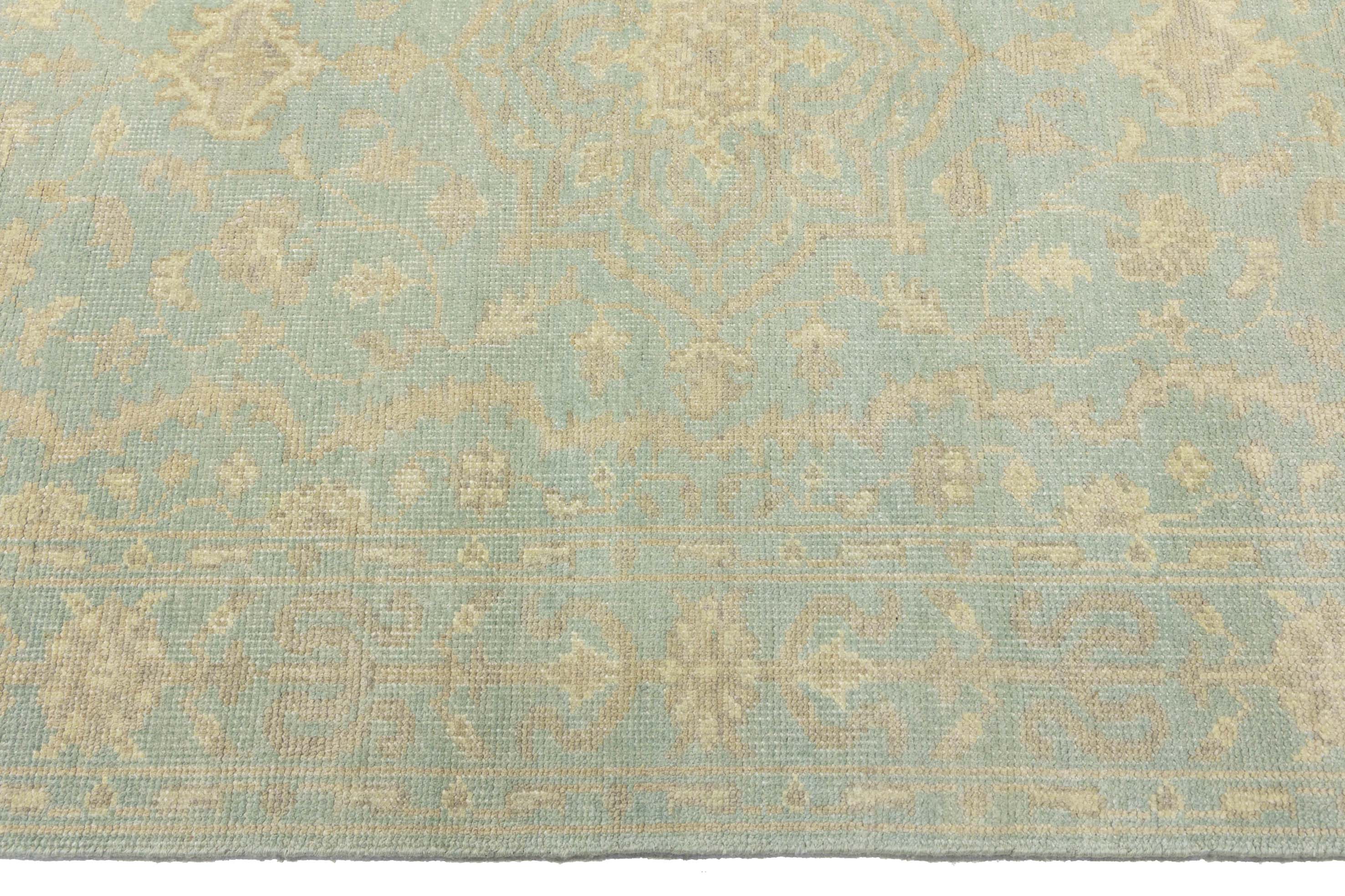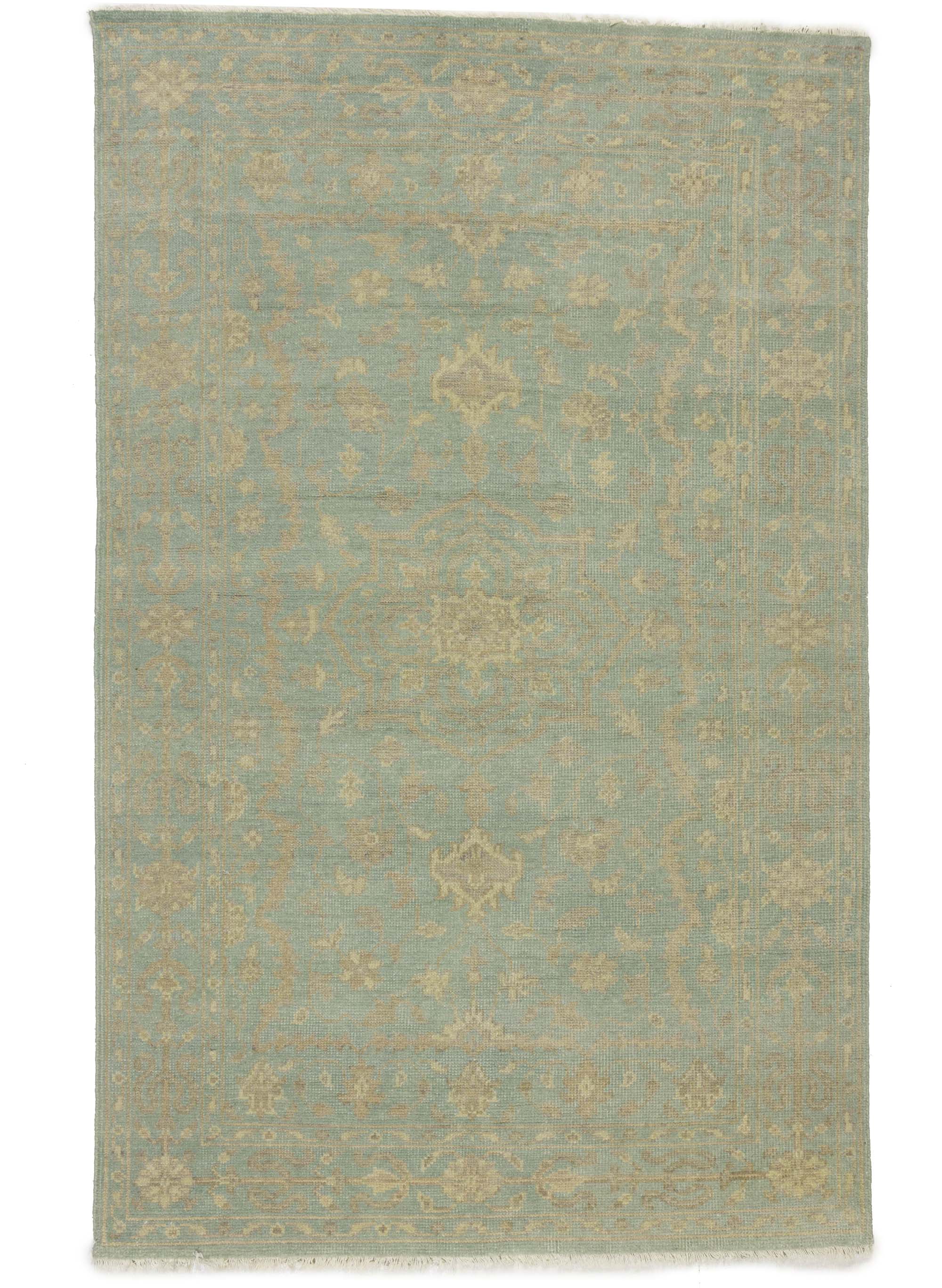 Muted Aqua Blue Floral 5X8 Transitional Oriental Rug