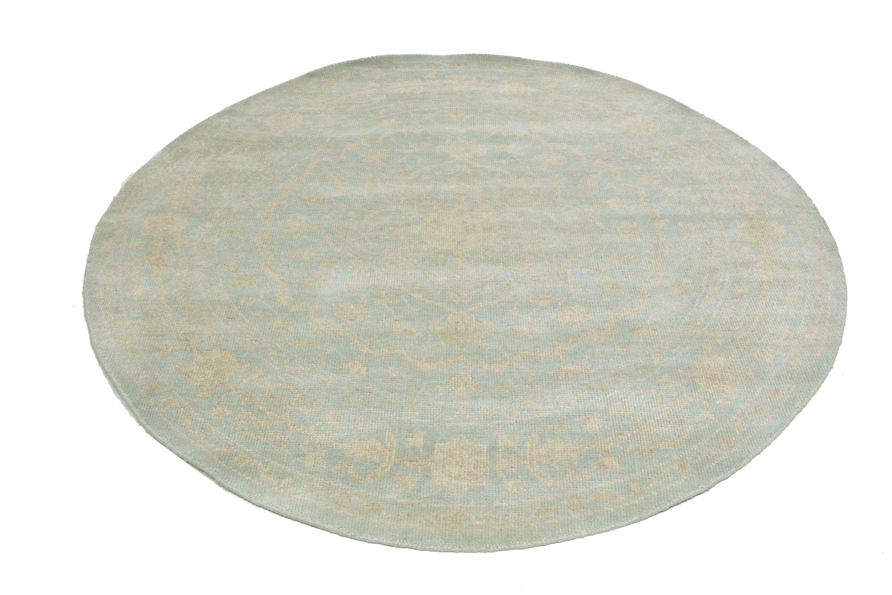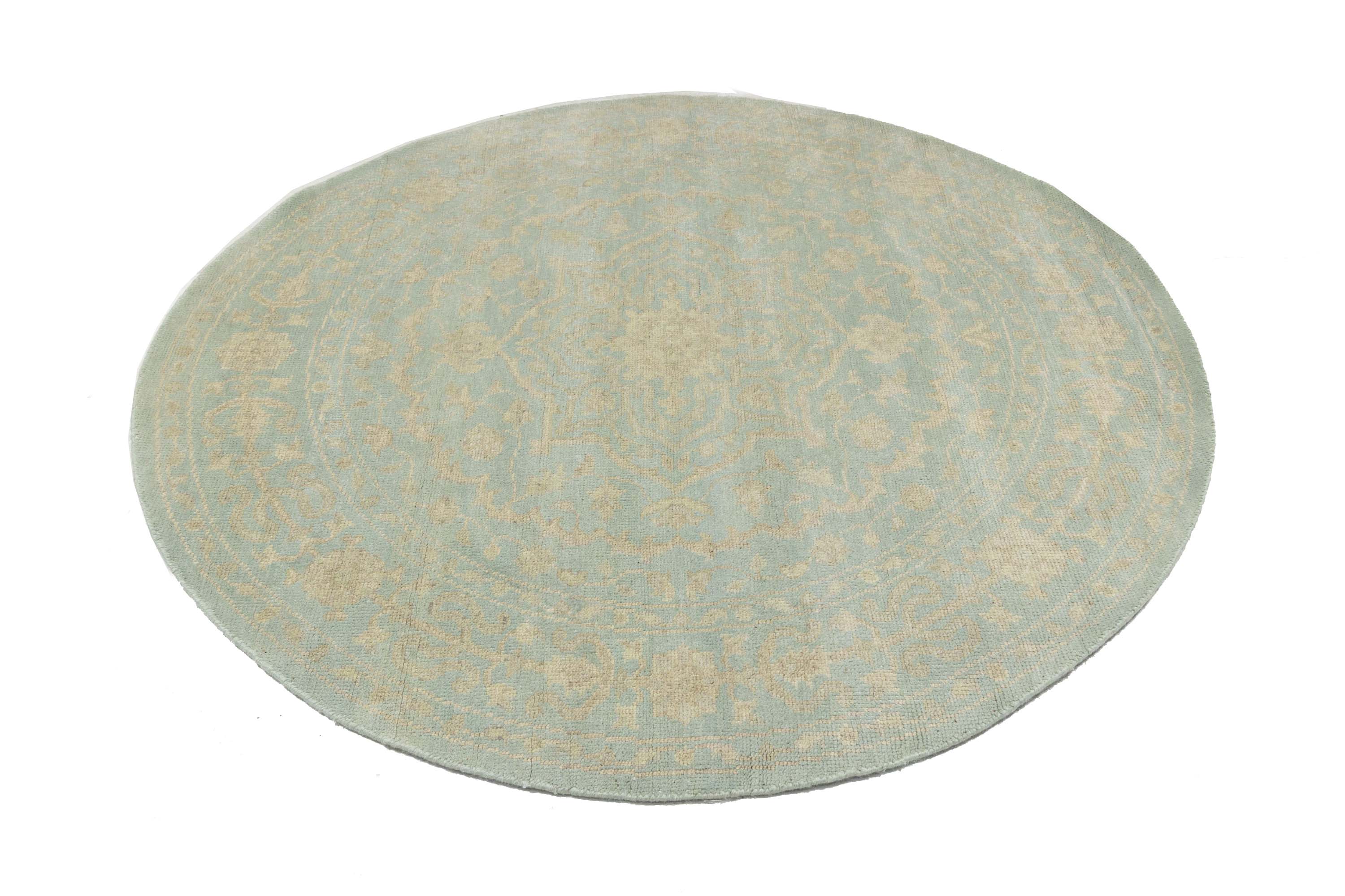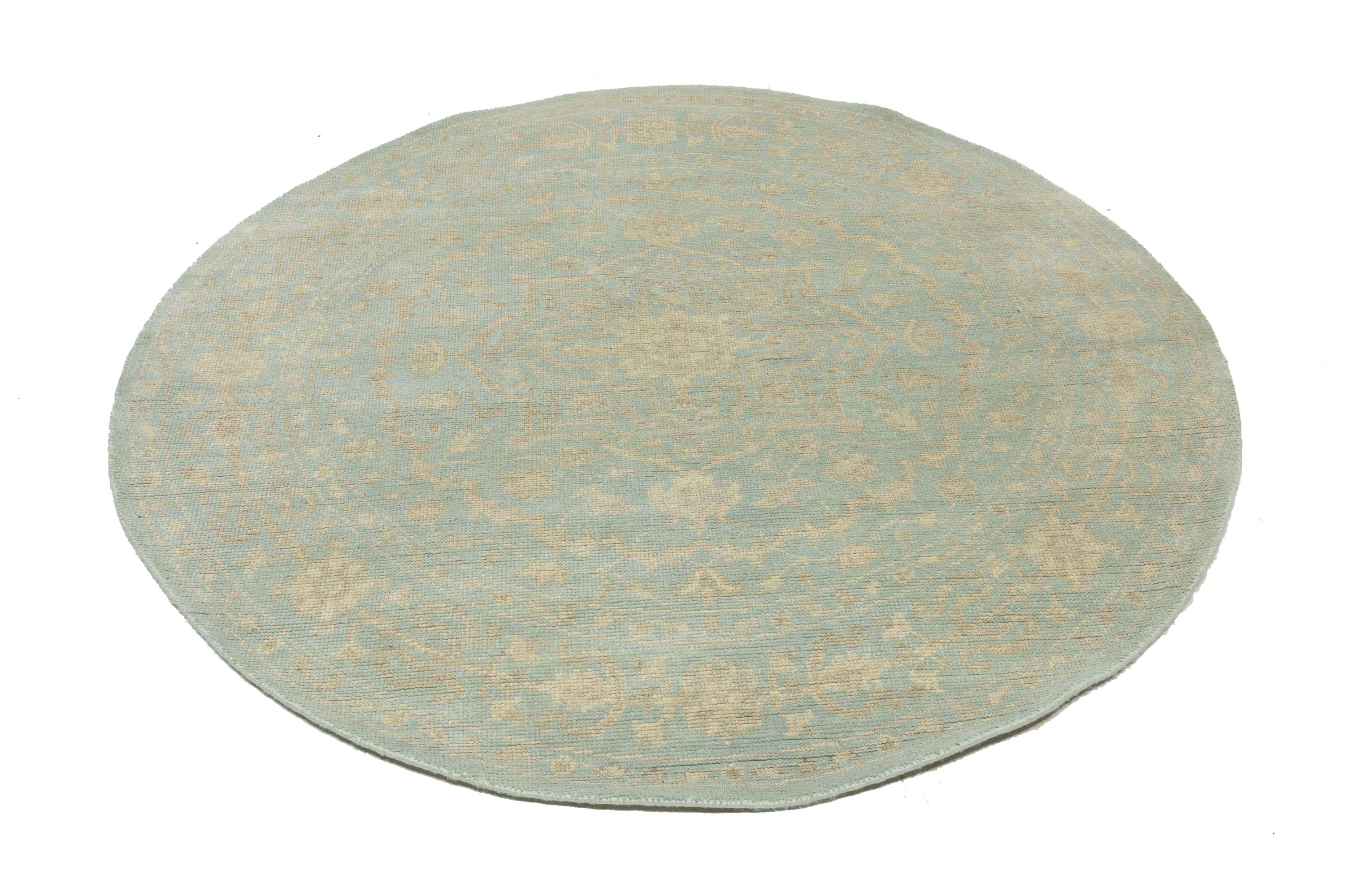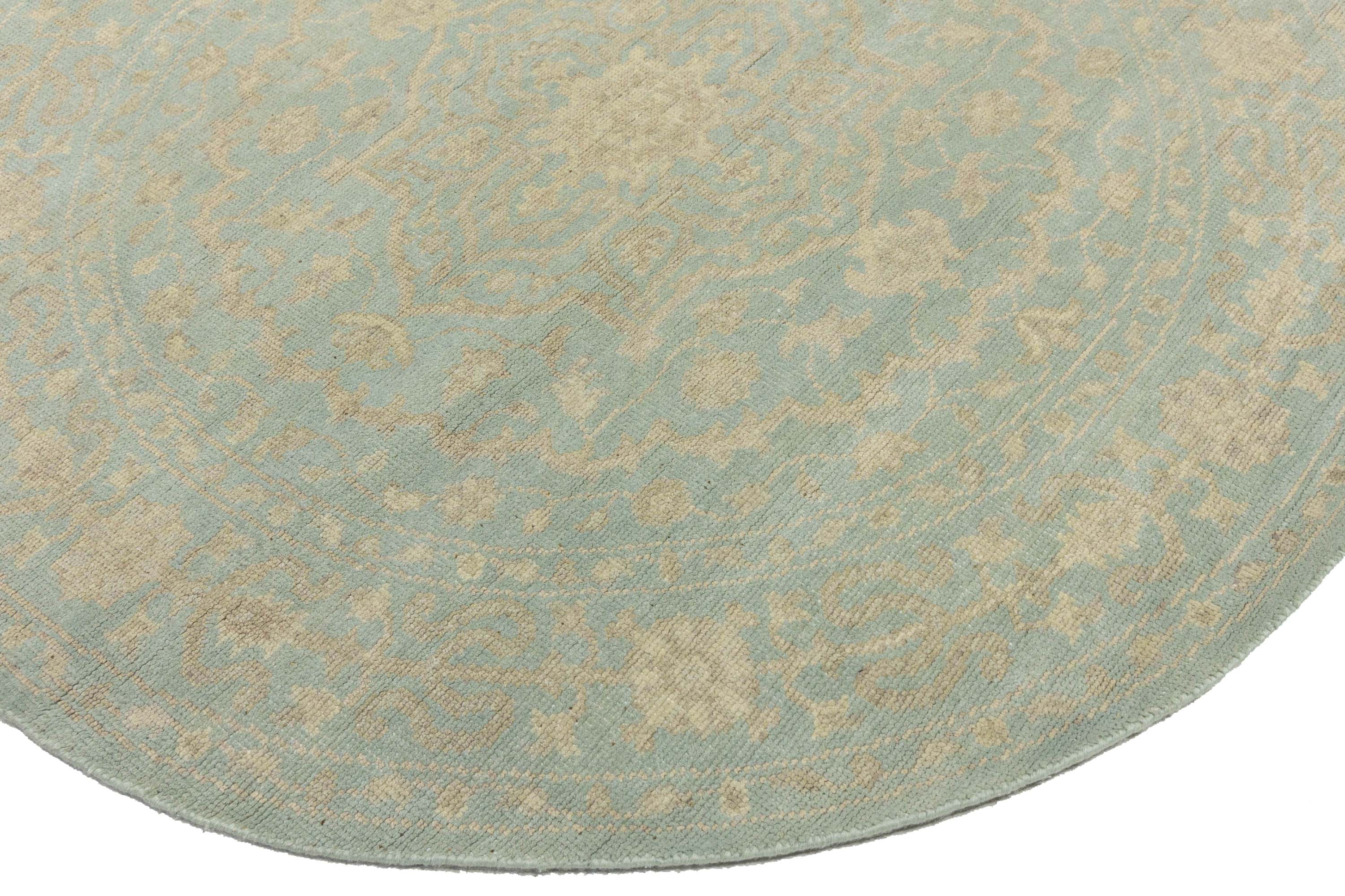 Muted Aqua Blue Floral 6x6 Transitional Oriental Round Rug
