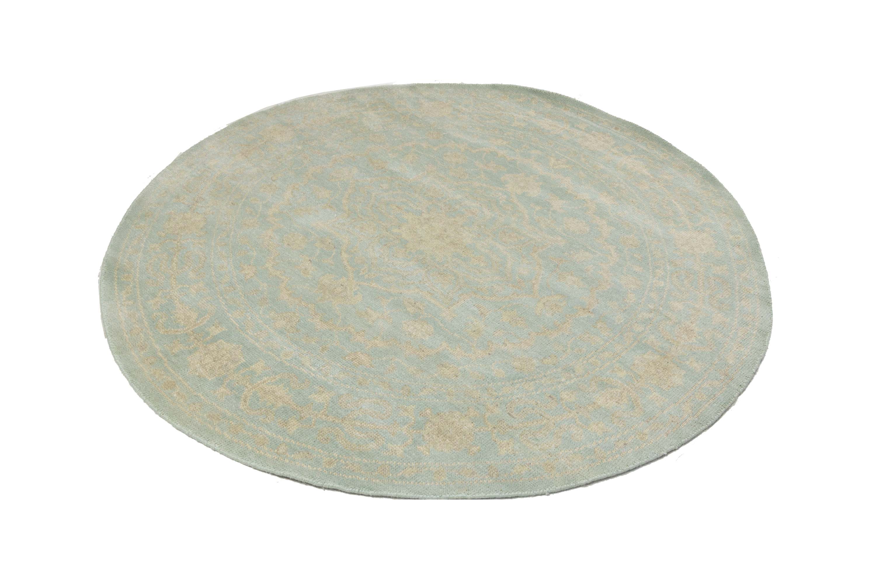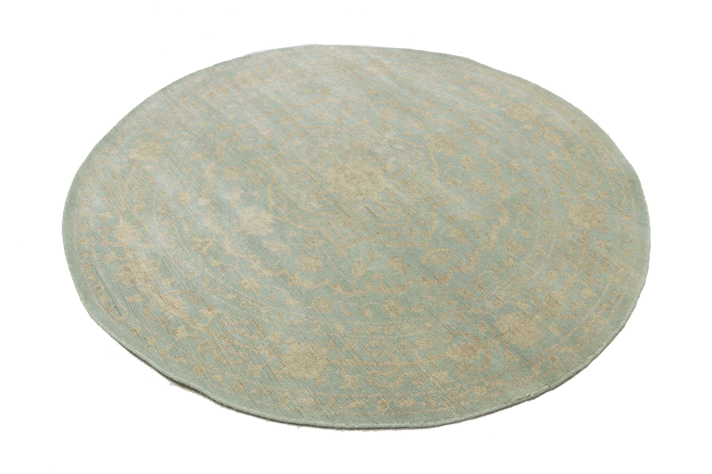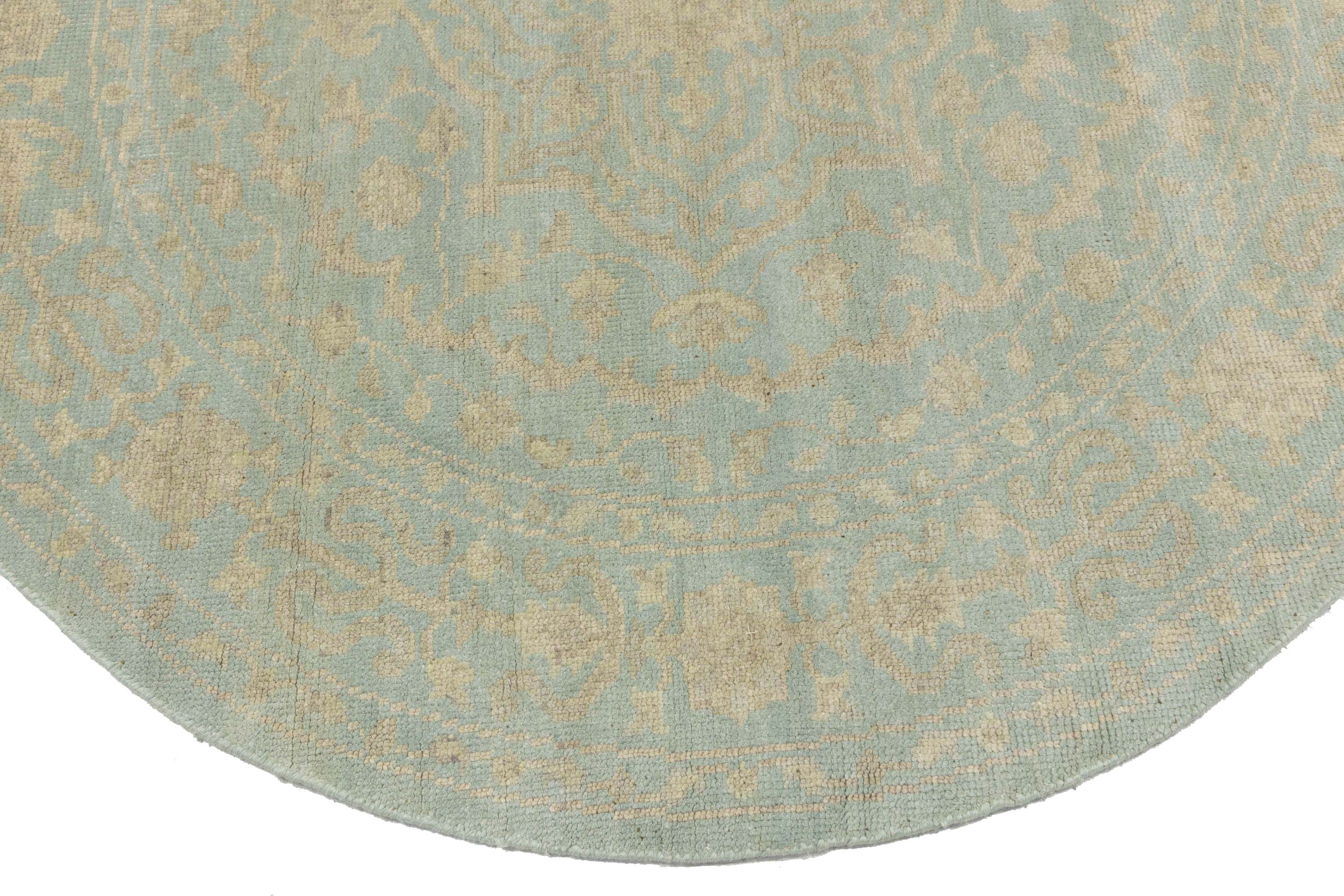 Muted Aqua Blue Floral 6x6 Transitional Oriental Round Rug