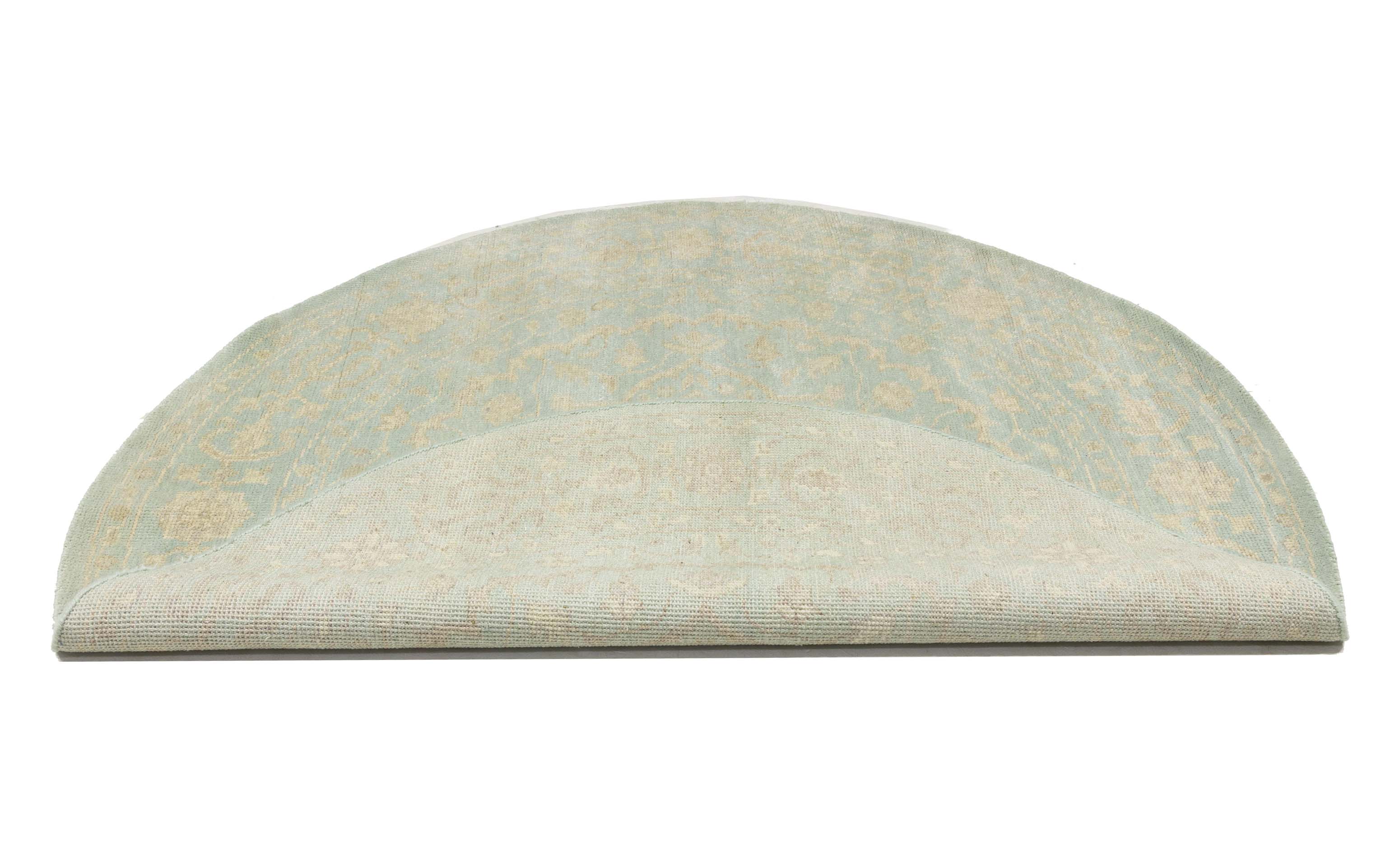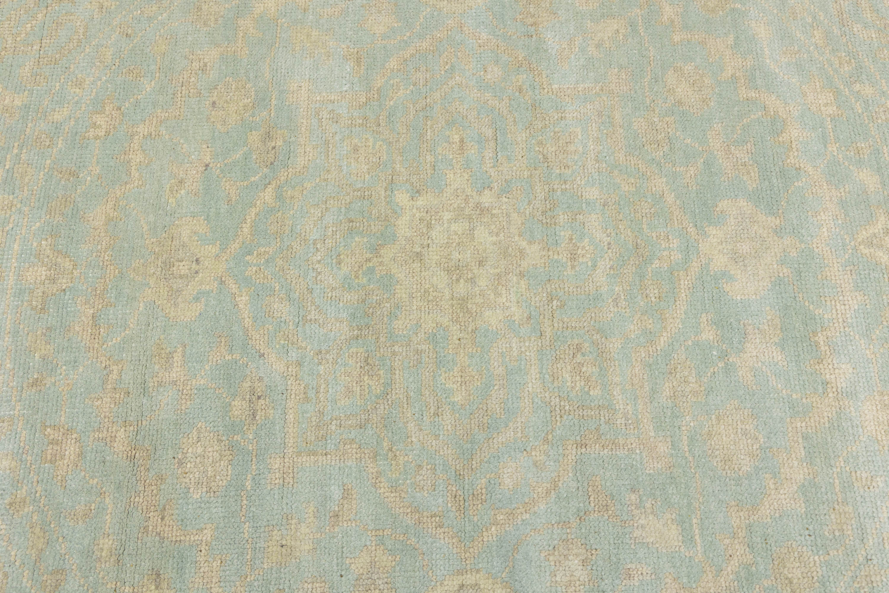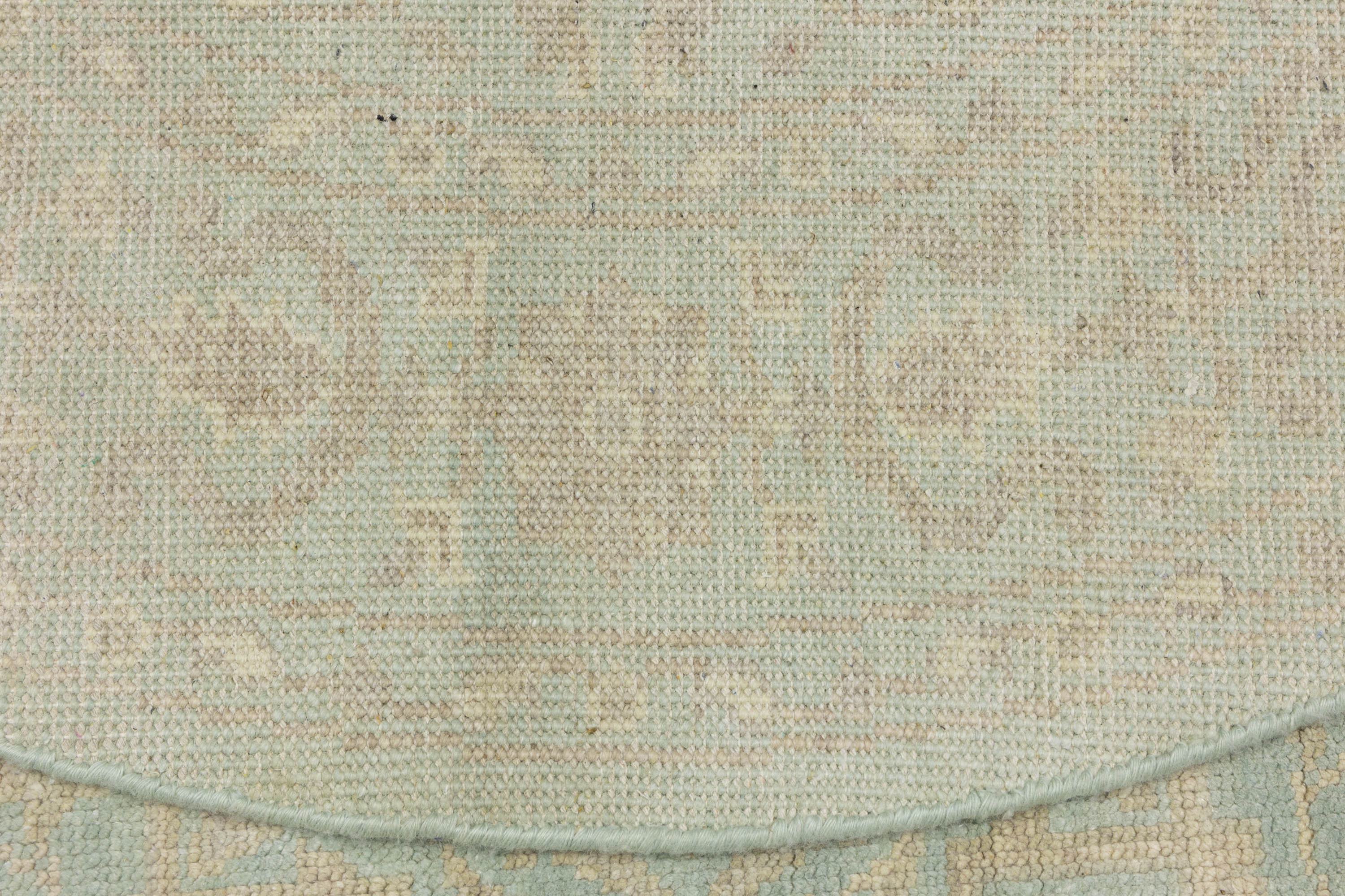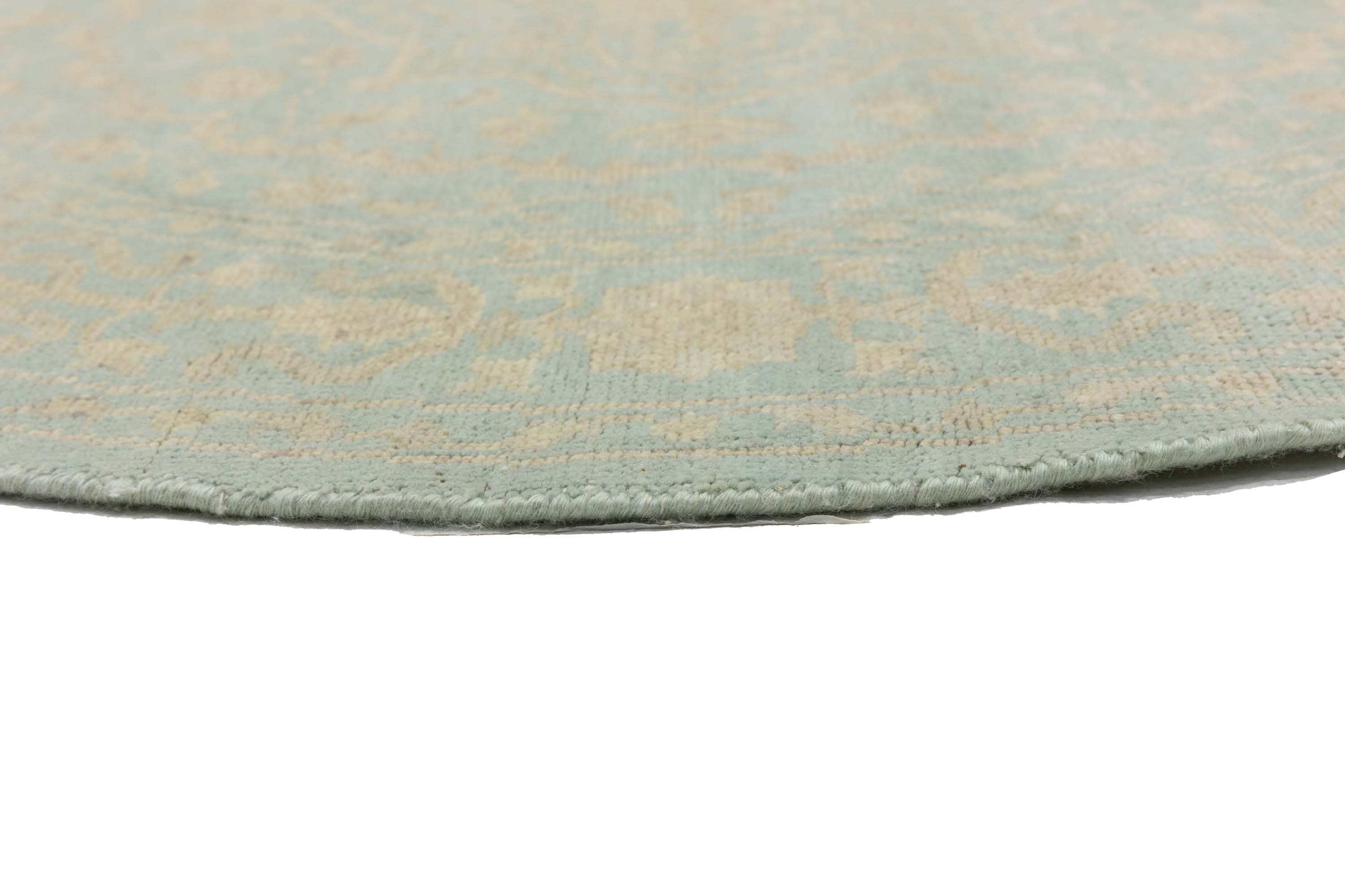 Muted Aqua Blue Floral 6x6 Transitional Oriental Round Rug