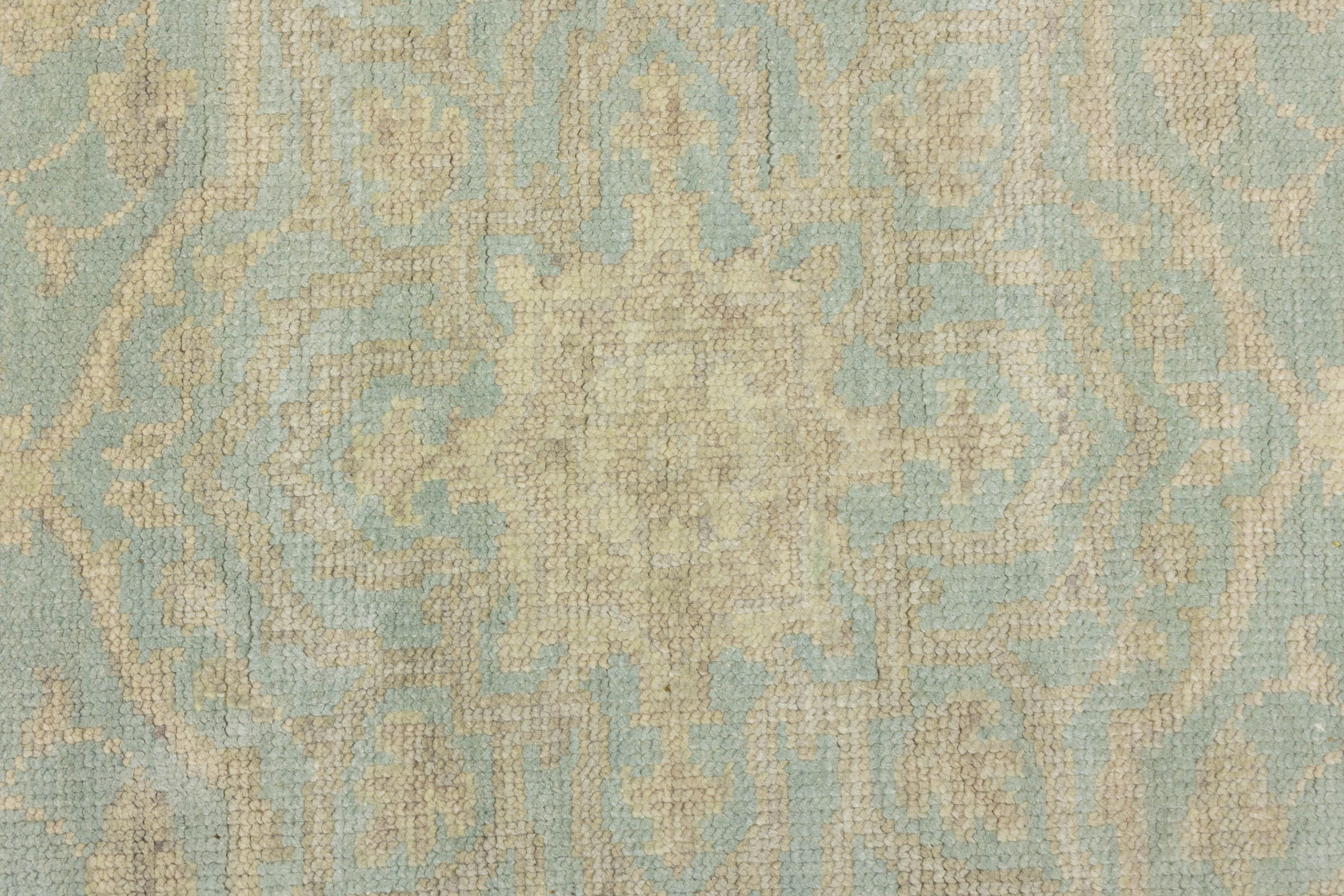 This genuine 6x6 Aqua blue new Oriental rug was made by the hands of gifted weavers inspired by a variety of spectacular artistic designs, to recreate the aged look of the original piece with a richness of color and ornately patterned background field. What set this vintage style Oriental area rug from the others are the material and dye used (wool pile and cotton foundation), knot count, ancient designs, fantastic grades, and its regional historical connection: it has deep roots, from the story of the people who produced it to the meaning of the symbols and colors displayed across its canvas that have been praised for centuries. This Indian home décor carpet will be completely cozy and inviting that never will go out of style! Also, this Oriental rug would be among your most valuable treasures, it is a great investment that accrues value over time, and it will last for generations because was woven with high-quality, all-natural wool. Environmentally friendly, opulent yet affordable; this rug will give you a thorough amount of character to help define your living space with elegance and warmth that will capture the eyes and attention of your audience (homeowners, designers, decorators, family and friends). OT-11906